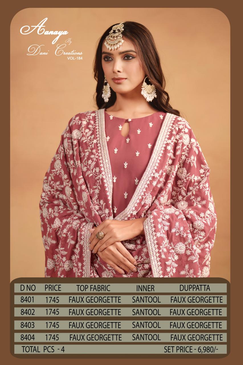dani creation launch aanaya vol 184 faux georgette fancy salwar suits