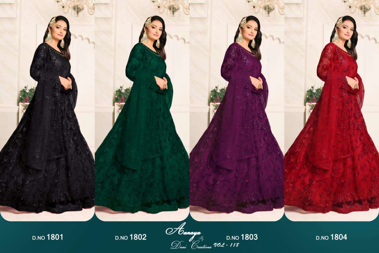 dani fashions aanaya vol 118 net anarkali style semi stitched dresses for women 2021