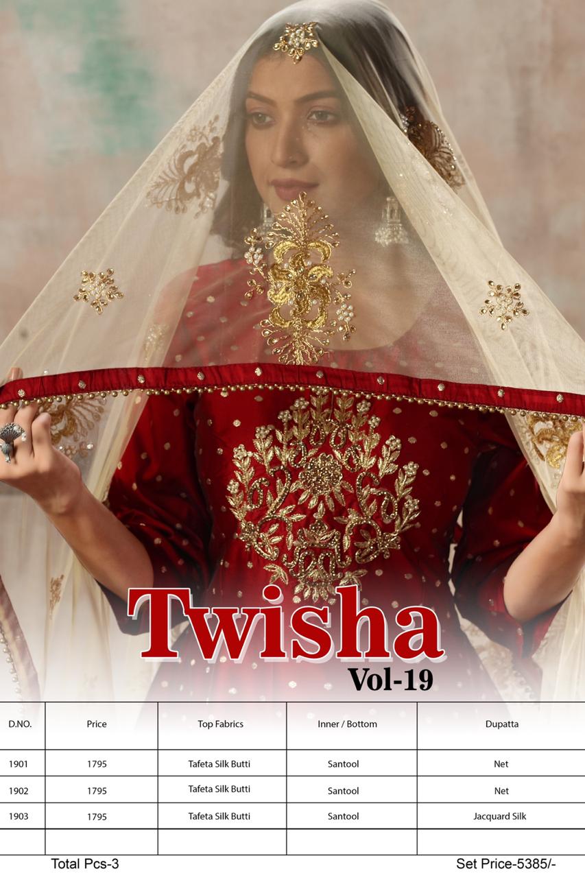 Presents 🌹TWISHA 1900 SERIES (vol-19)🌹 👗Top. – Tafeta Butti 👖INNER/BOTTOM- Santool 🇫🇲 Dupatta –Net with heavy work & jacquard silk Price :-1795 Dispatch from 31/10/2020 GST 12 Percent Extra SIZE-L(40),XL(42),XXL(44) Limited set only Full stitch product |