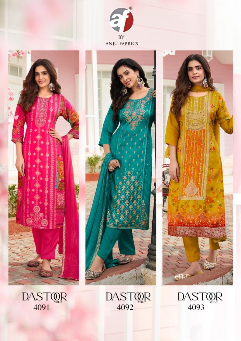 dastoor vol 7 by anju fab dola jacquard readymade occasion wear 3pcs dress