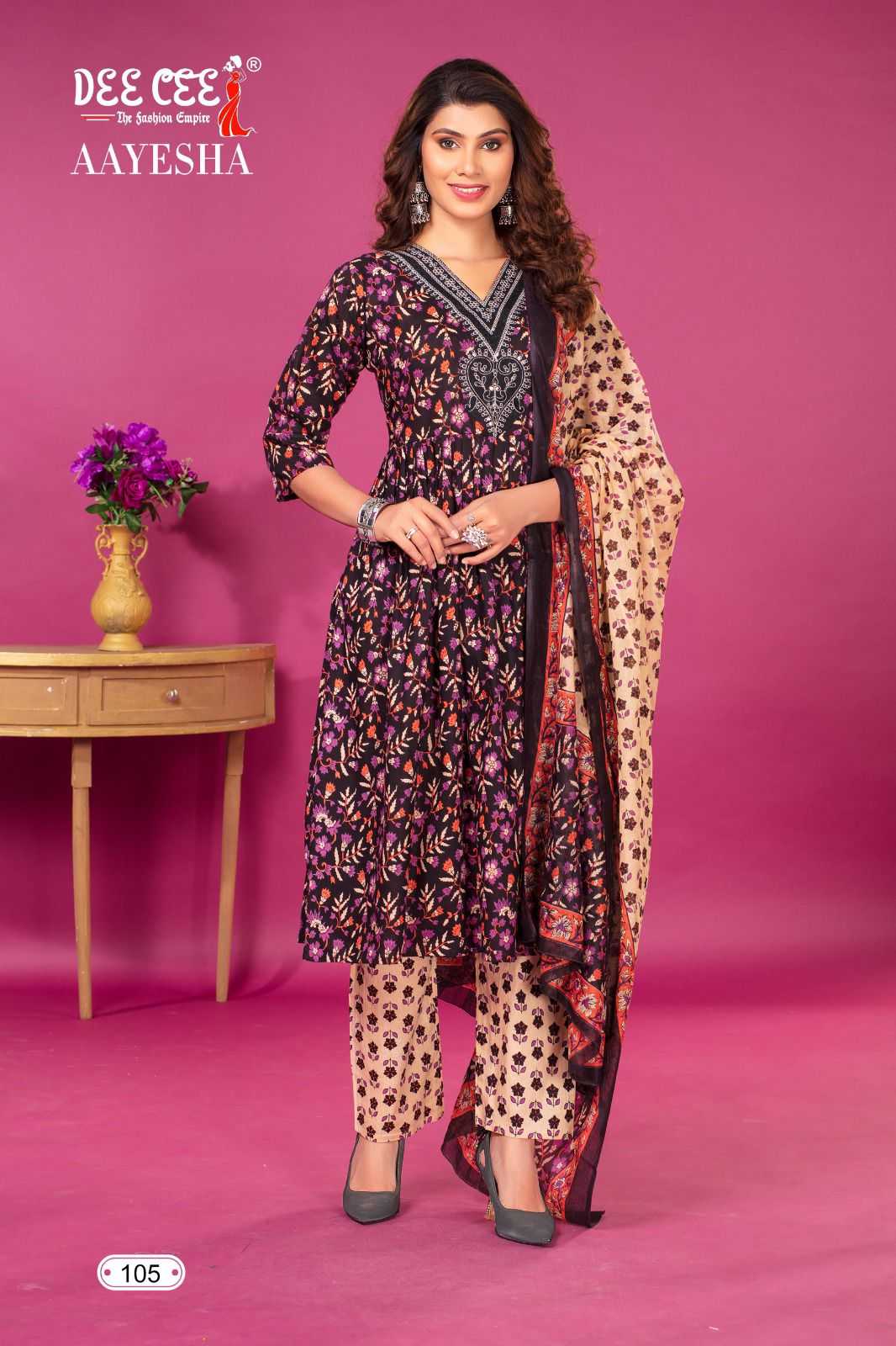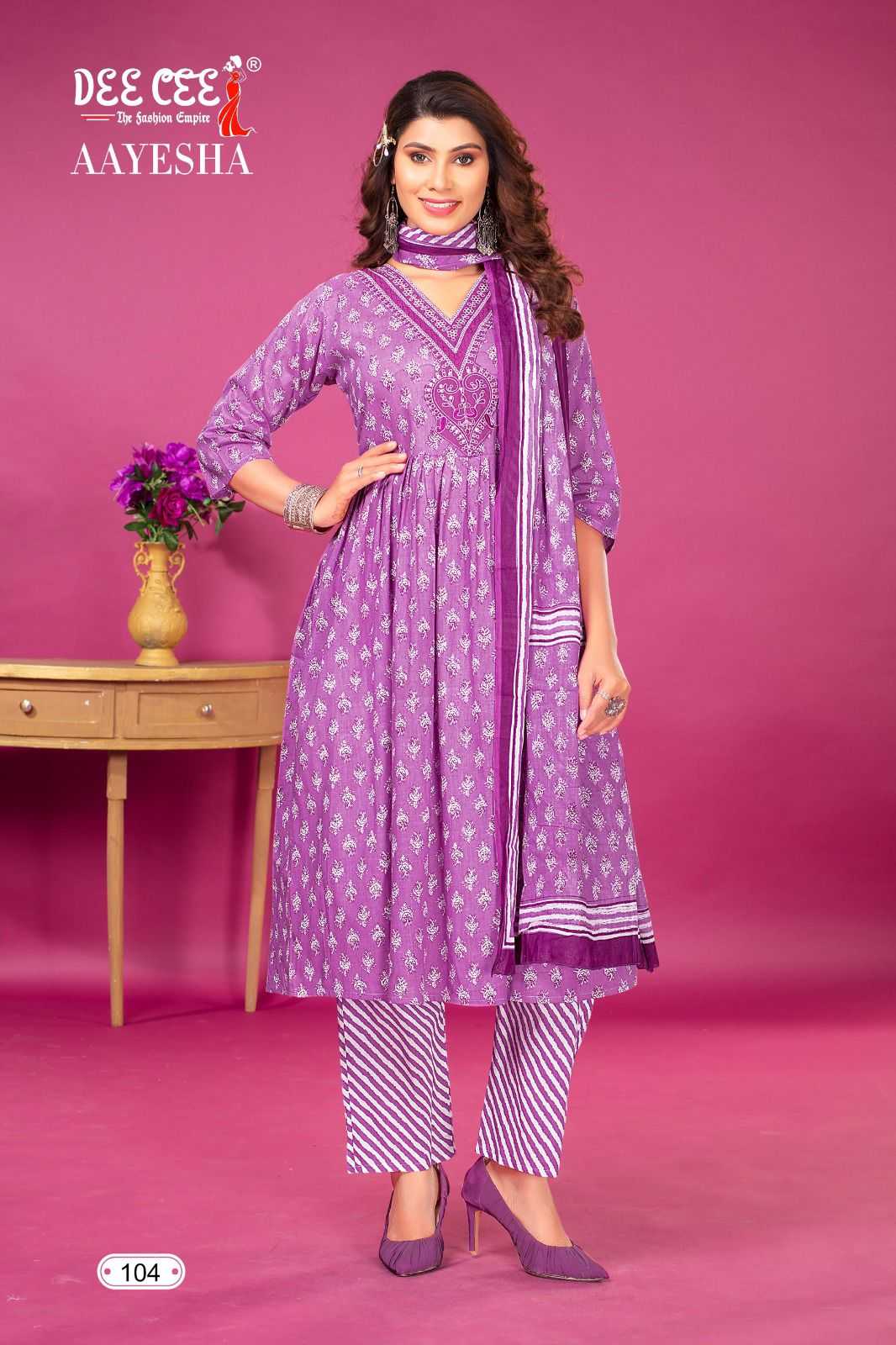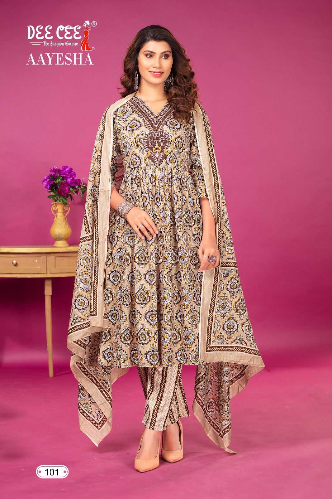 dee cee aayesha readymade fancy v neck kurti pant dupatta
