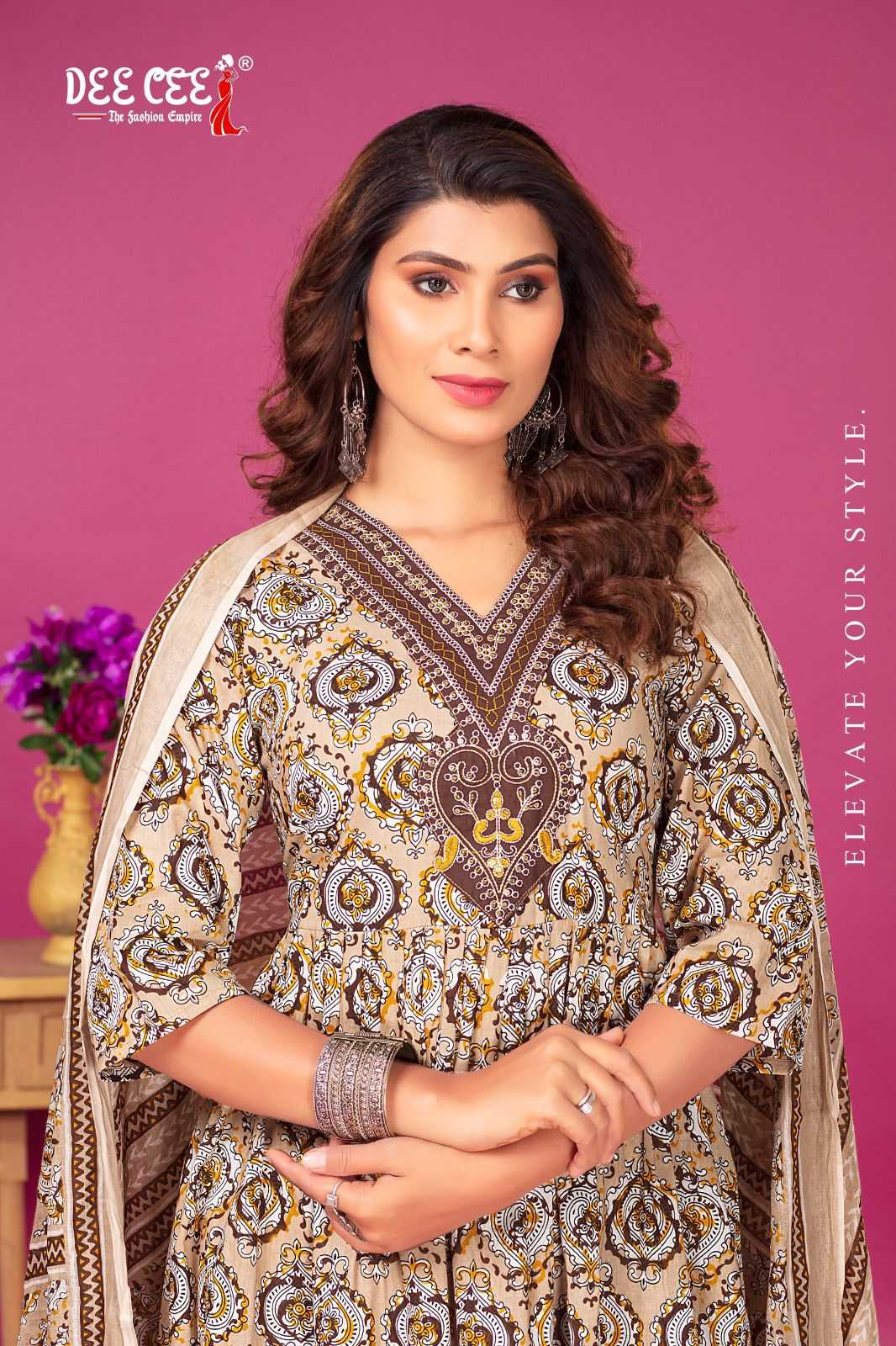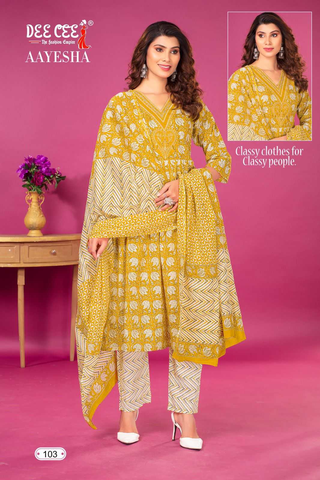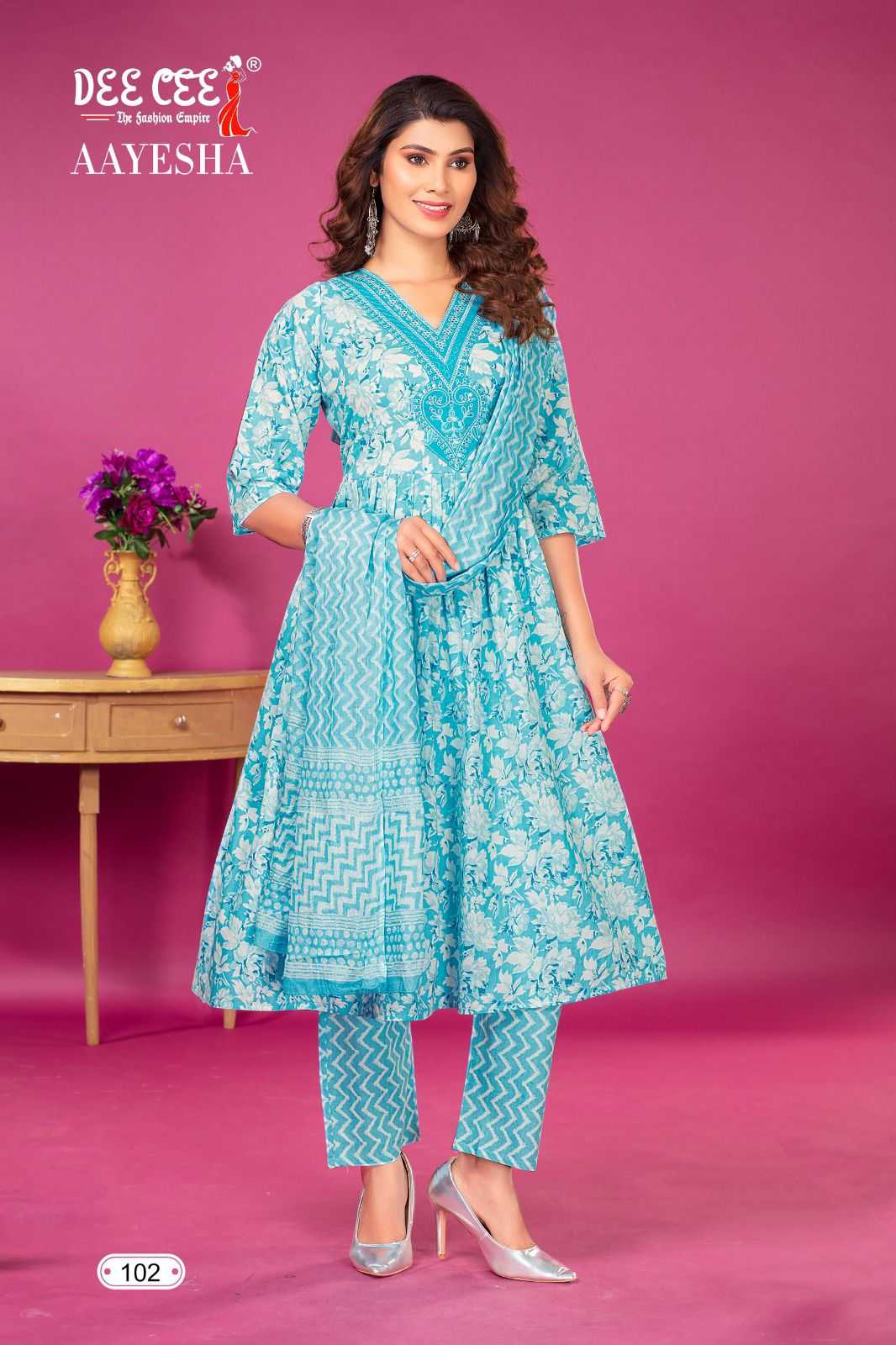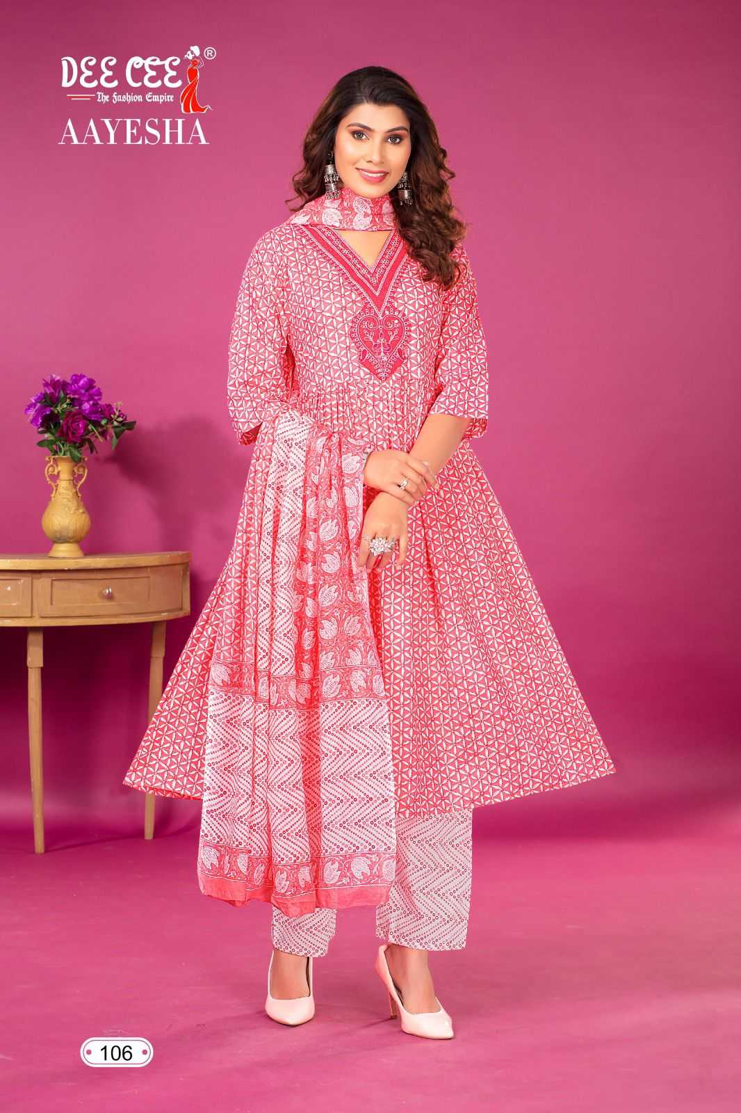 dee cee aayesha readymade fancy v neck kurti pant dupatta