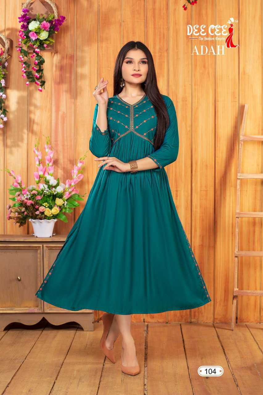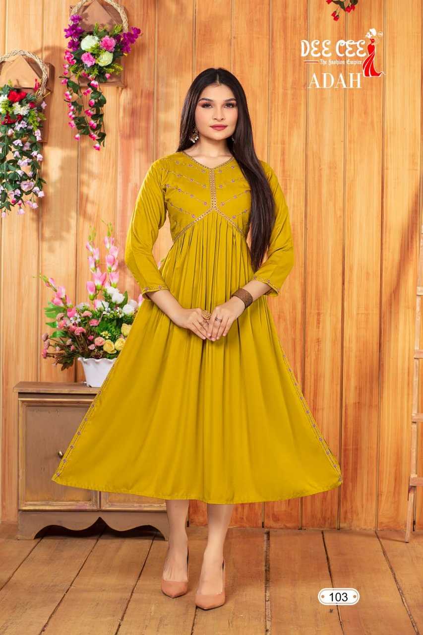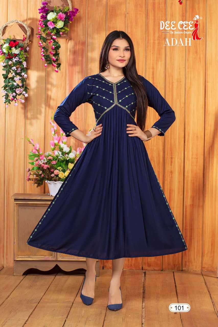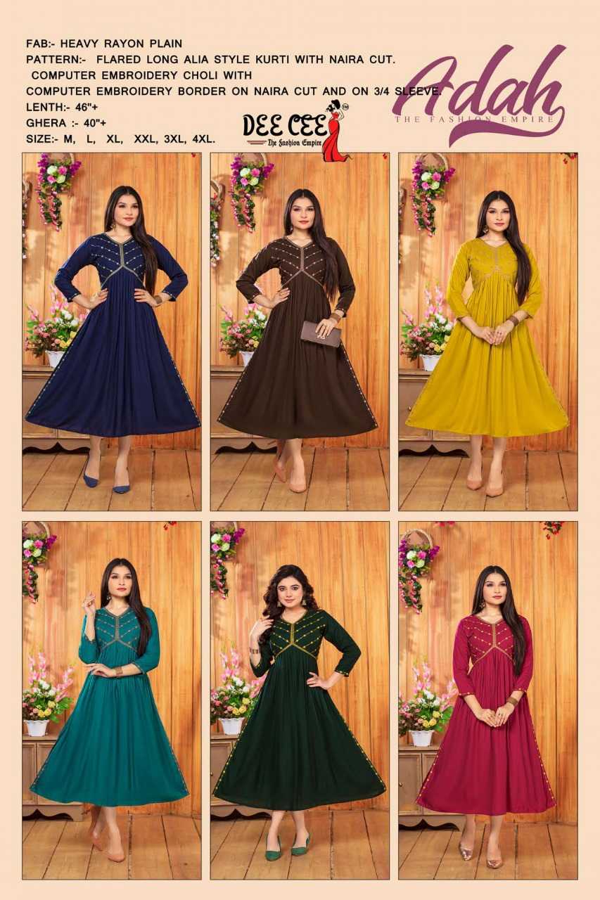 dee cee adah readymade flair alia cut long kurti catalog