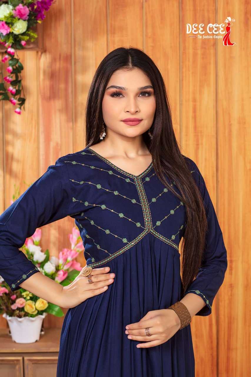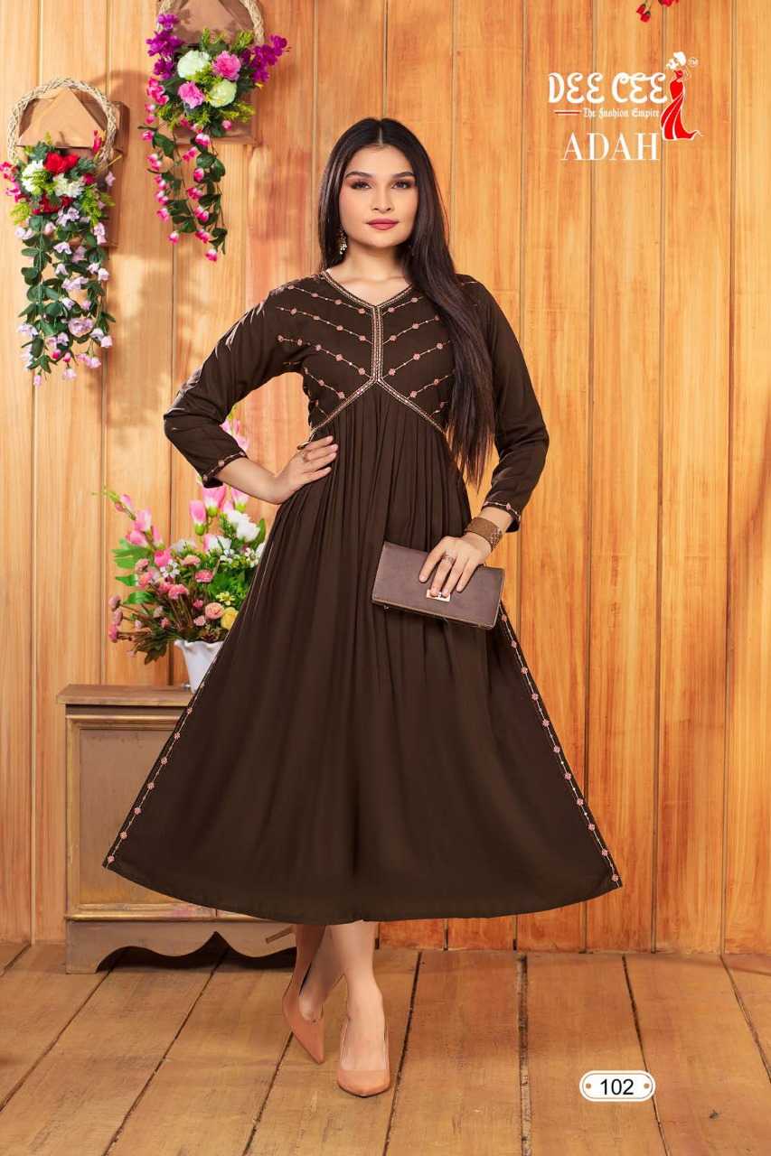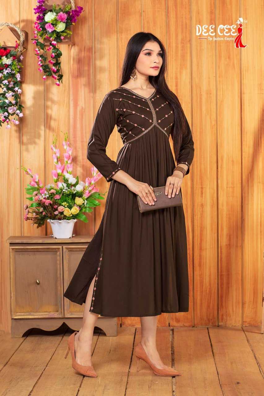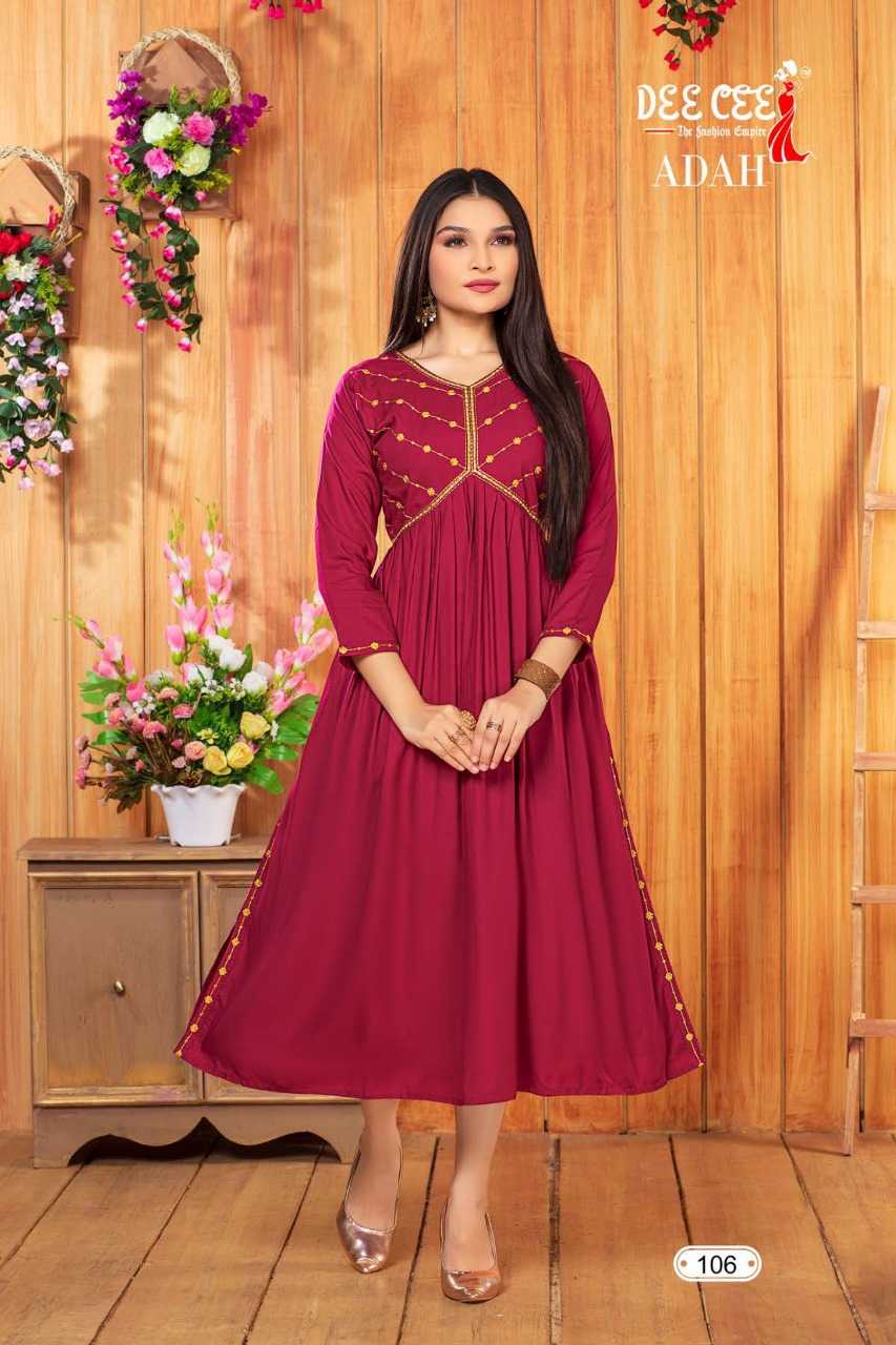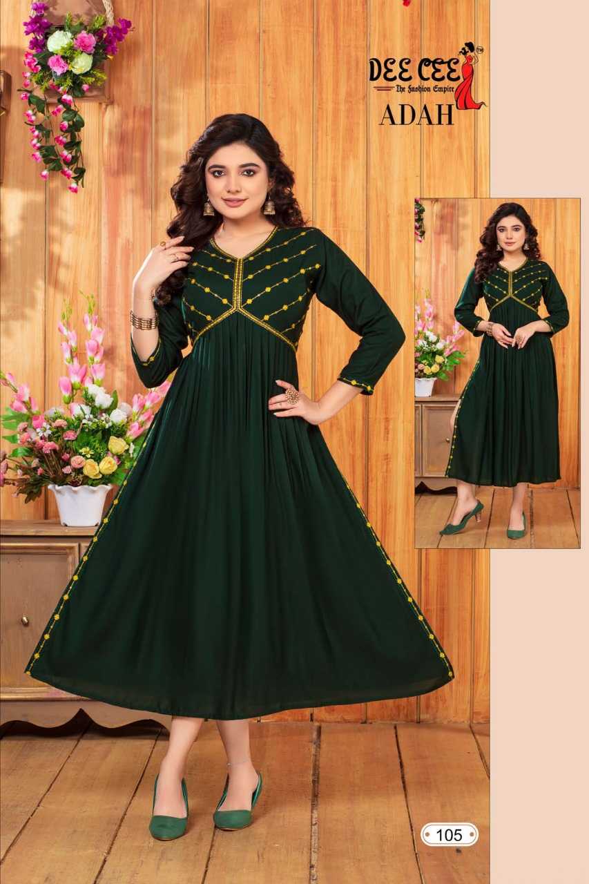dee cee adah readymade flair alia cut long kurti catalog