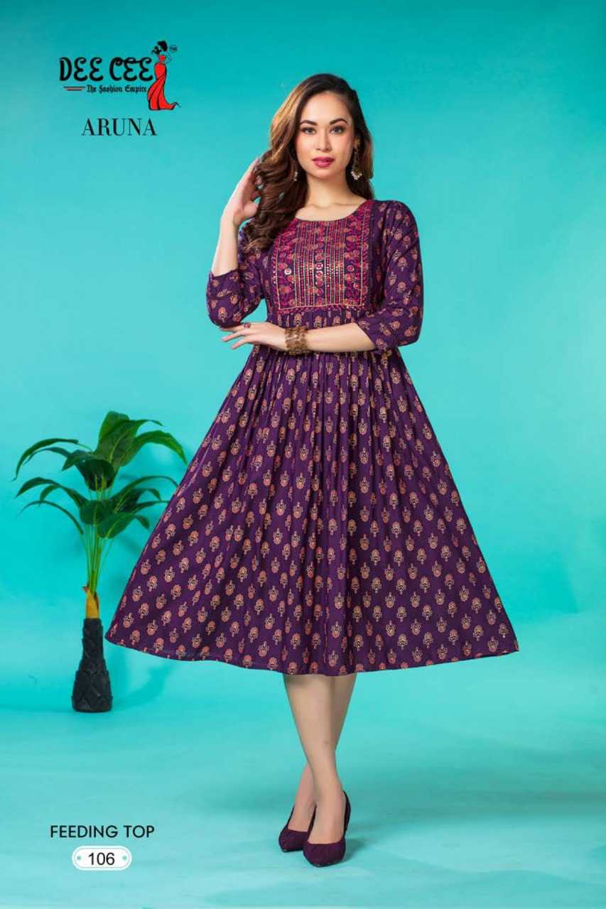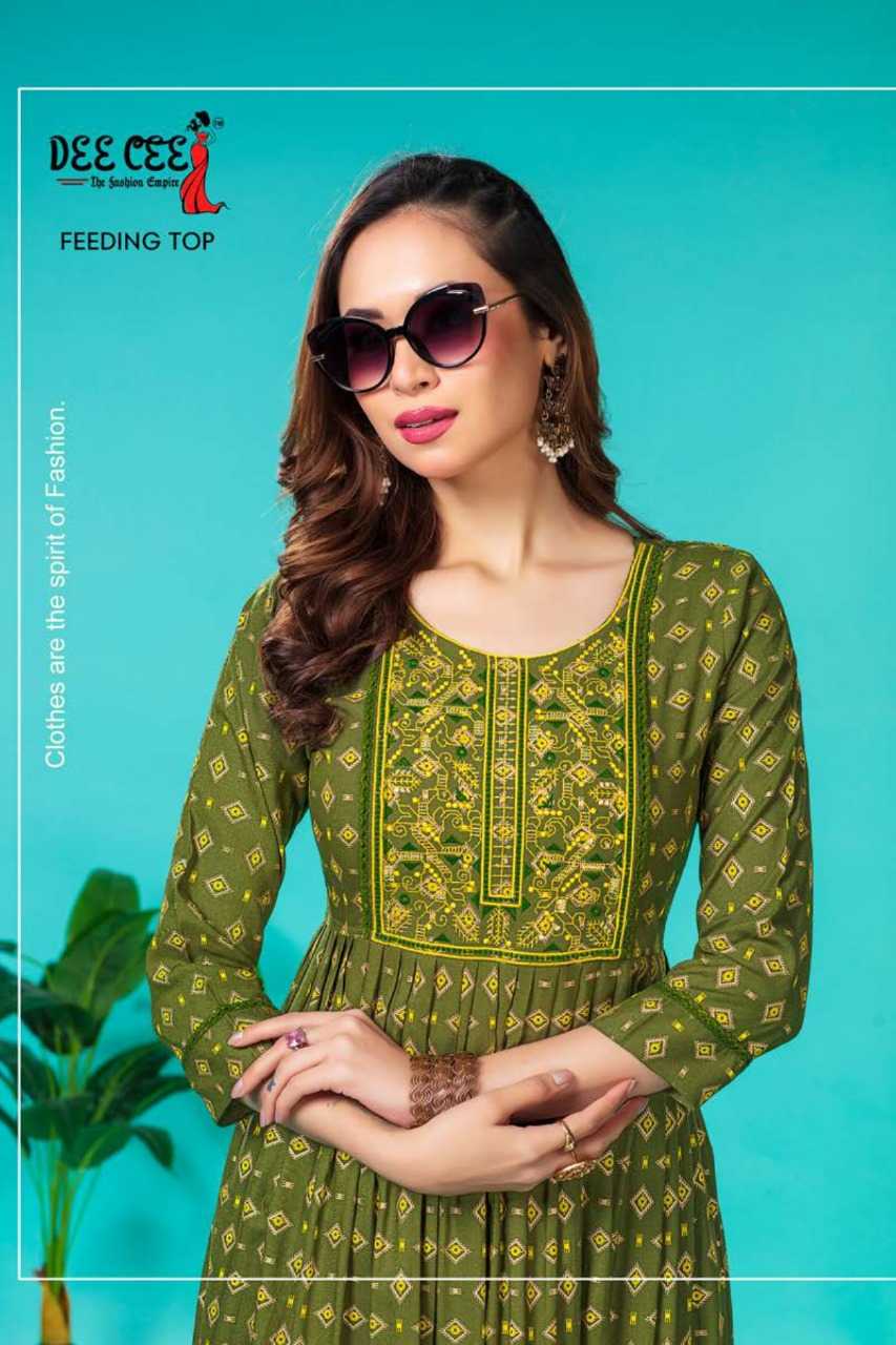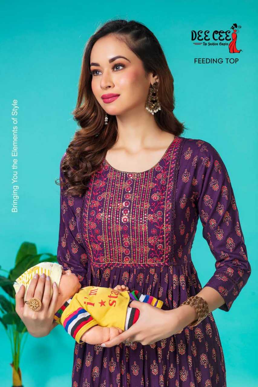 dee cee aruna stitched fancy embroidery long flair feeding gown