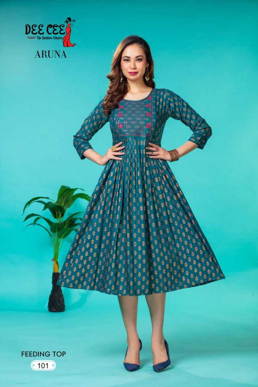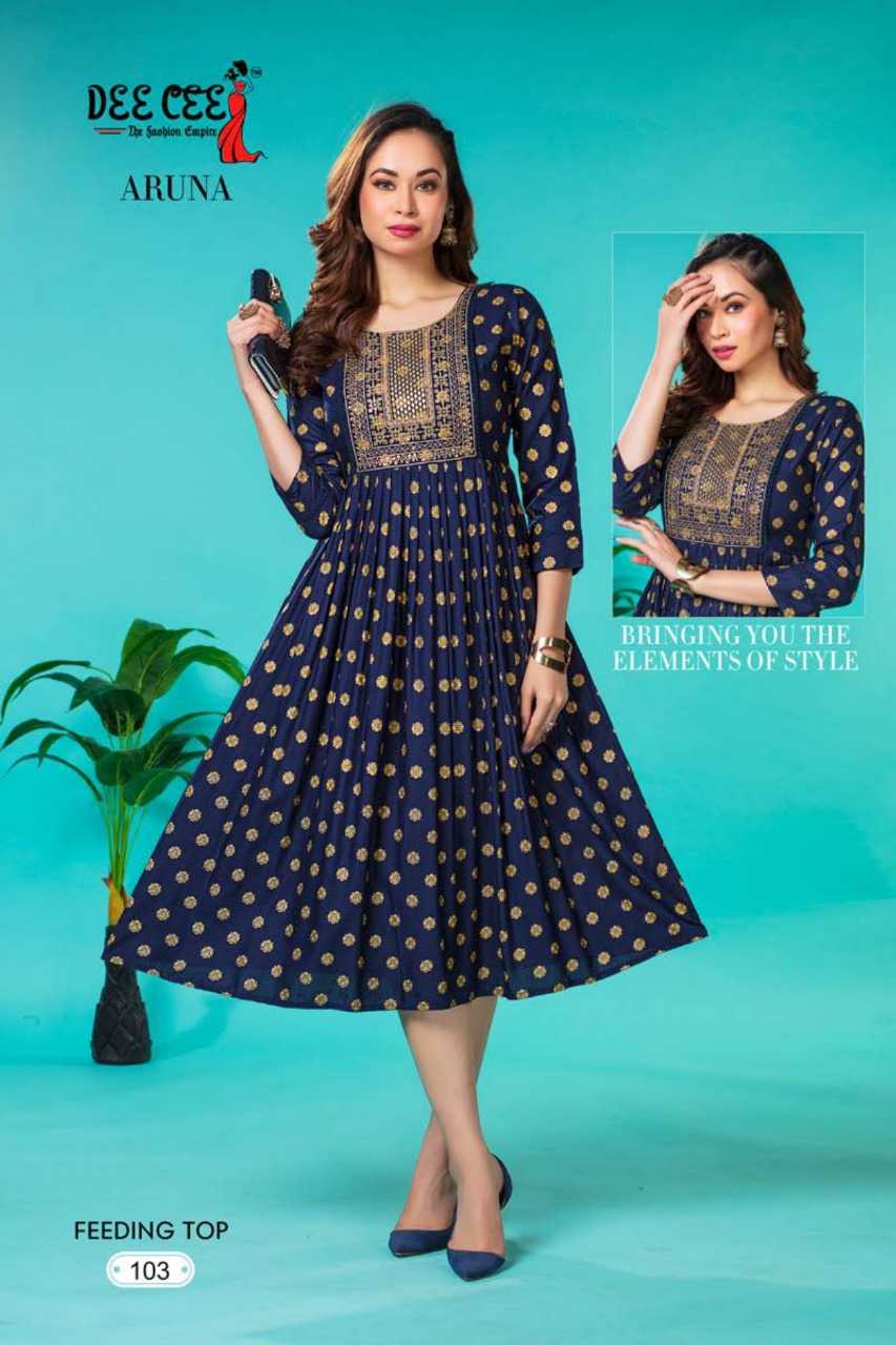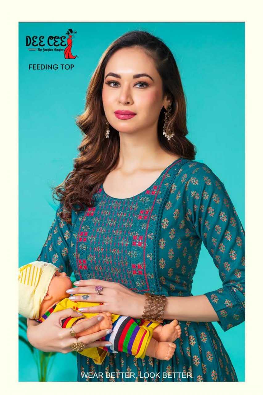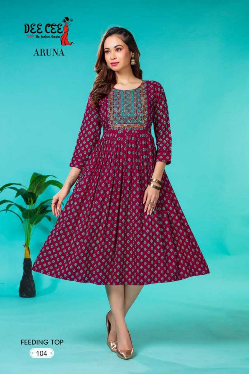 dee cee aruna stitched fancy embroidery long flair feeding gown