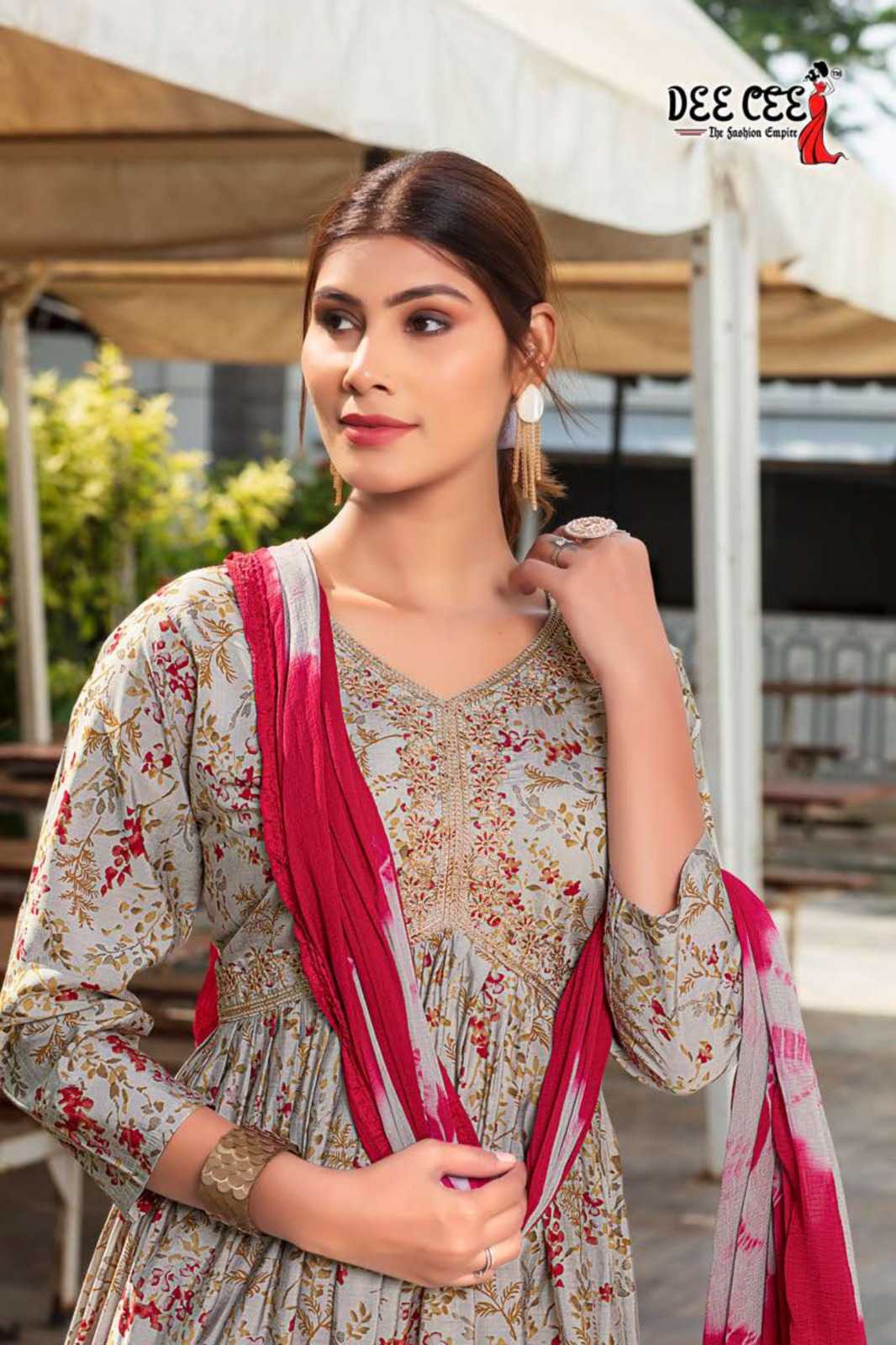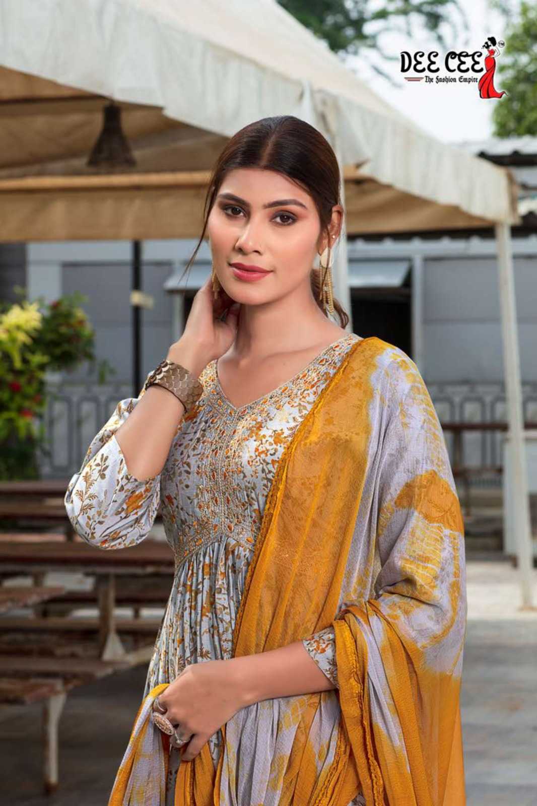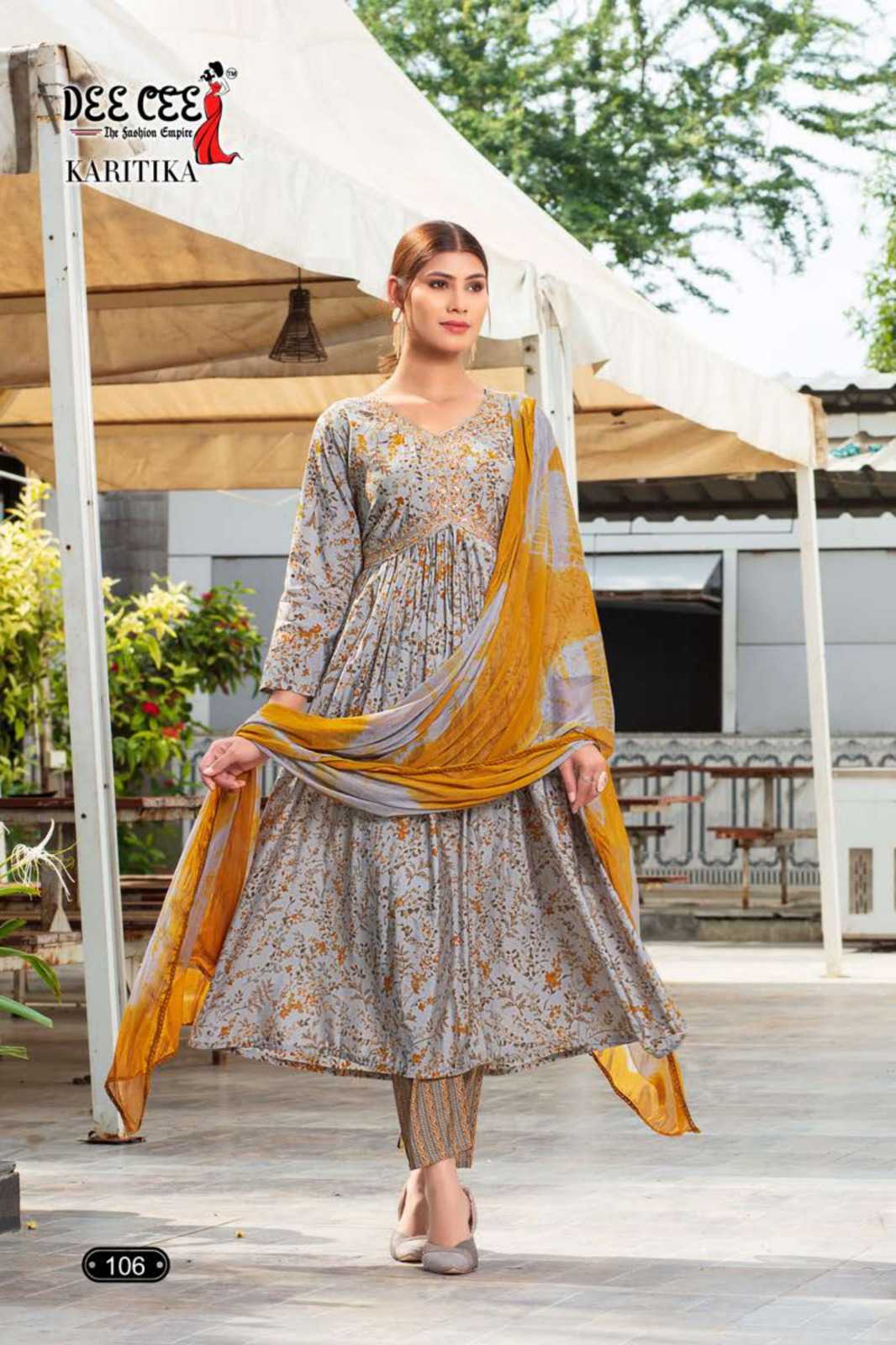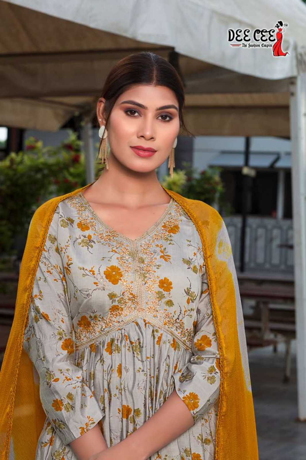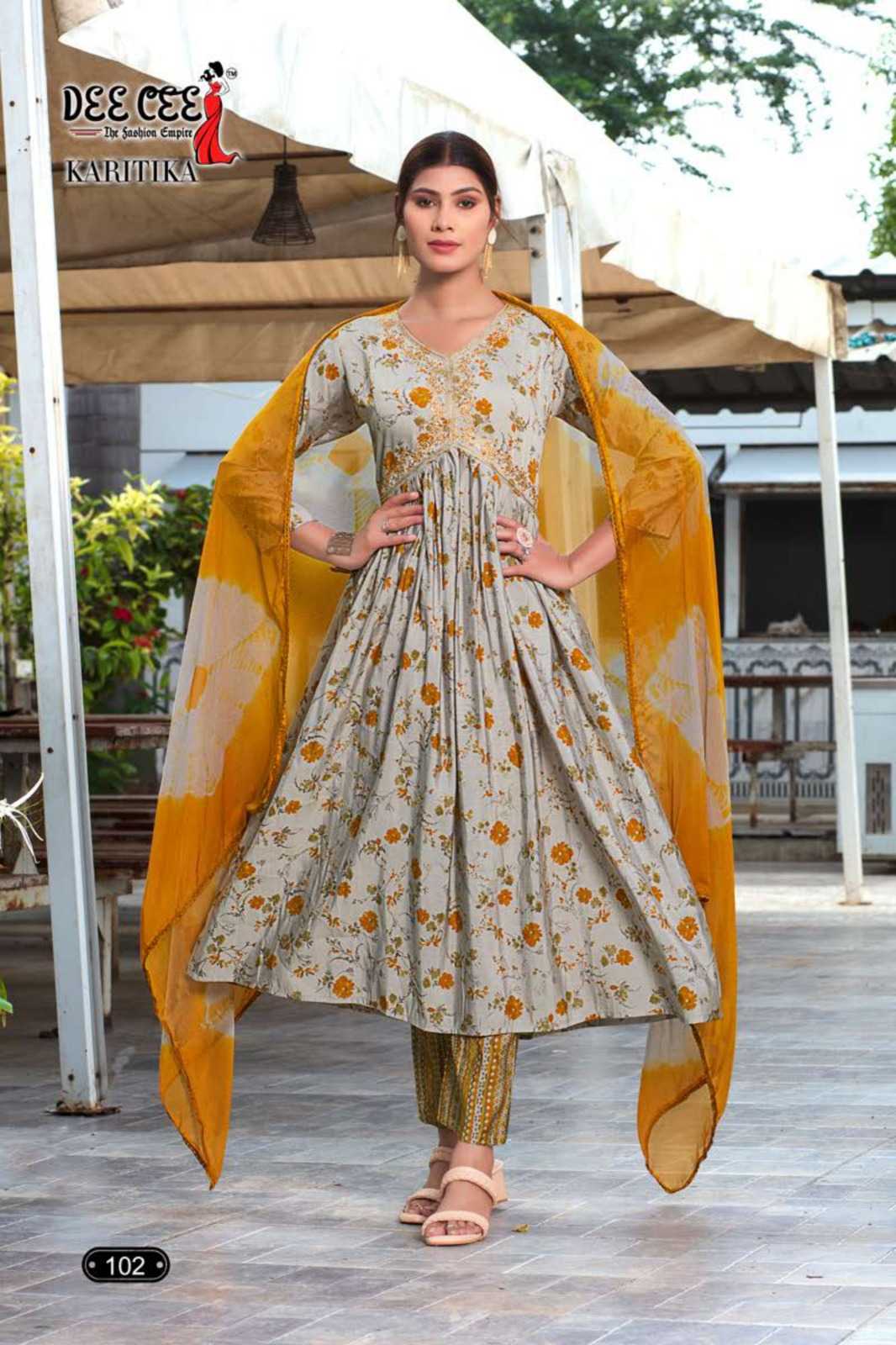dee cee karitika fancy adorable alia cut flared long kurti with pant and dupatta