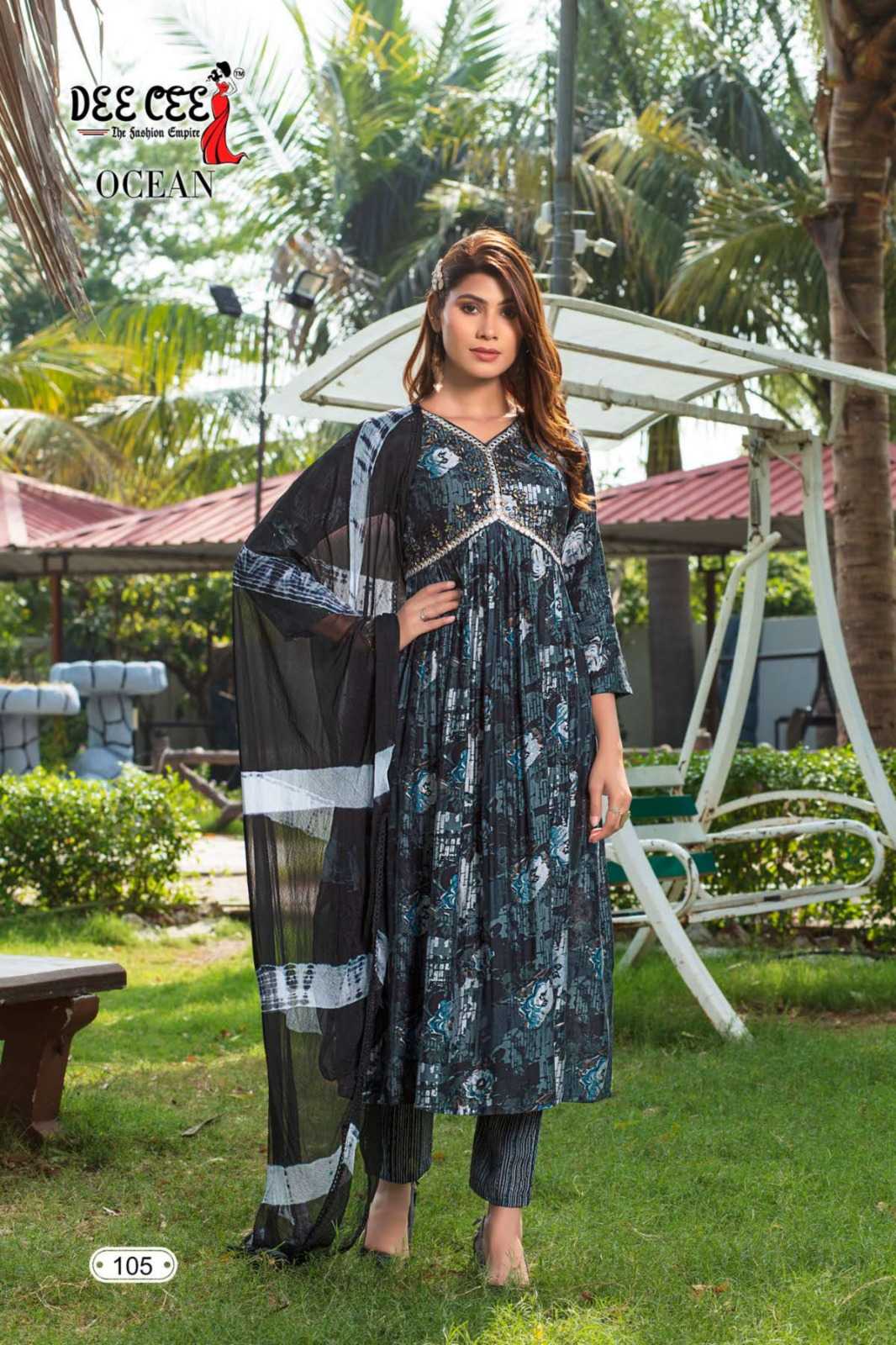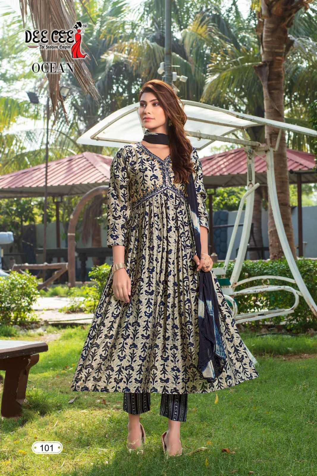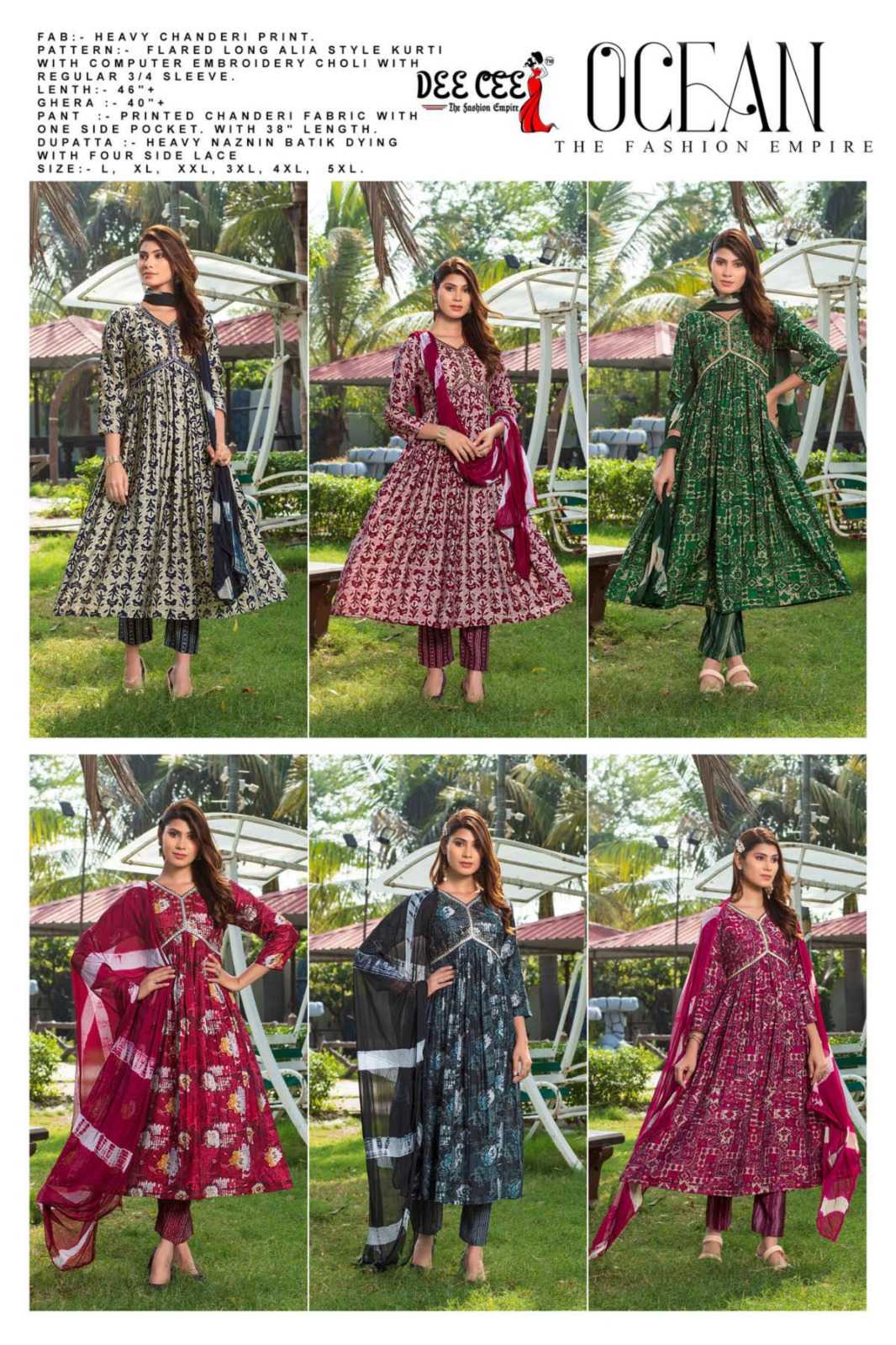 dee cee ocean fullstitch flair long alia cut kurti pant dupatta in plus size