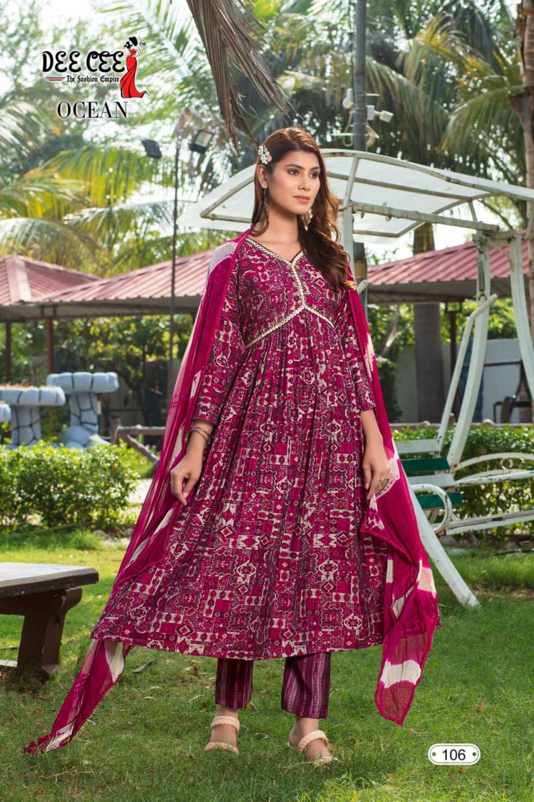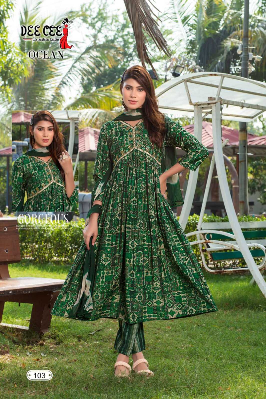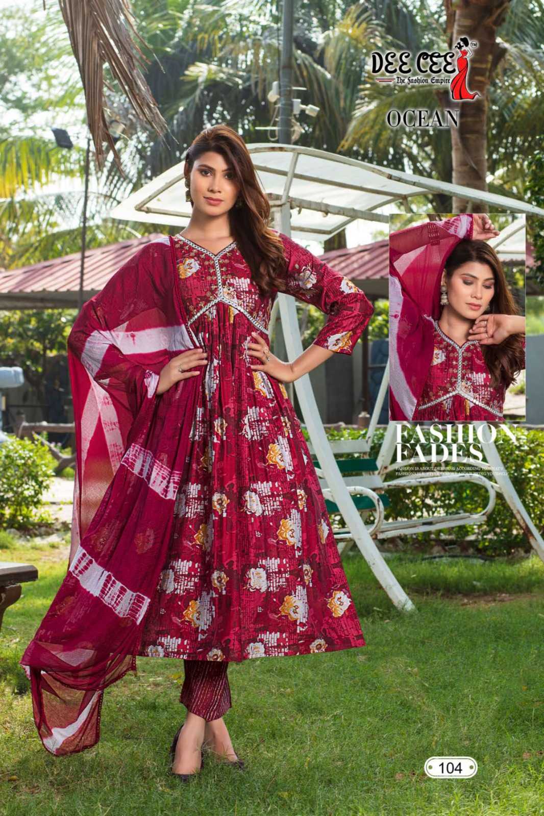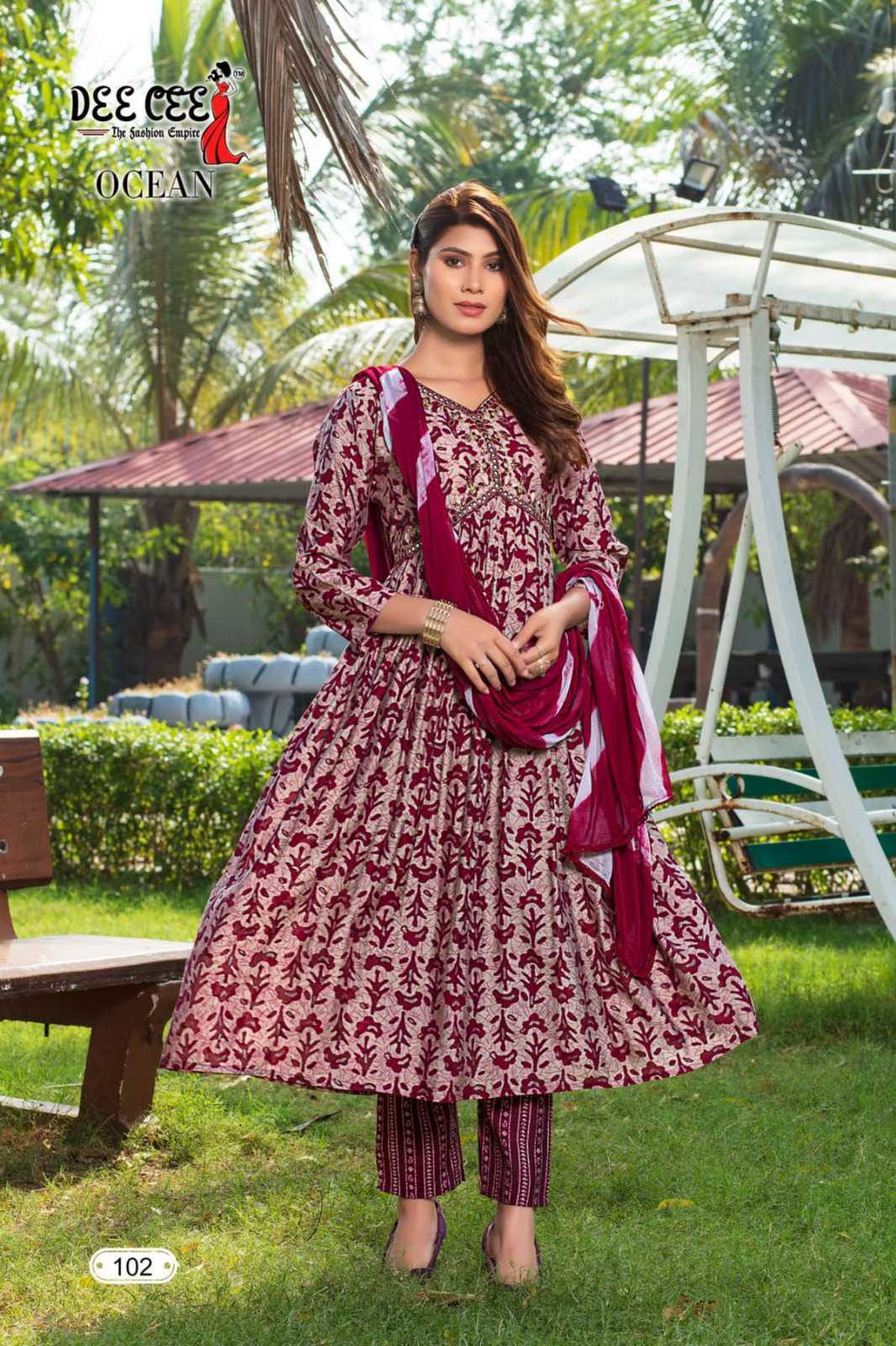 dee cee ocean fullstitch flair long alia cut kurti pant dupatta in plus size
