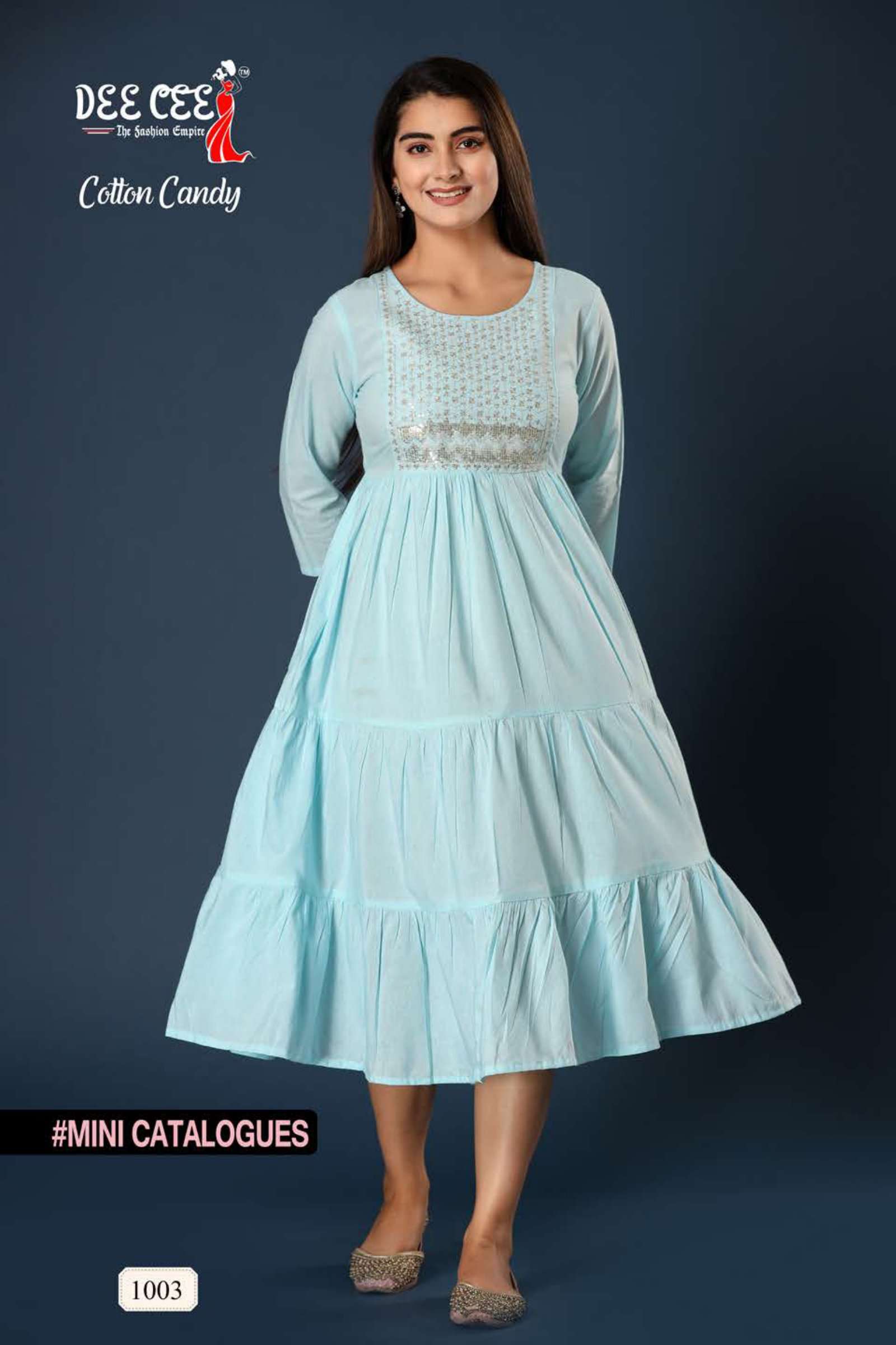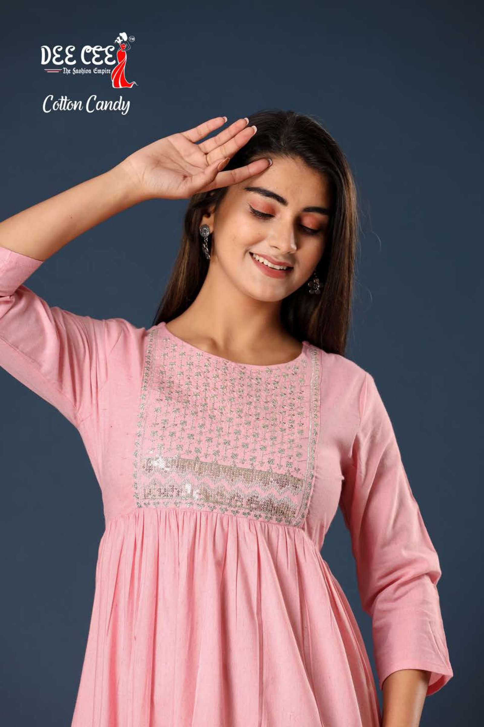 dee cee present cotton candy amazing flared fancy stitch kurtis