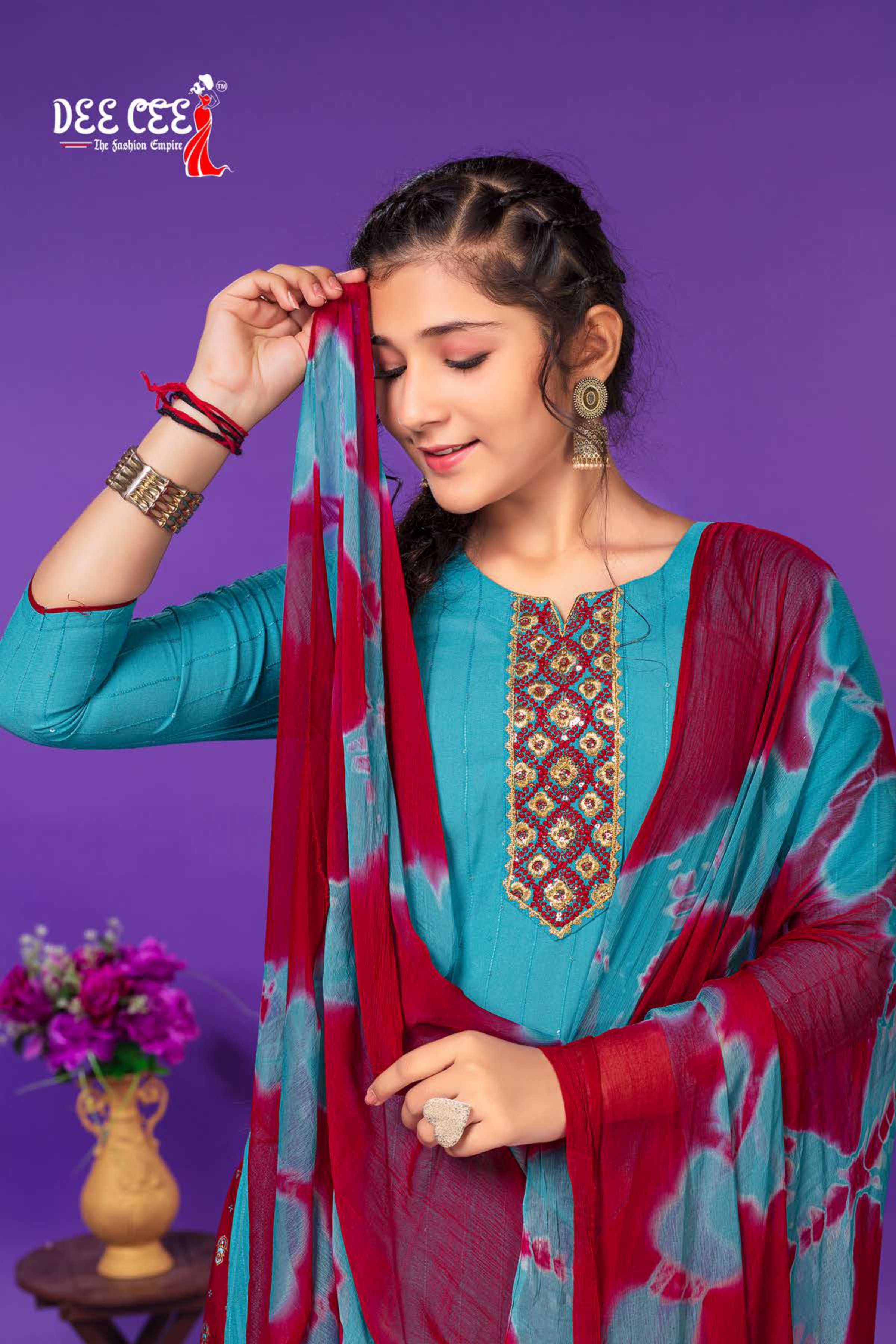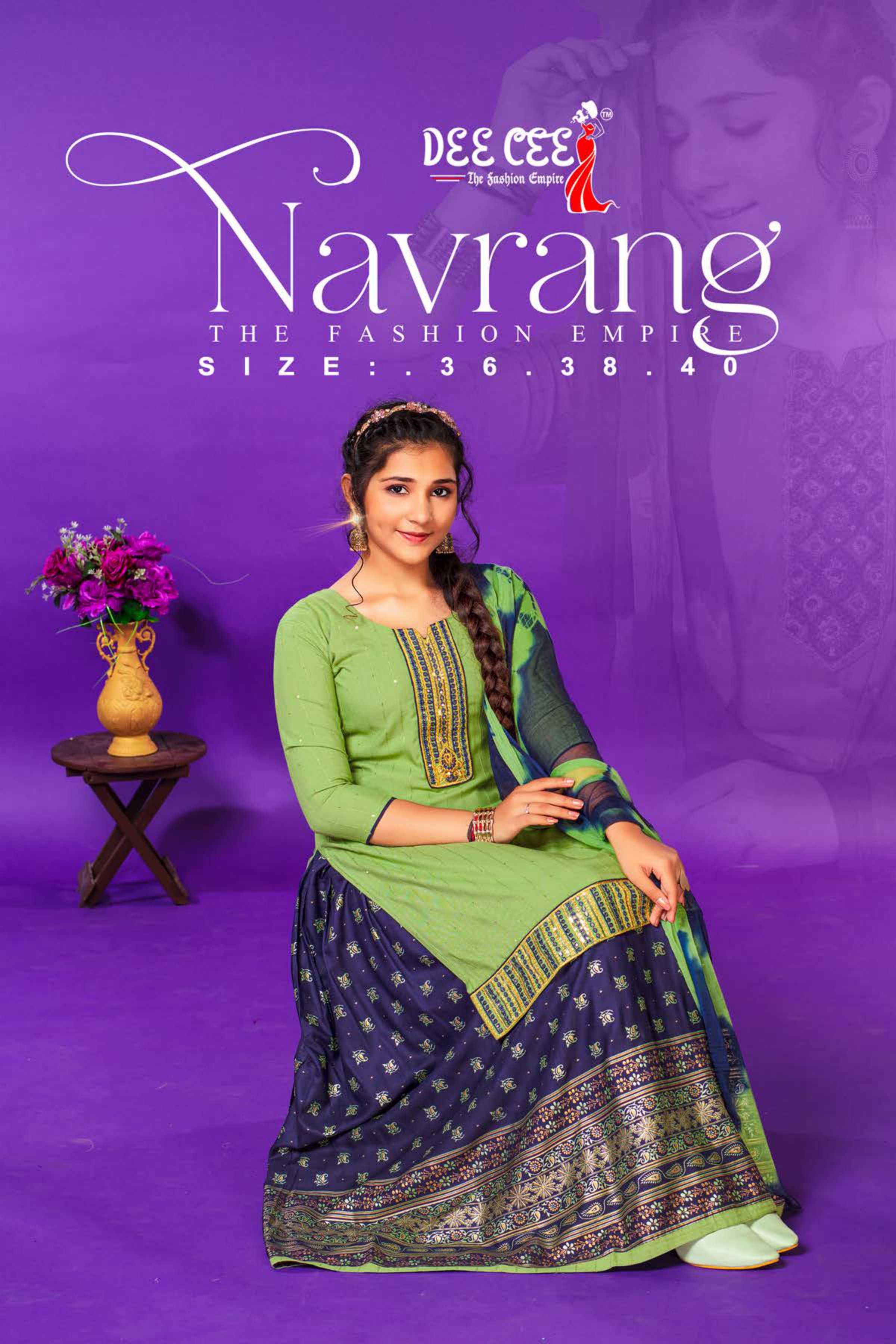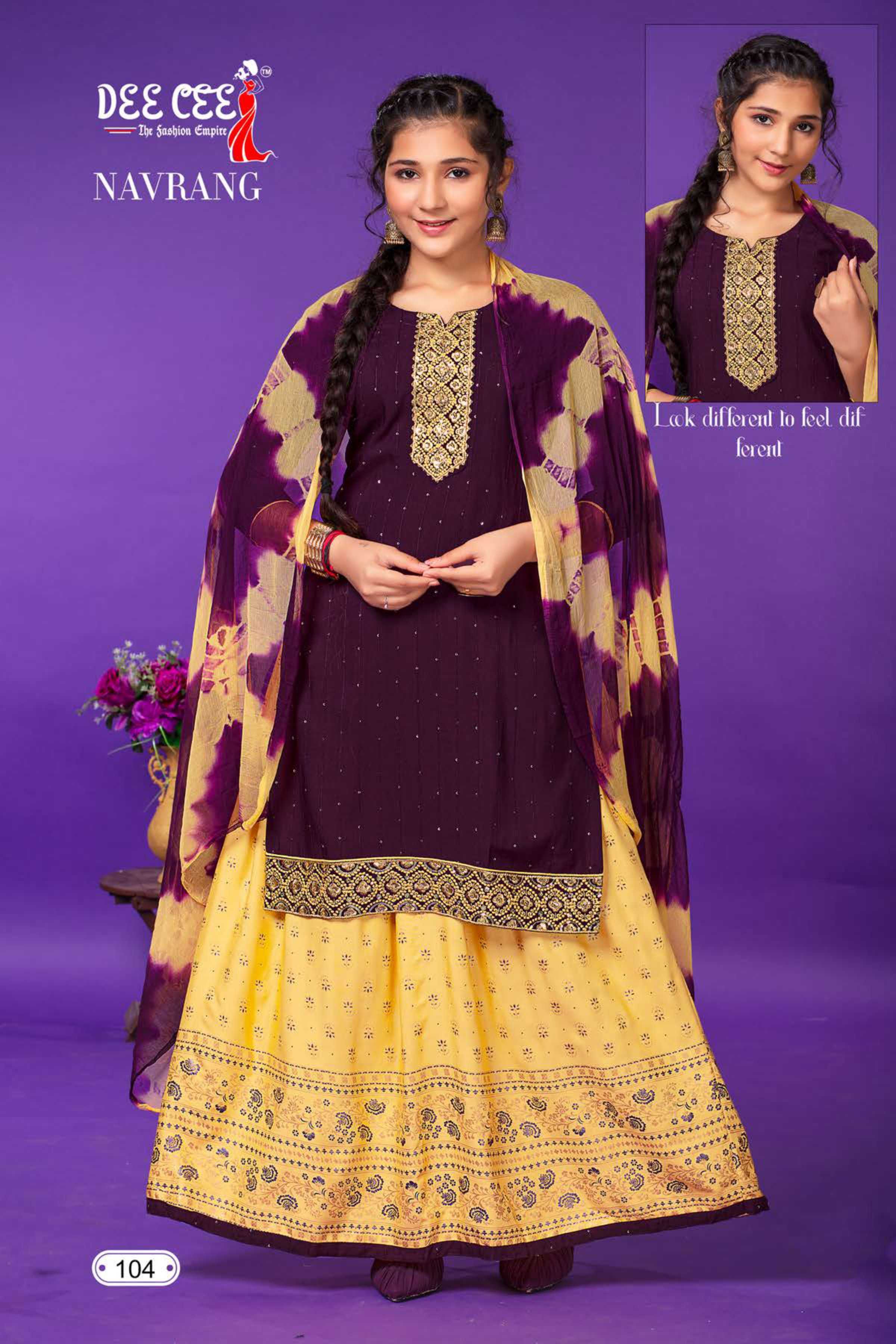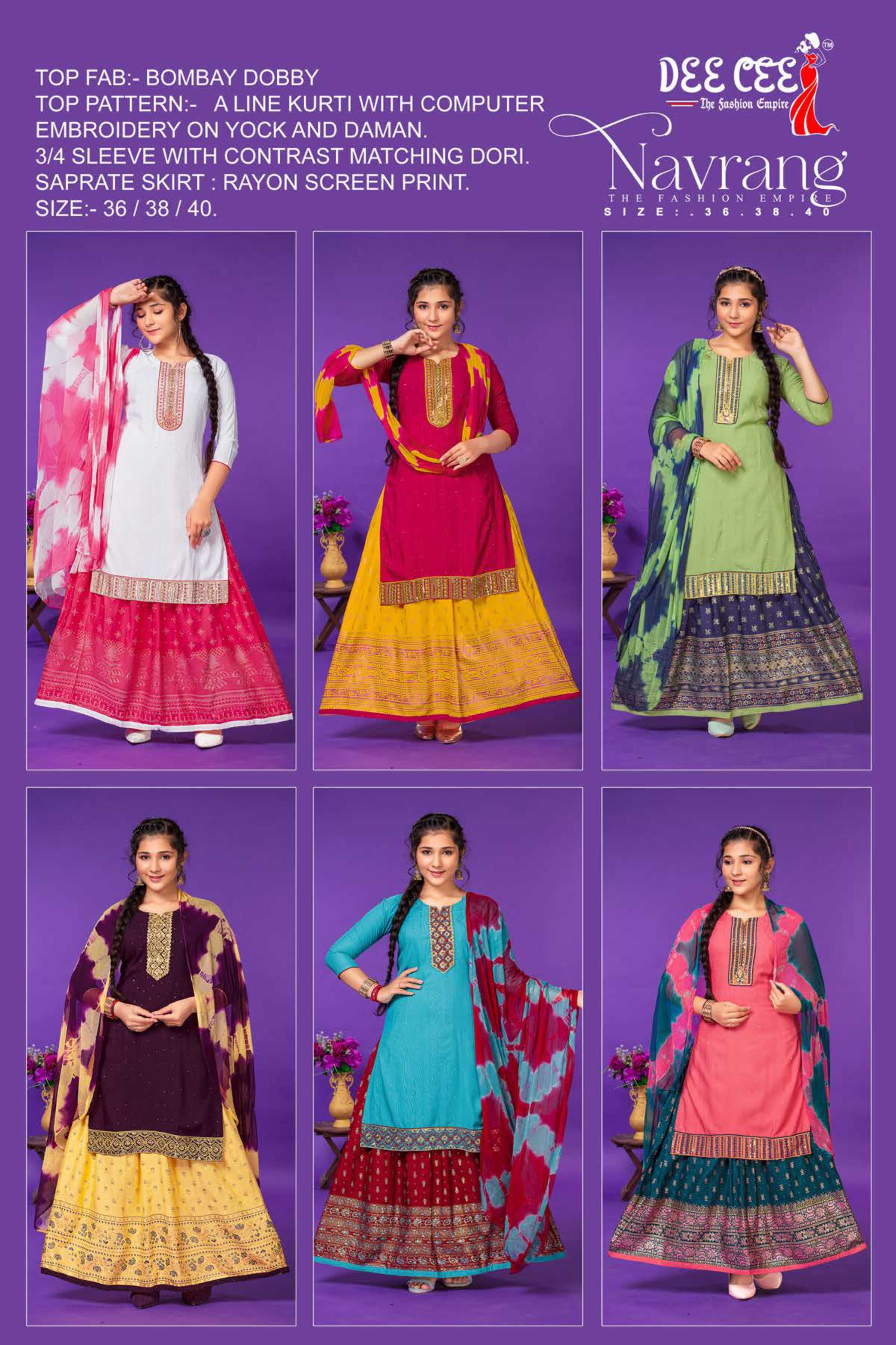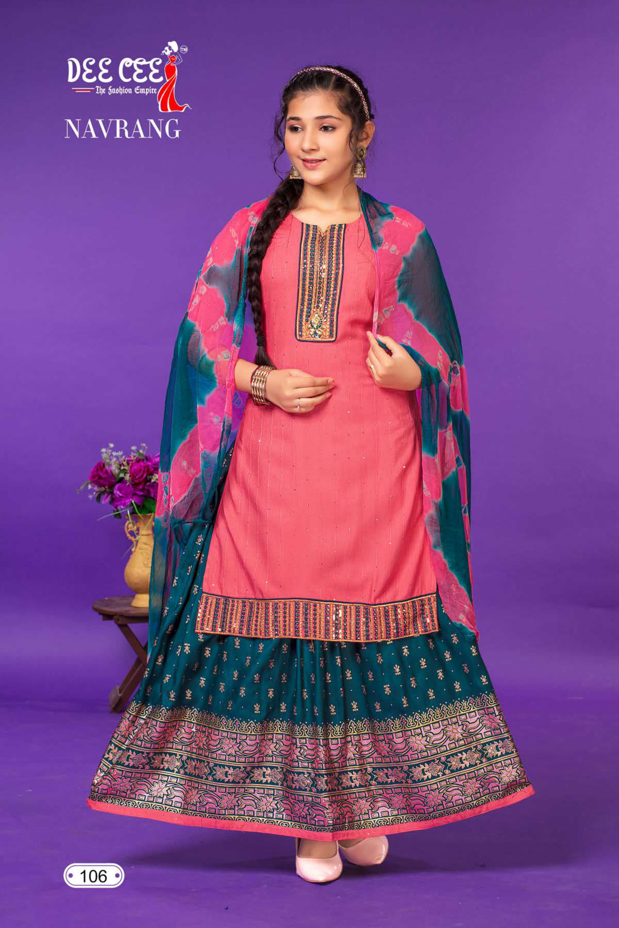 dee cee present navrang readymade kids wear kurti with skirt and dupatta combo set