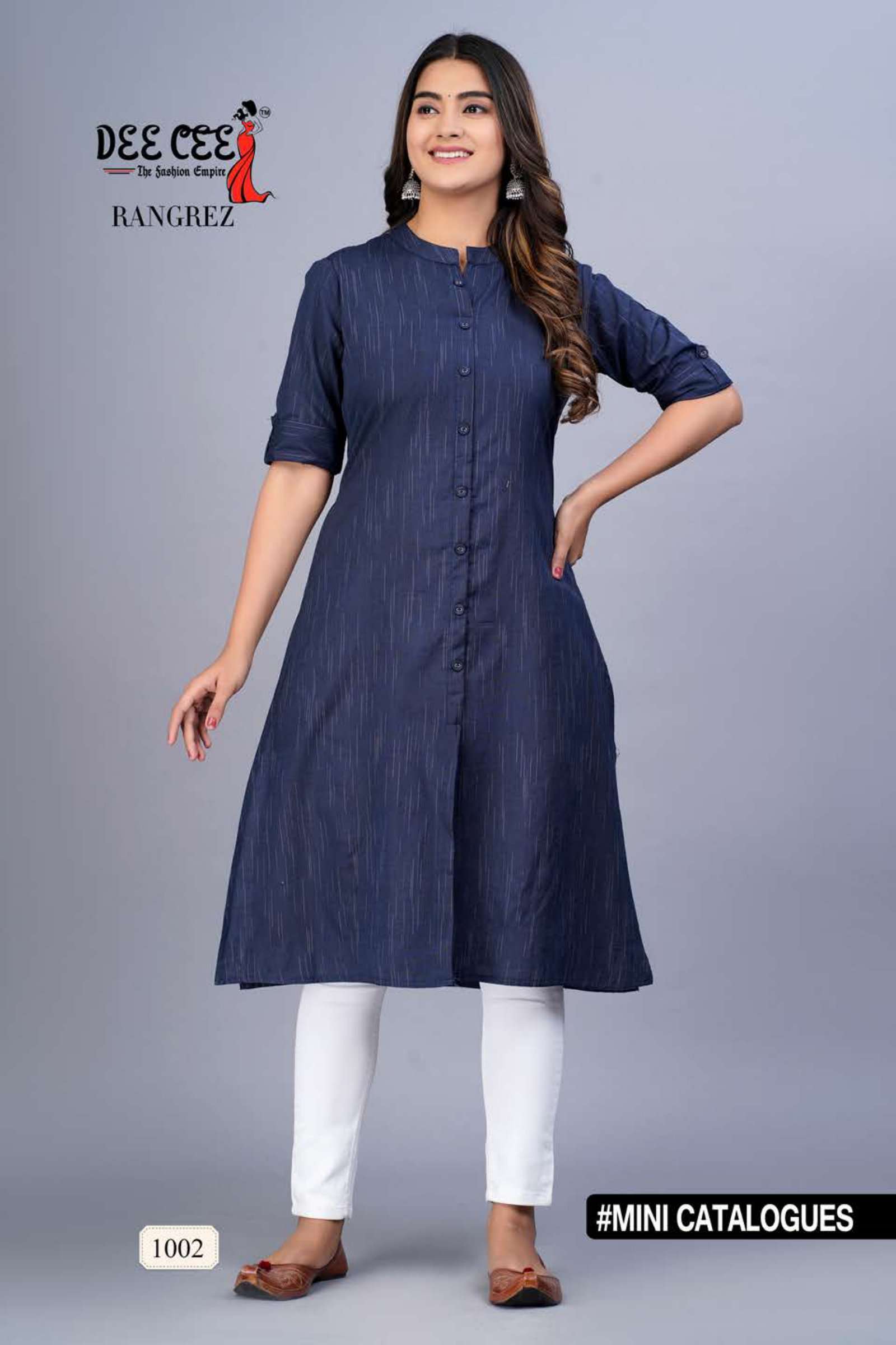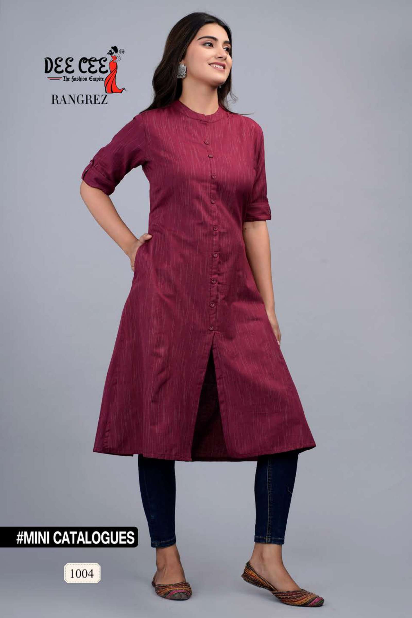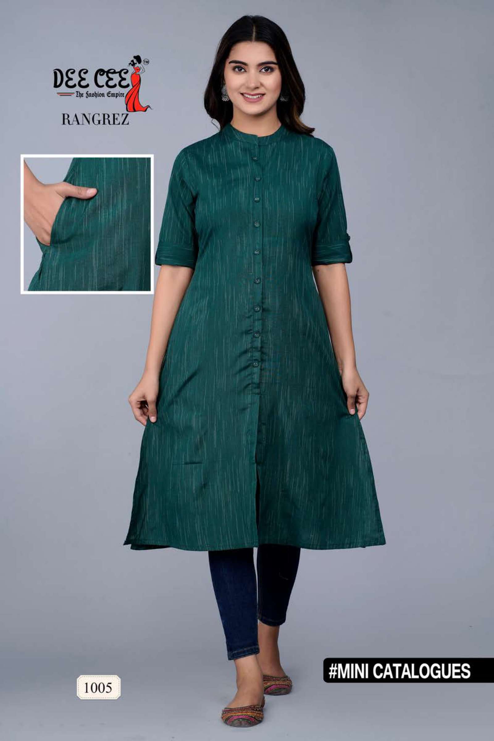 dee cee rangrez fancy a line cotton yarn stitch kurti combo set