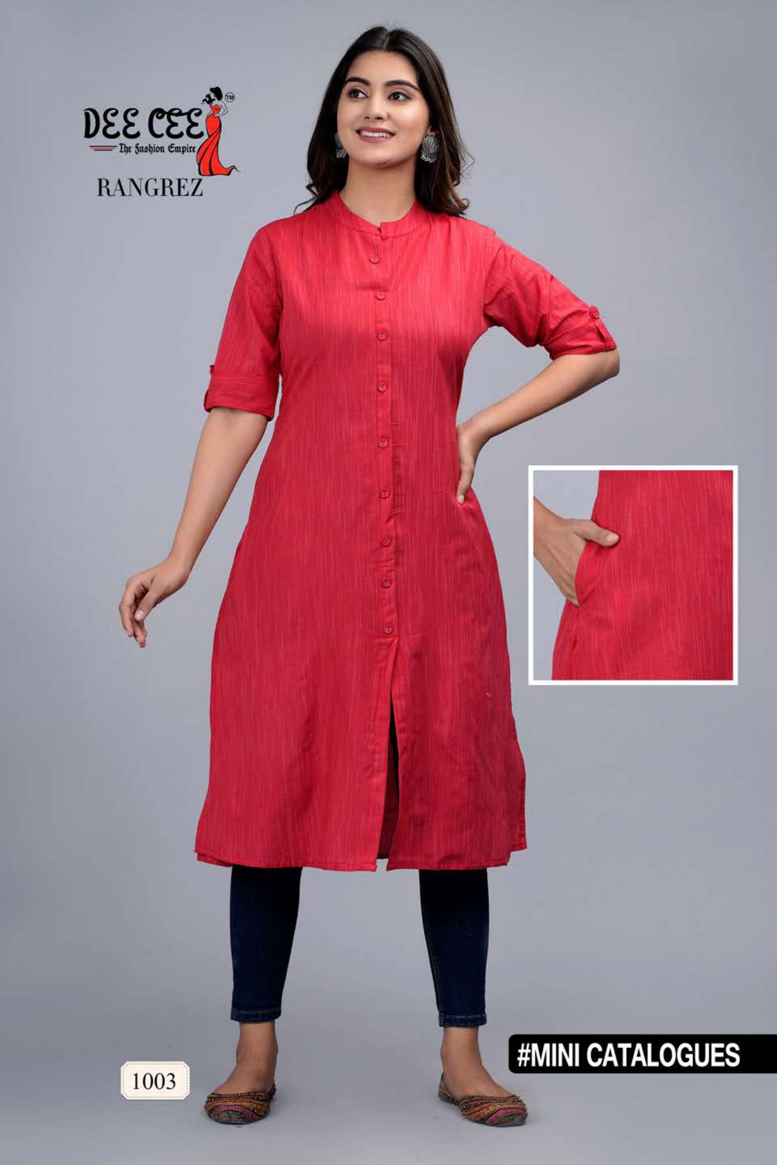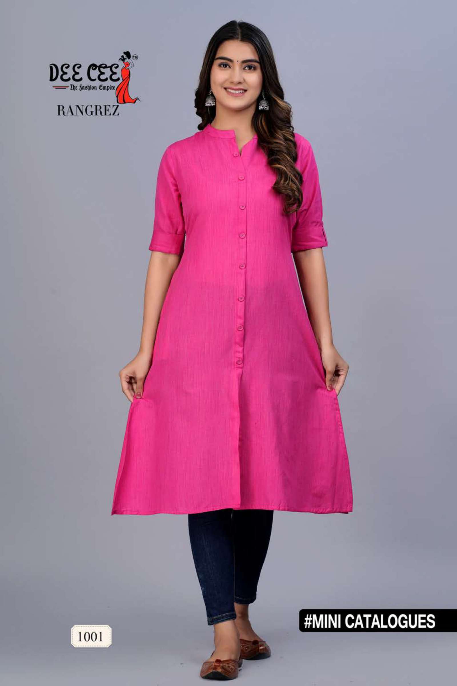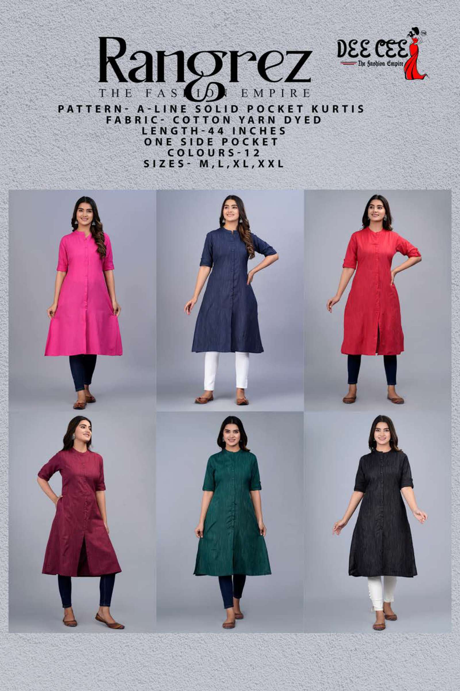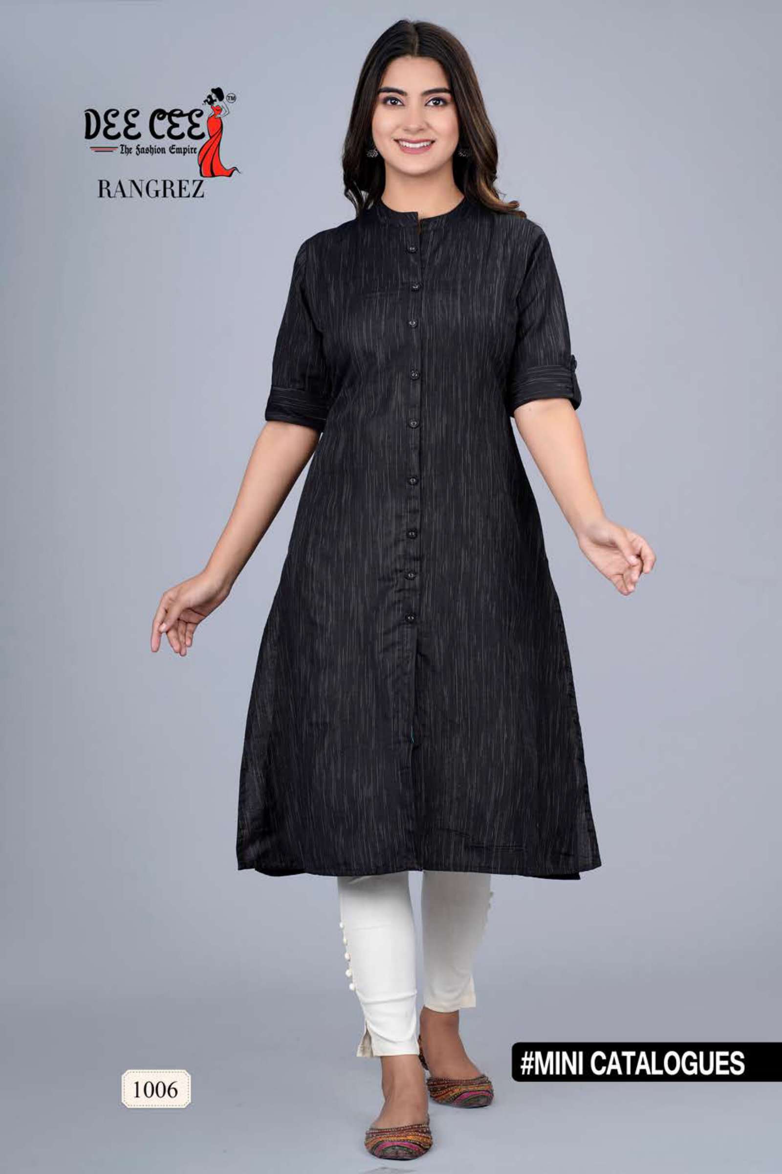 dee cee rangrez fancy a line cotton yarn stitch kurti combo set