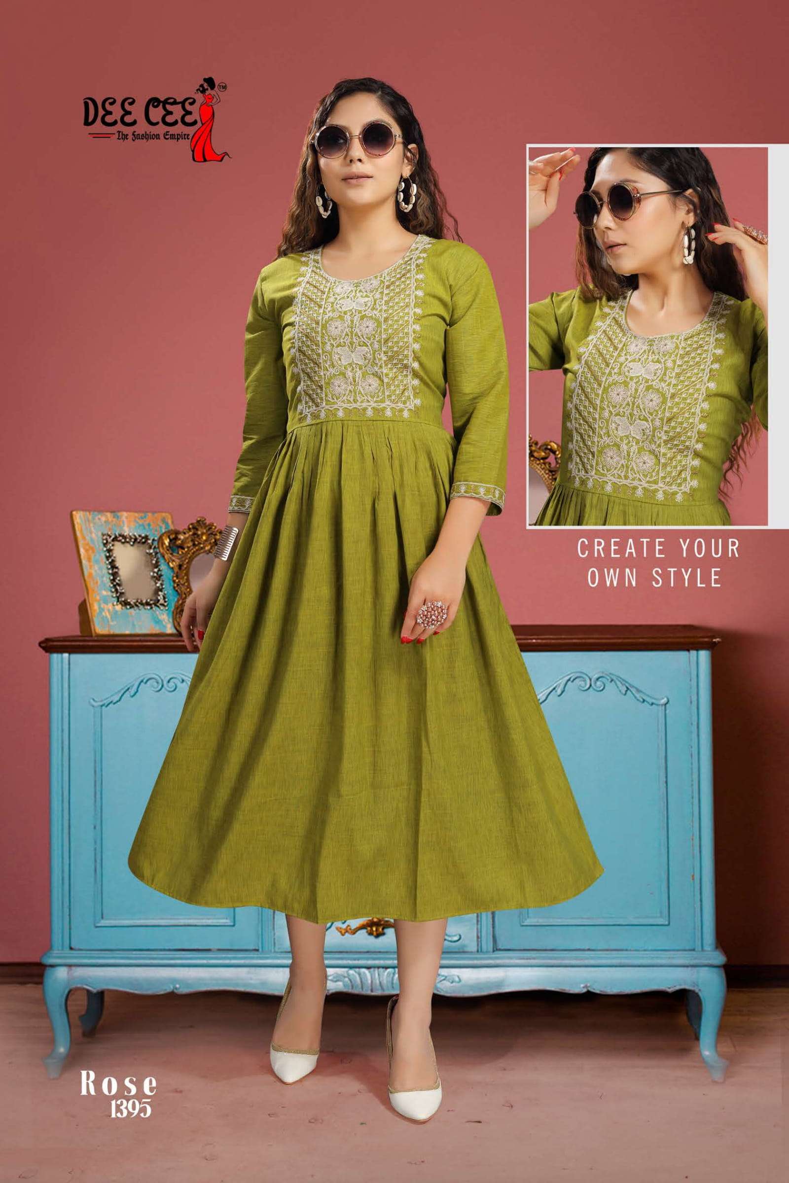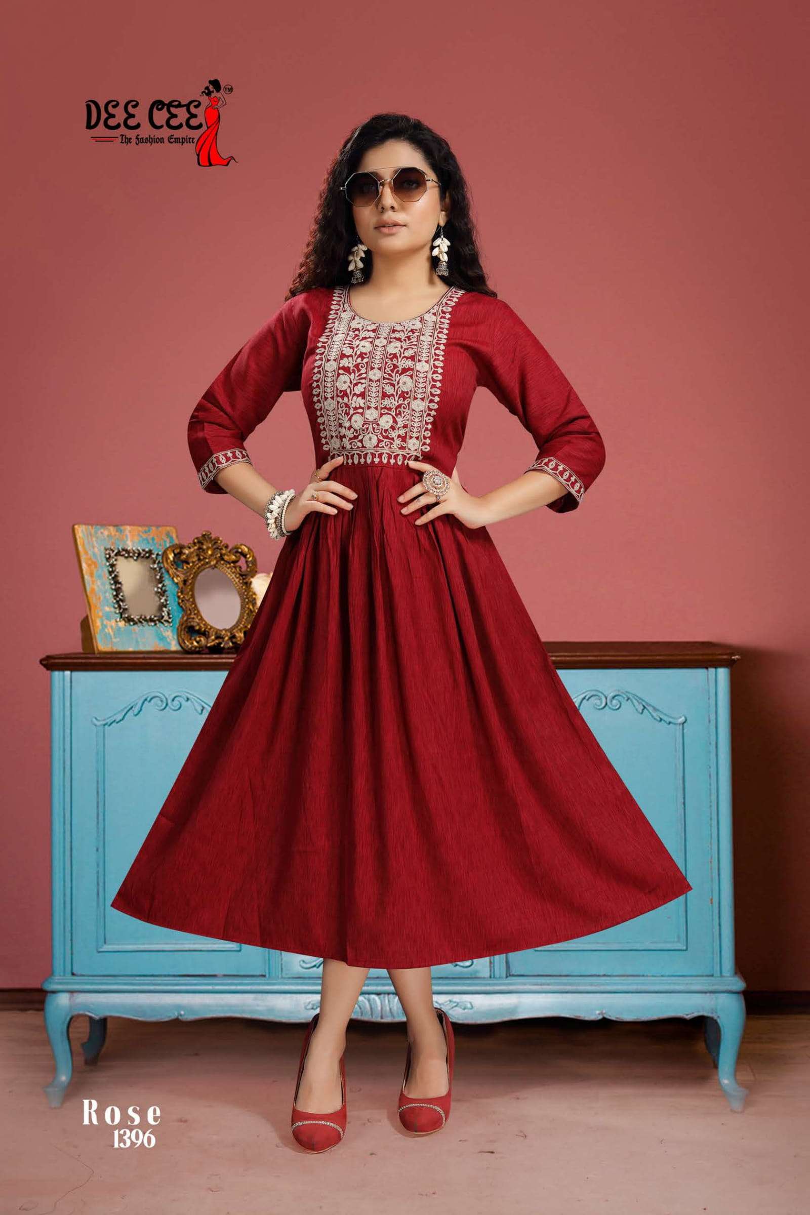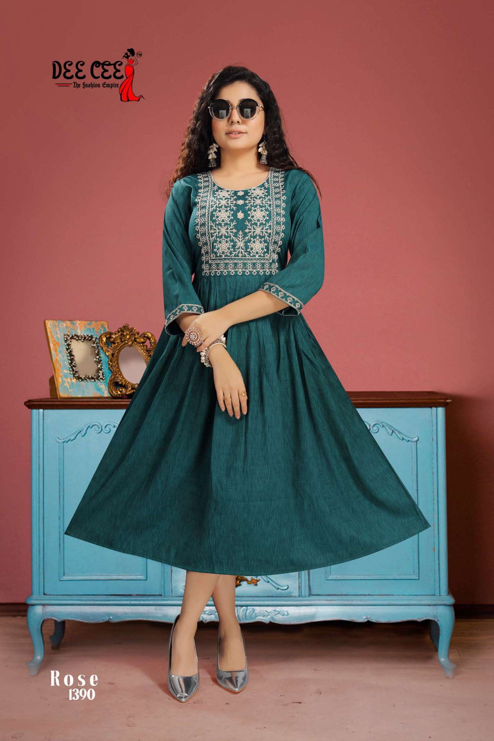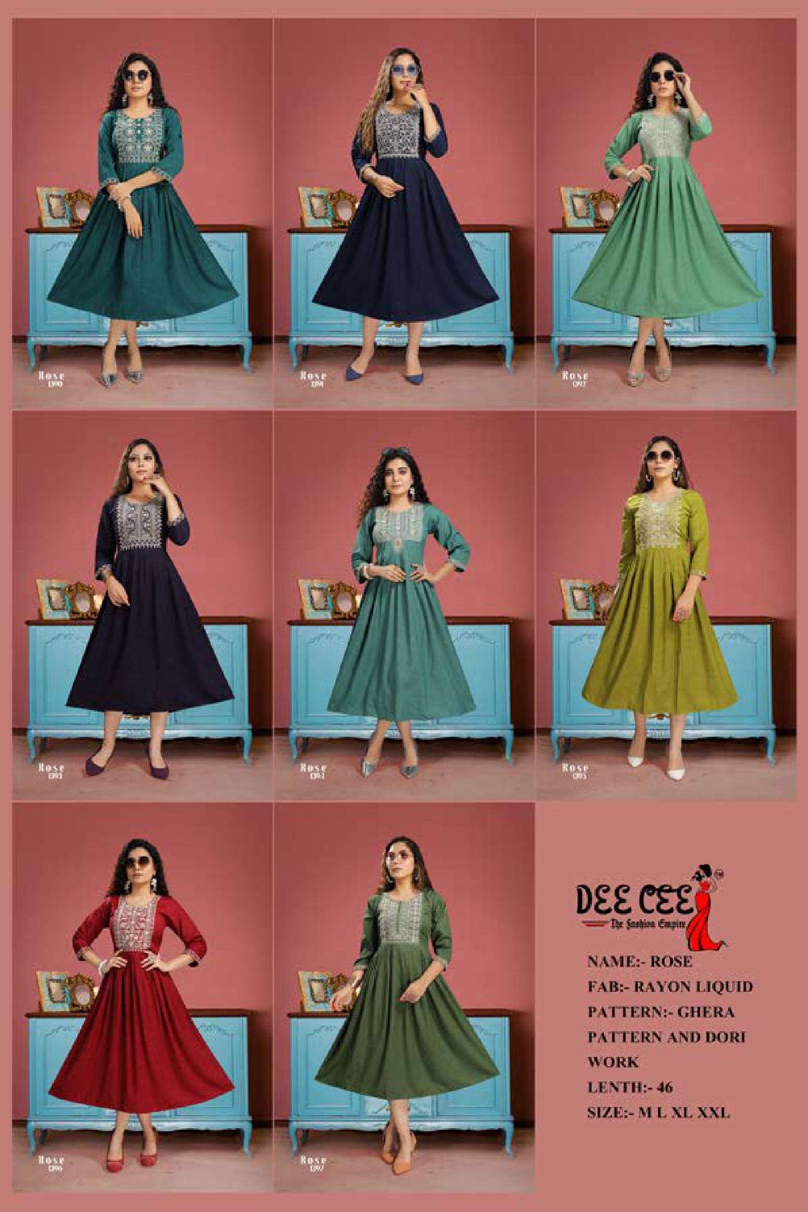 dee cee rose fancy rayon ghera pattern kurti collection at krishna creation
