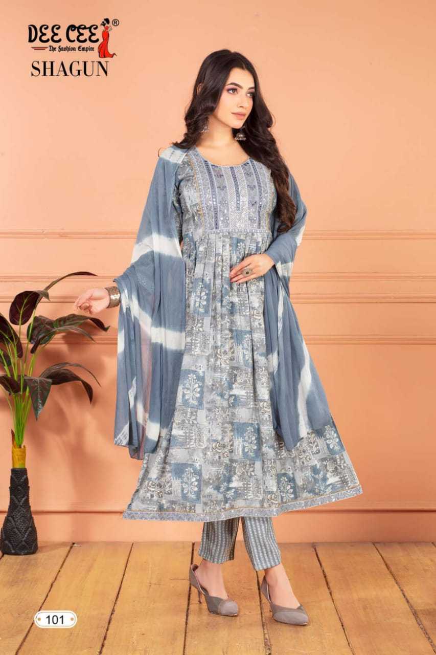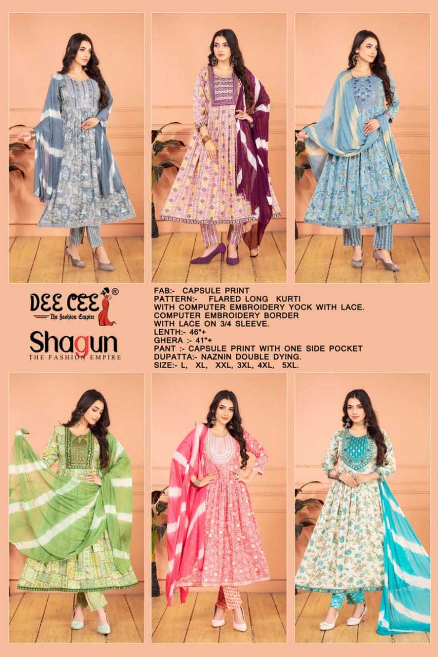 dee cee shagun readymade flair kurti pant dupatta in plus size