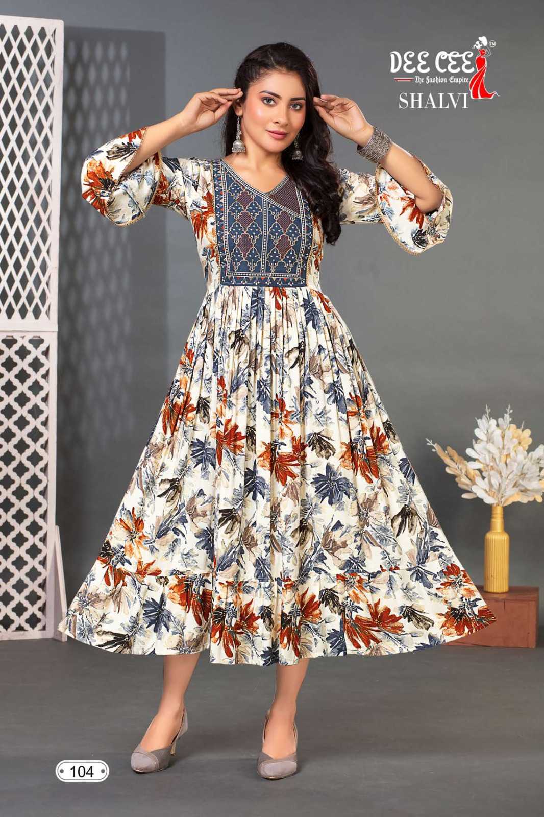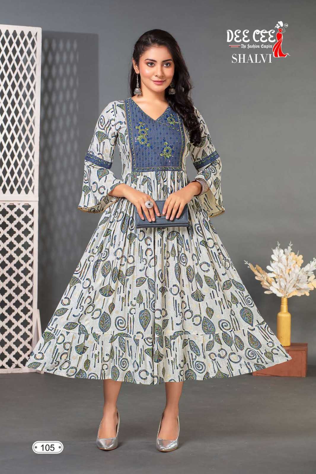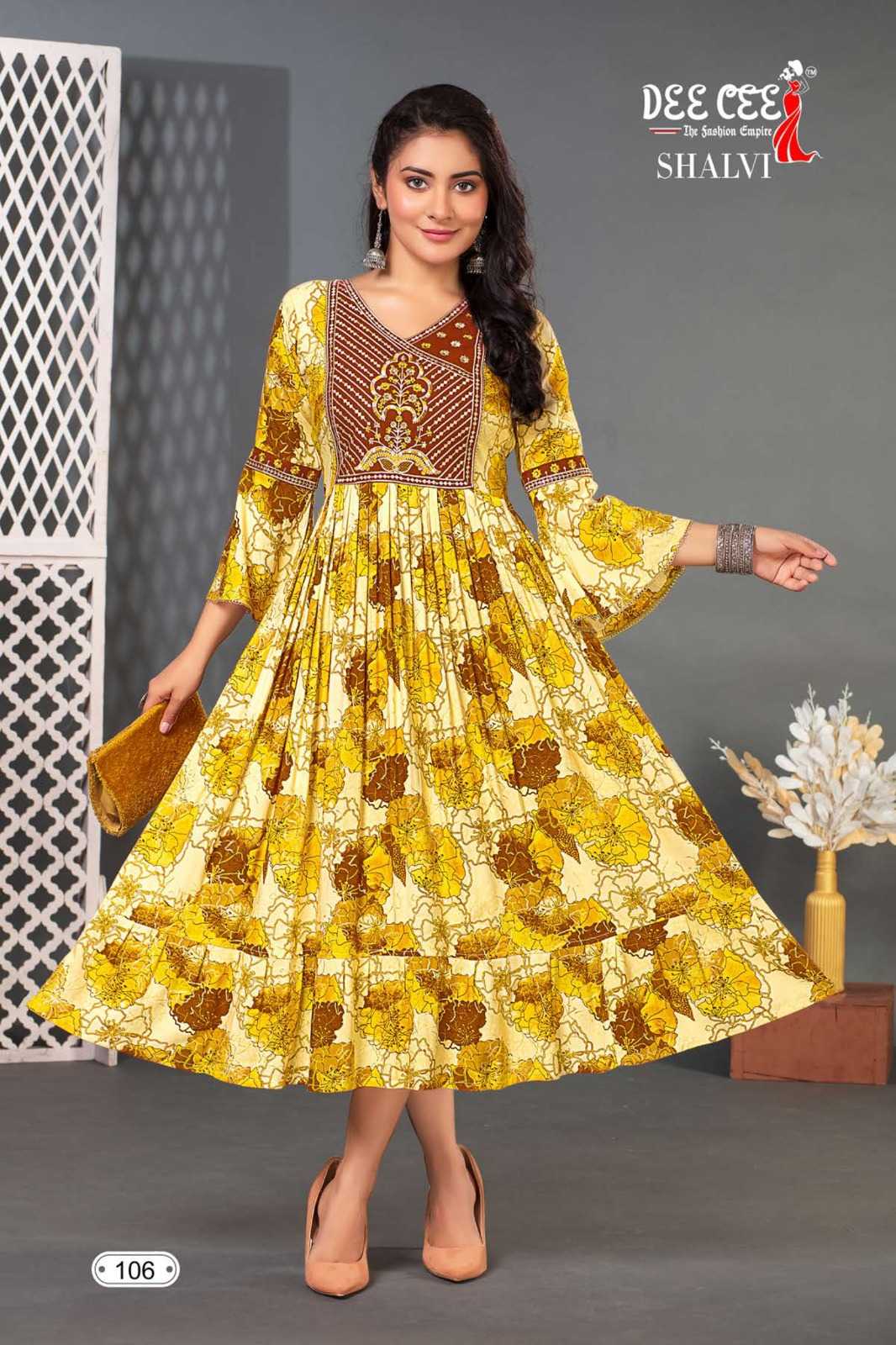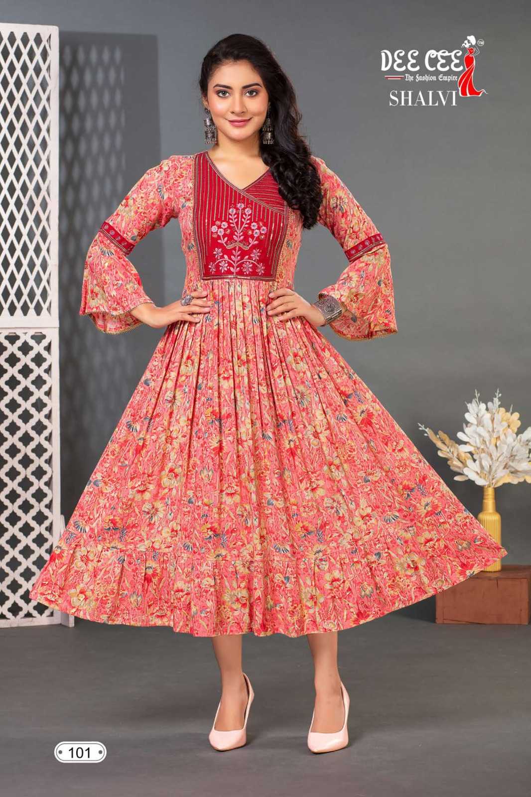 dee cee shalvi amazing fancy double flared stitch kurtis
