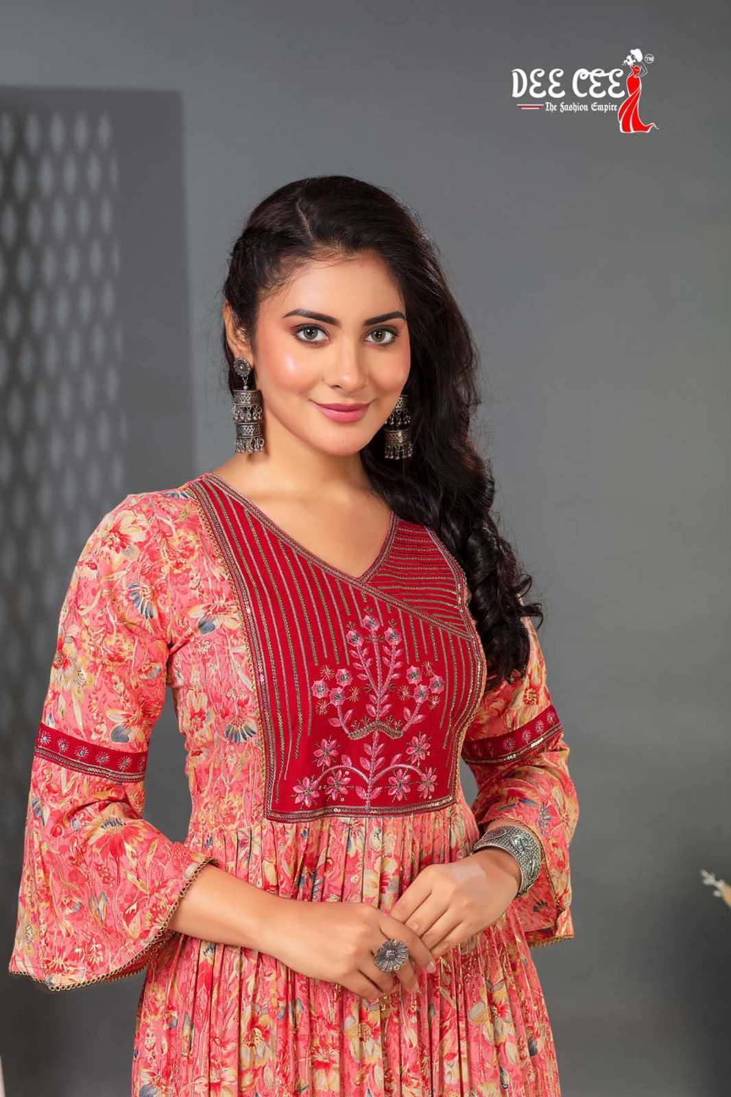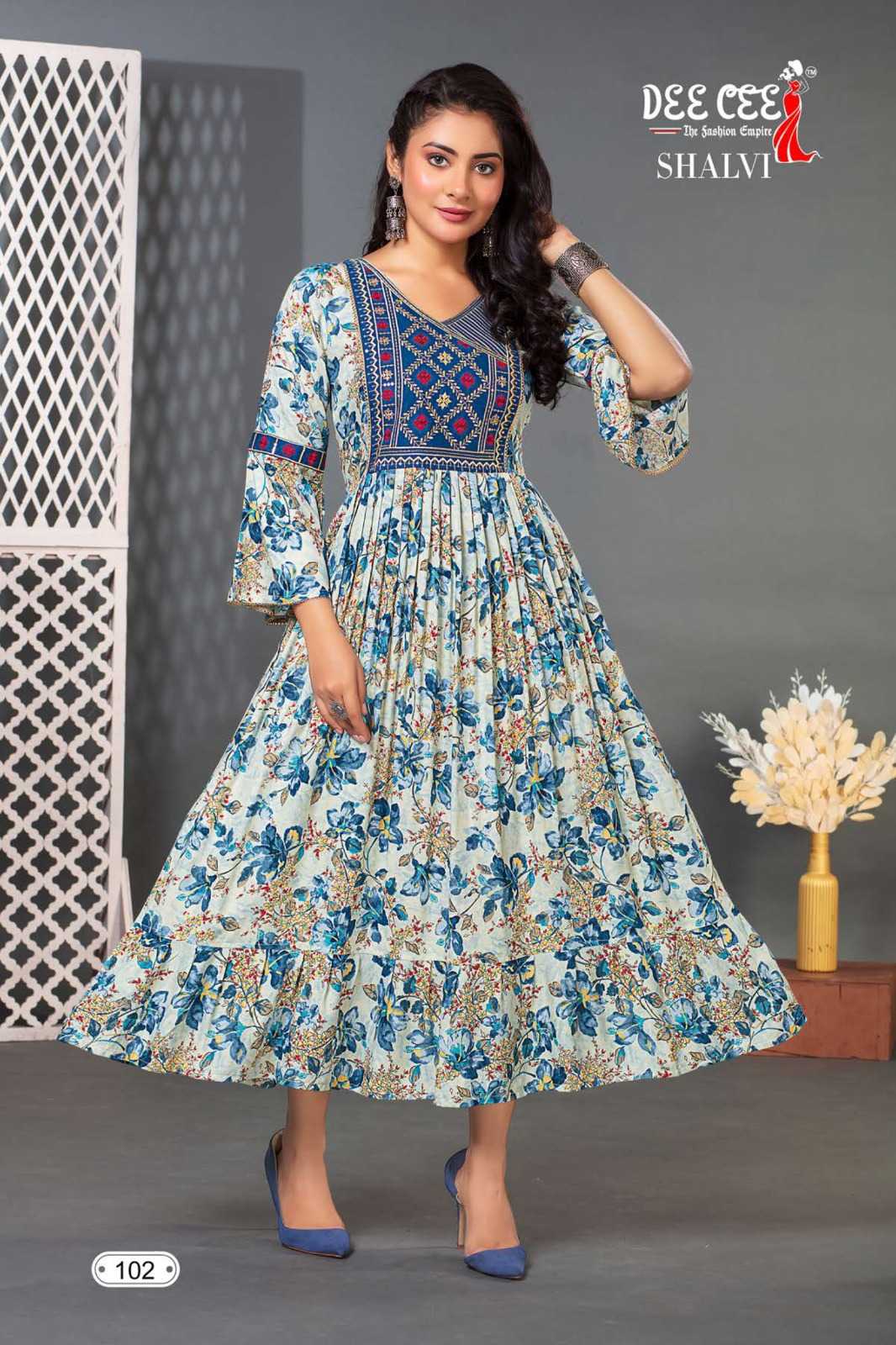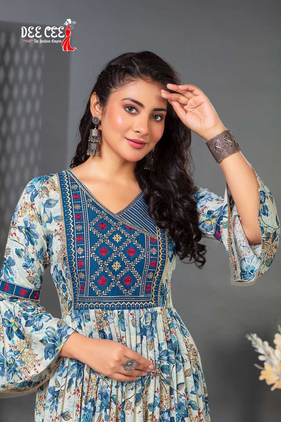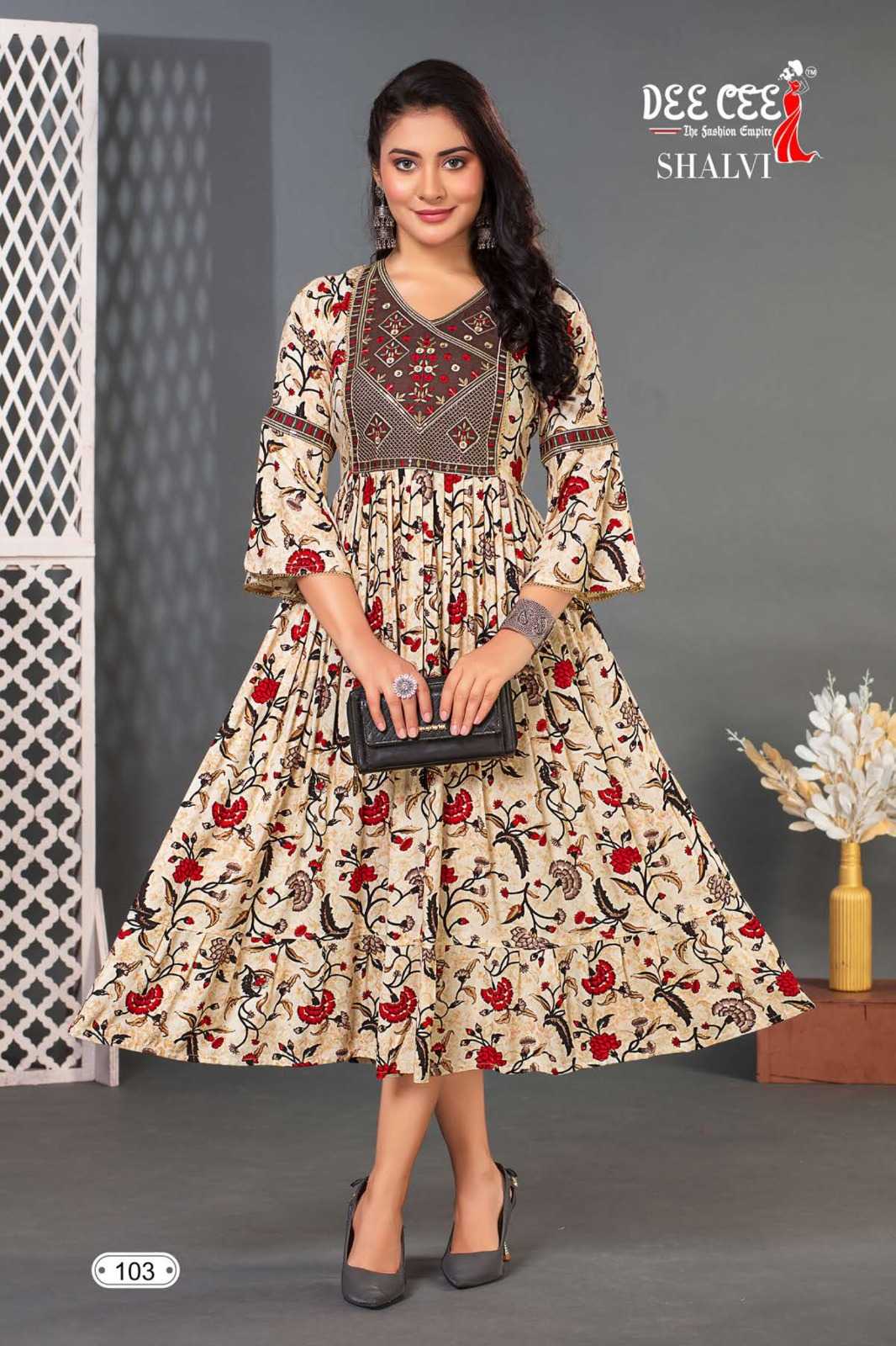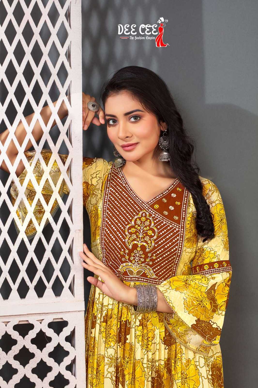 dee cee shalvi amazing fancy double flared stitch kurtis