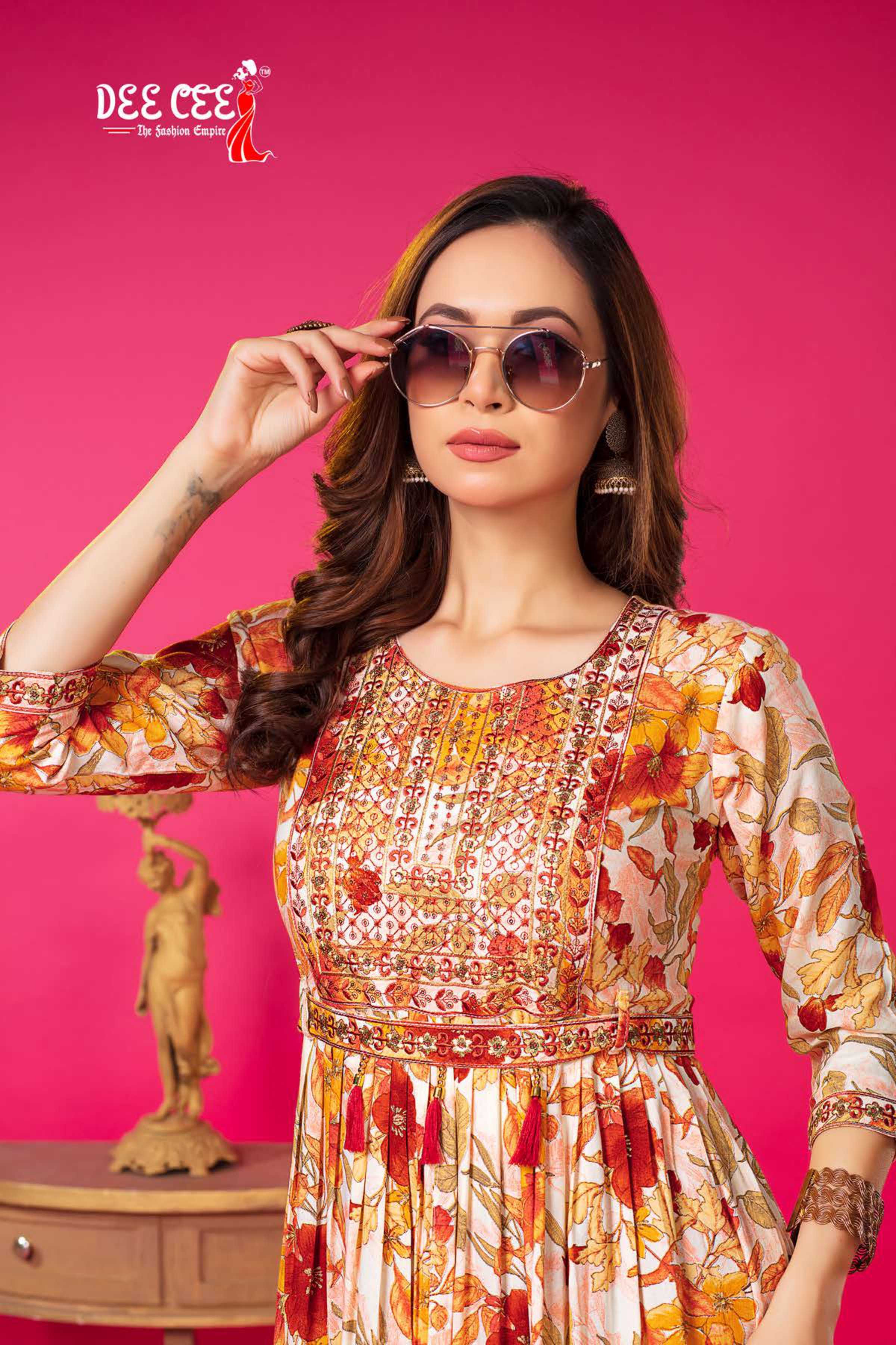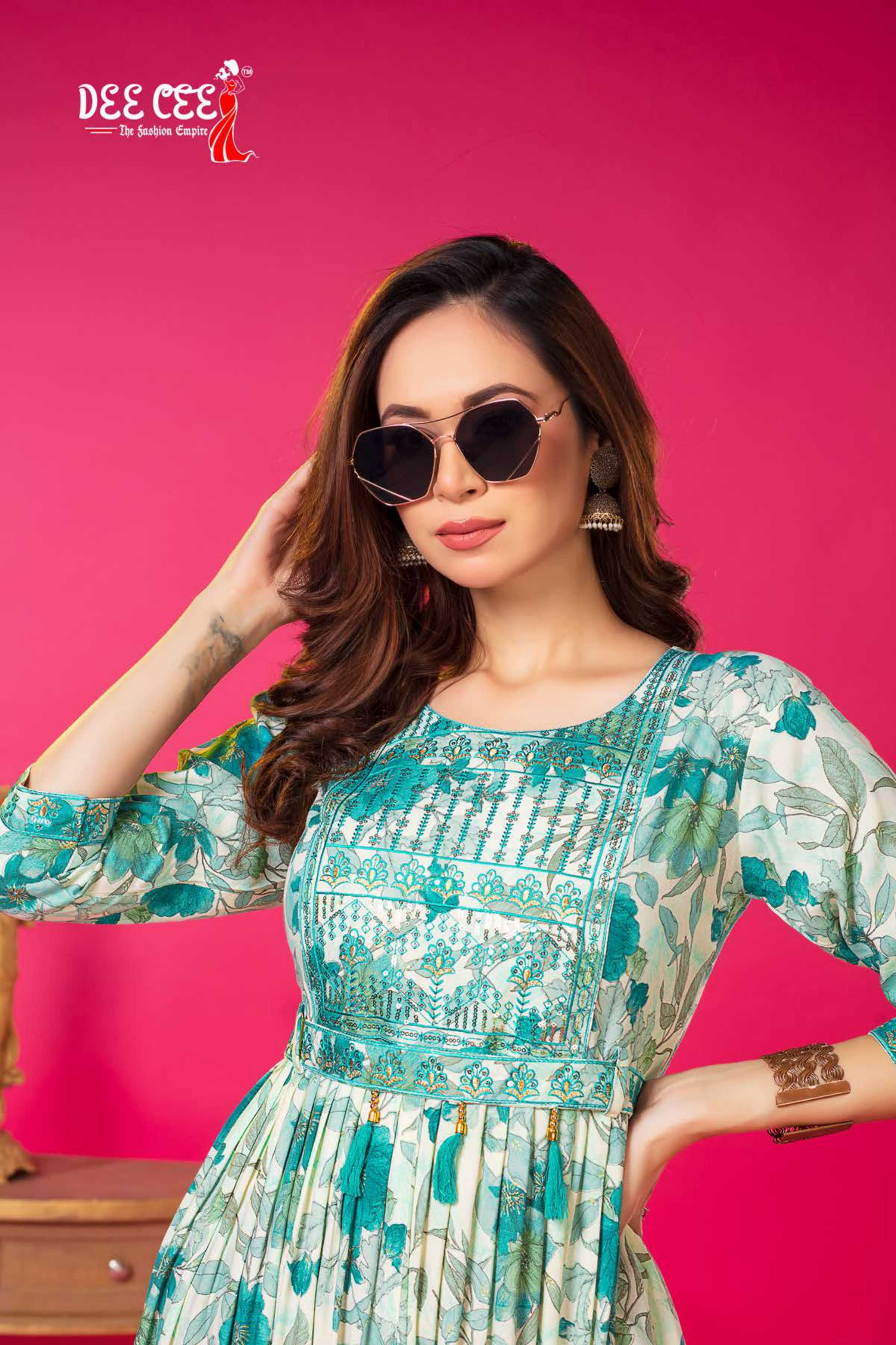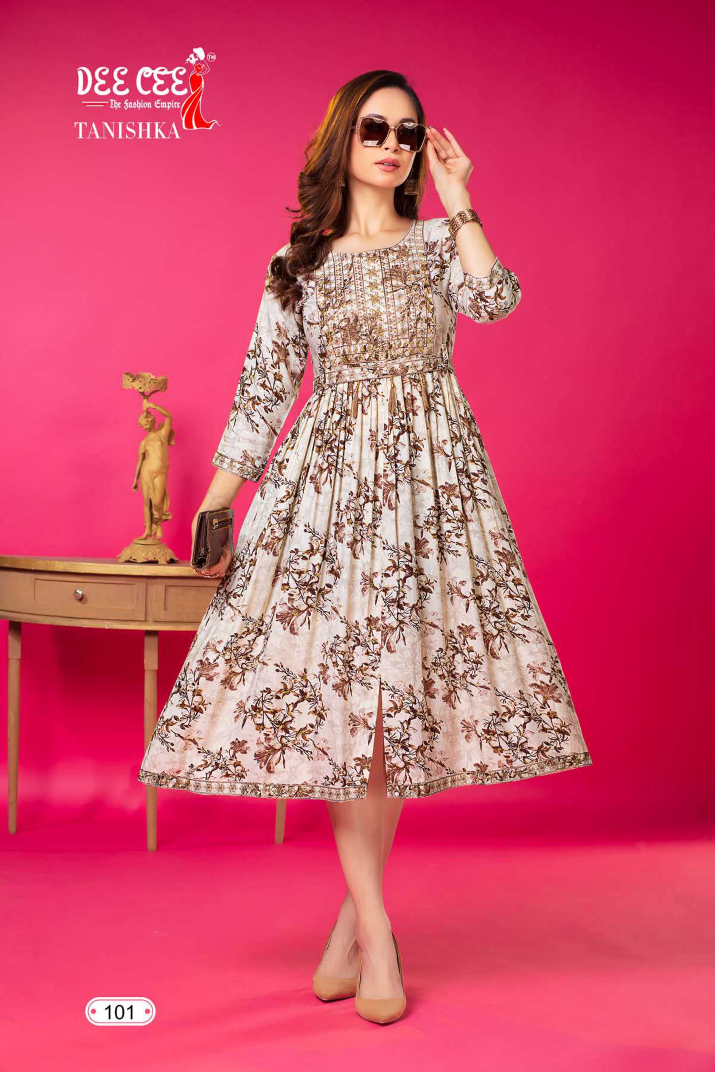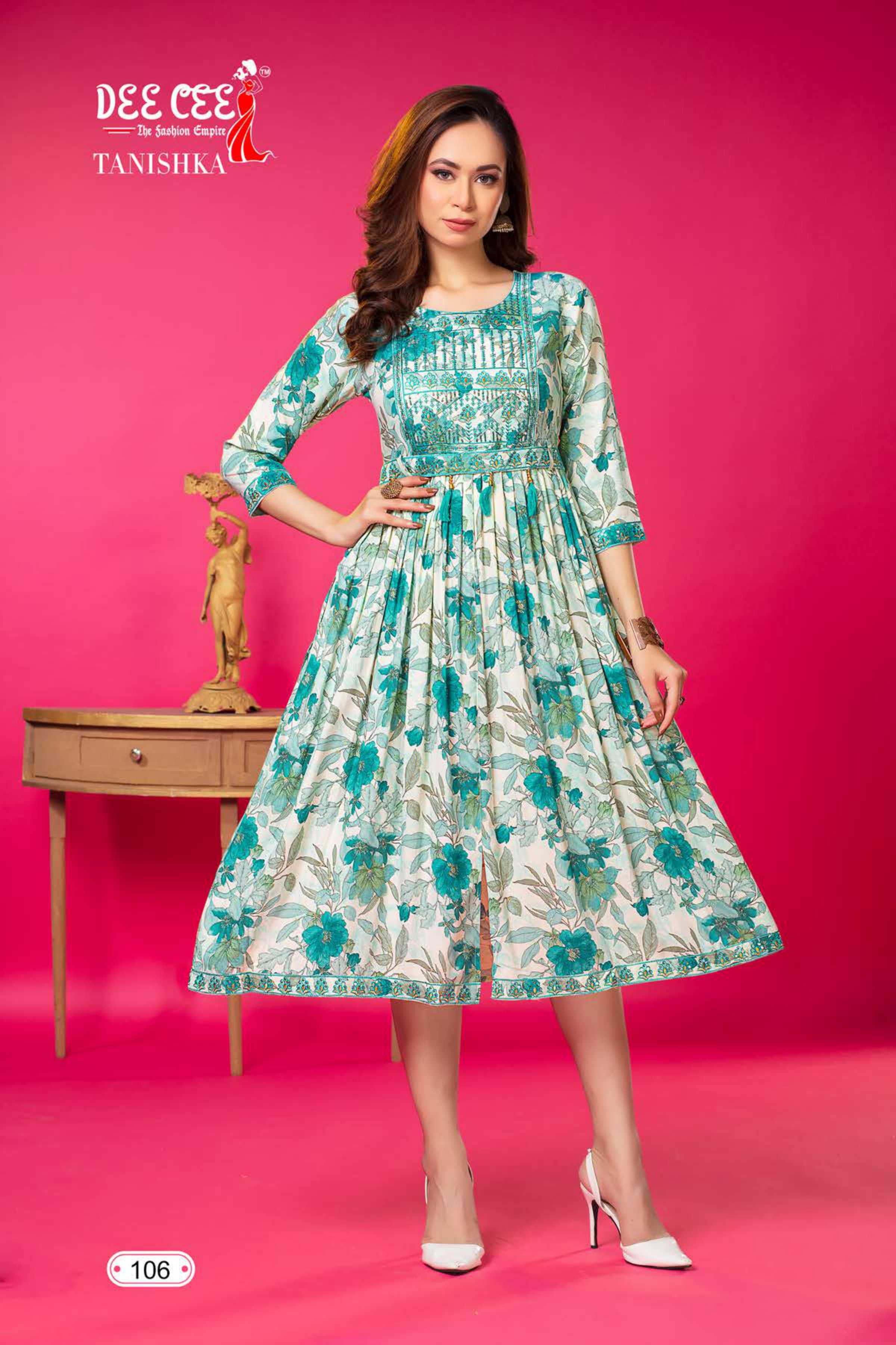 dee cee tanishka fancy center cut flared kurtis
