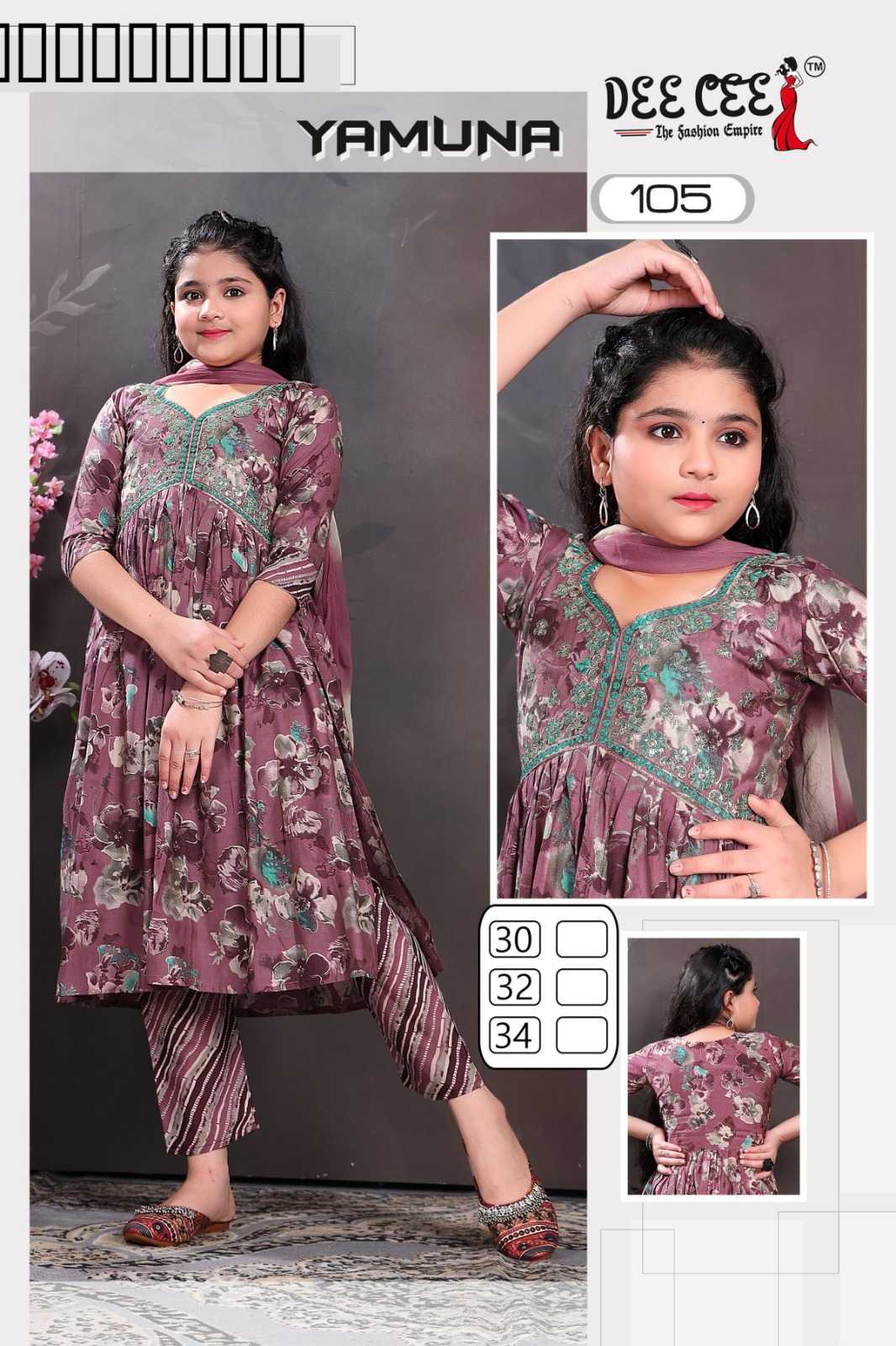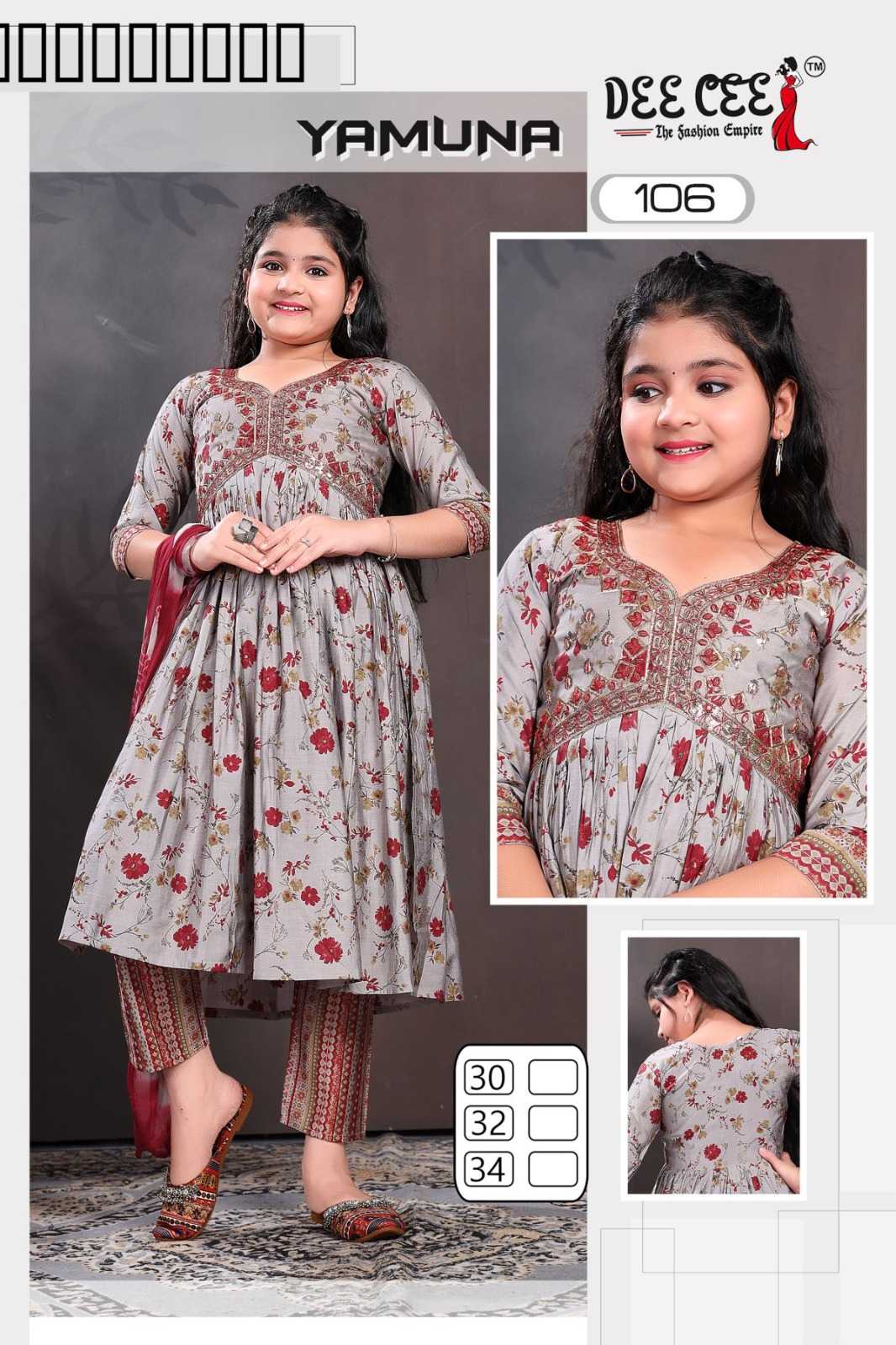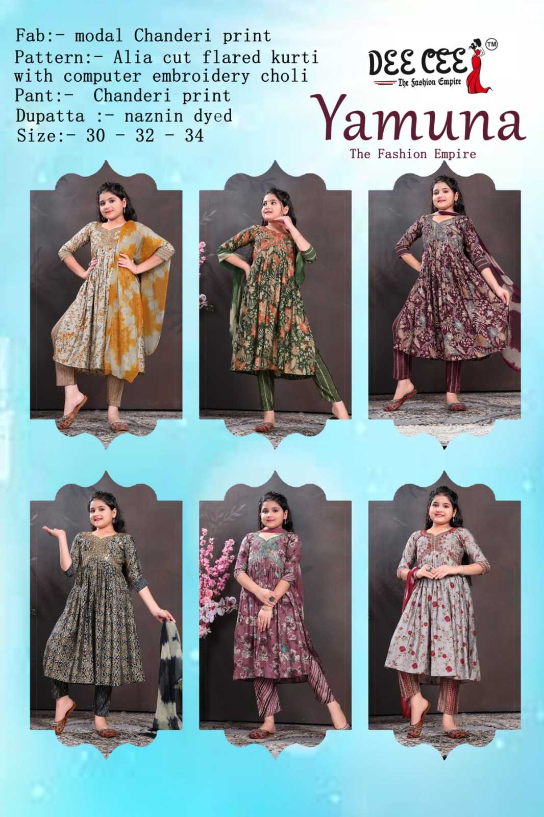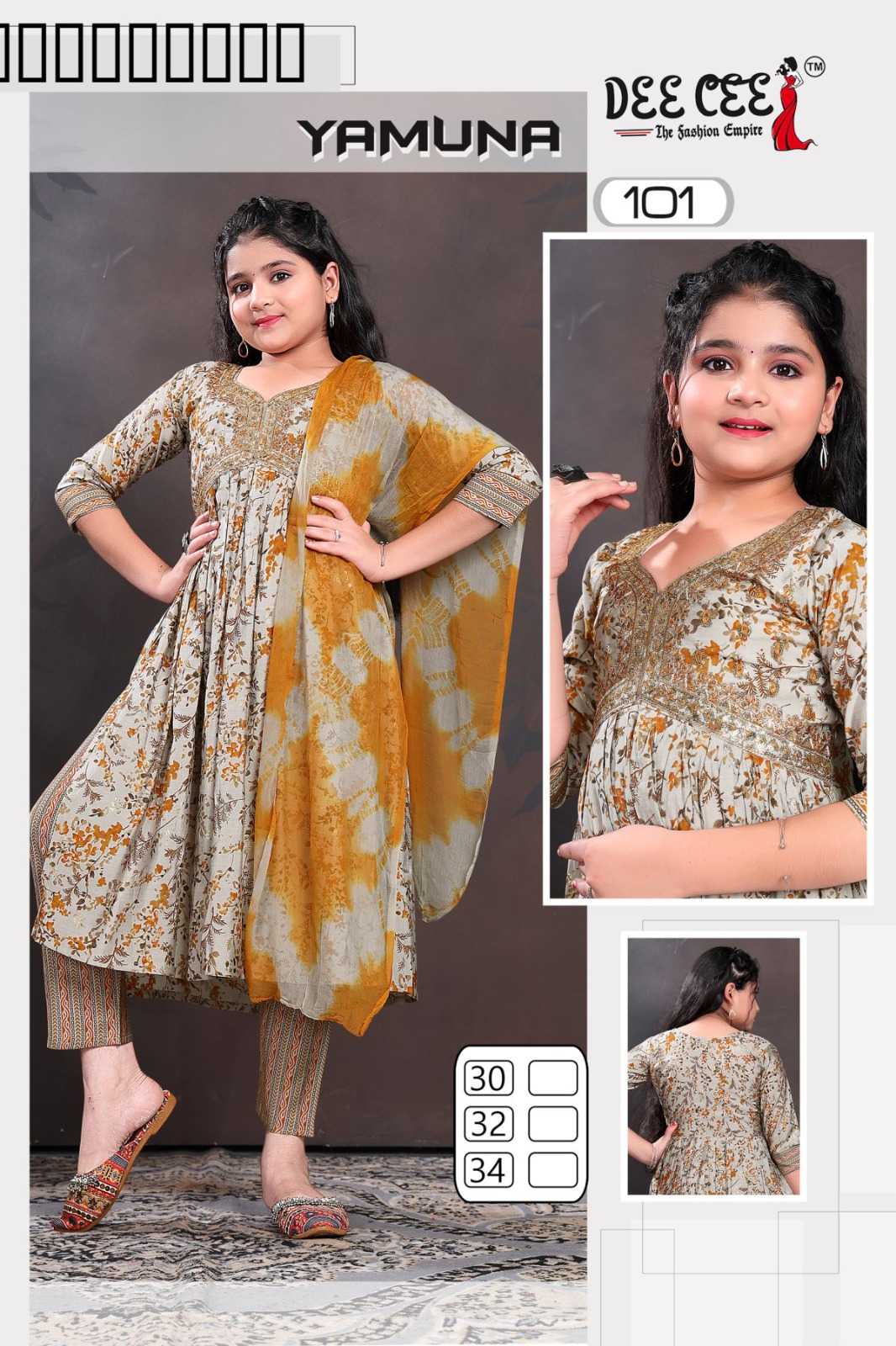 dee cee yamuna readymade alia cut kurti with bottom and dupatta combo set kids collection
