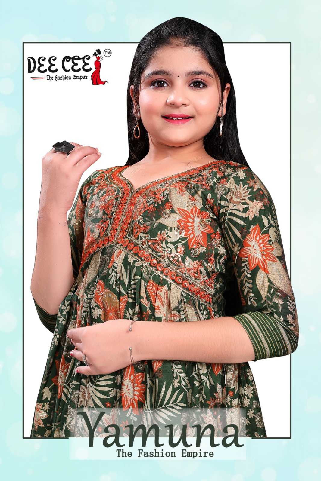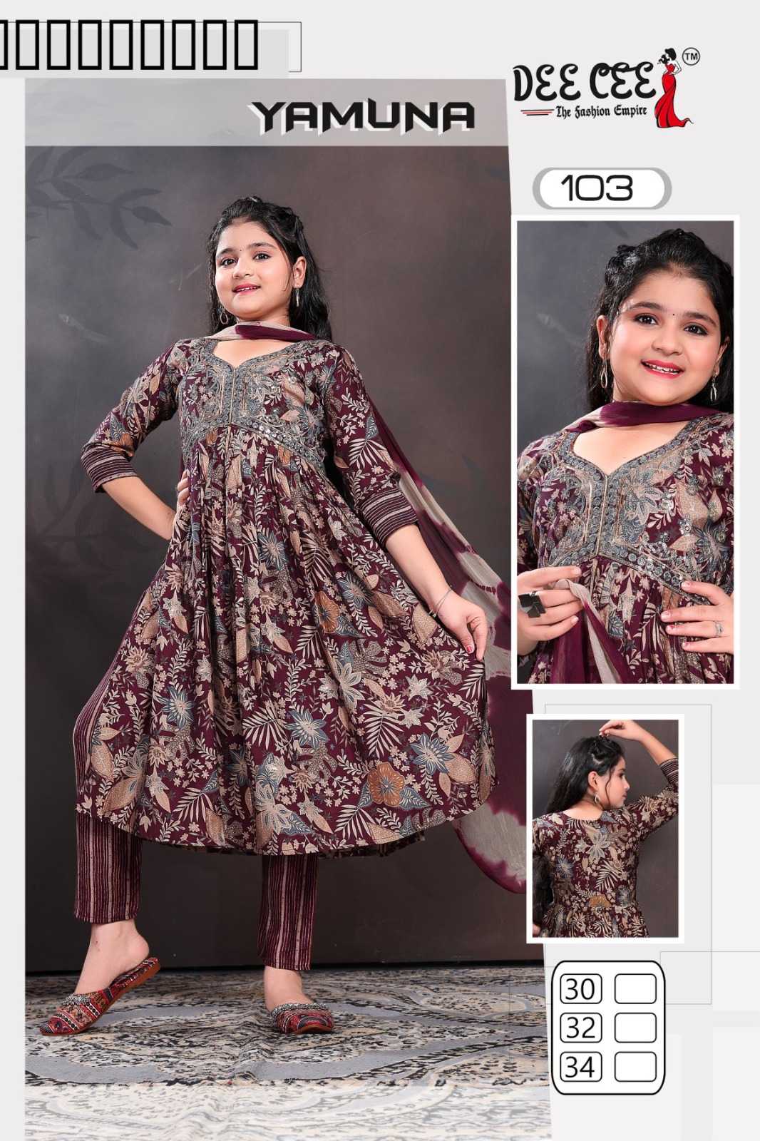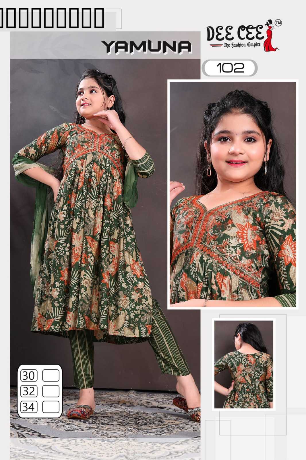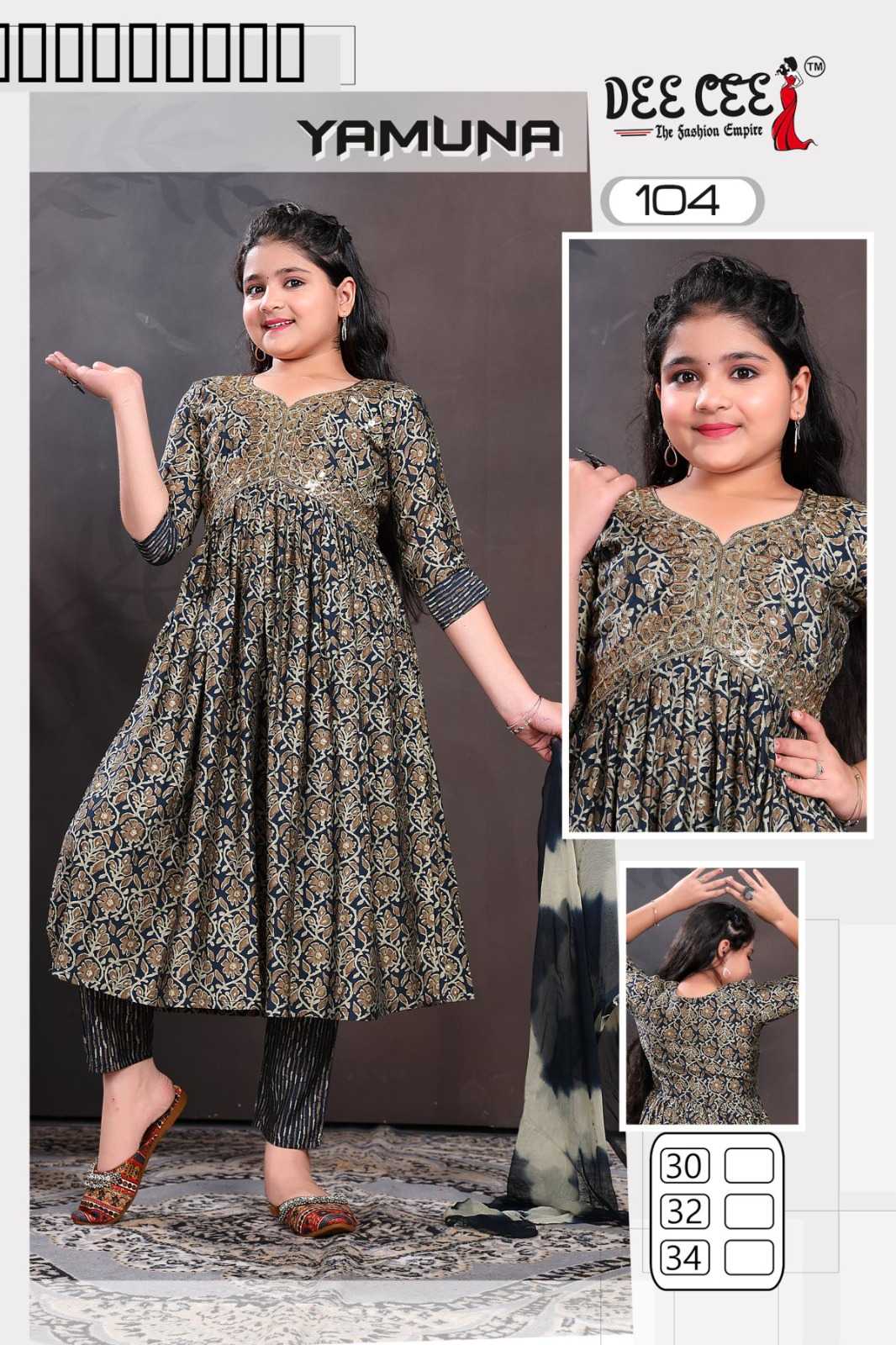 dee cee yamuna readymade alia cut kurti with bottom and dupatta combo set kids collection