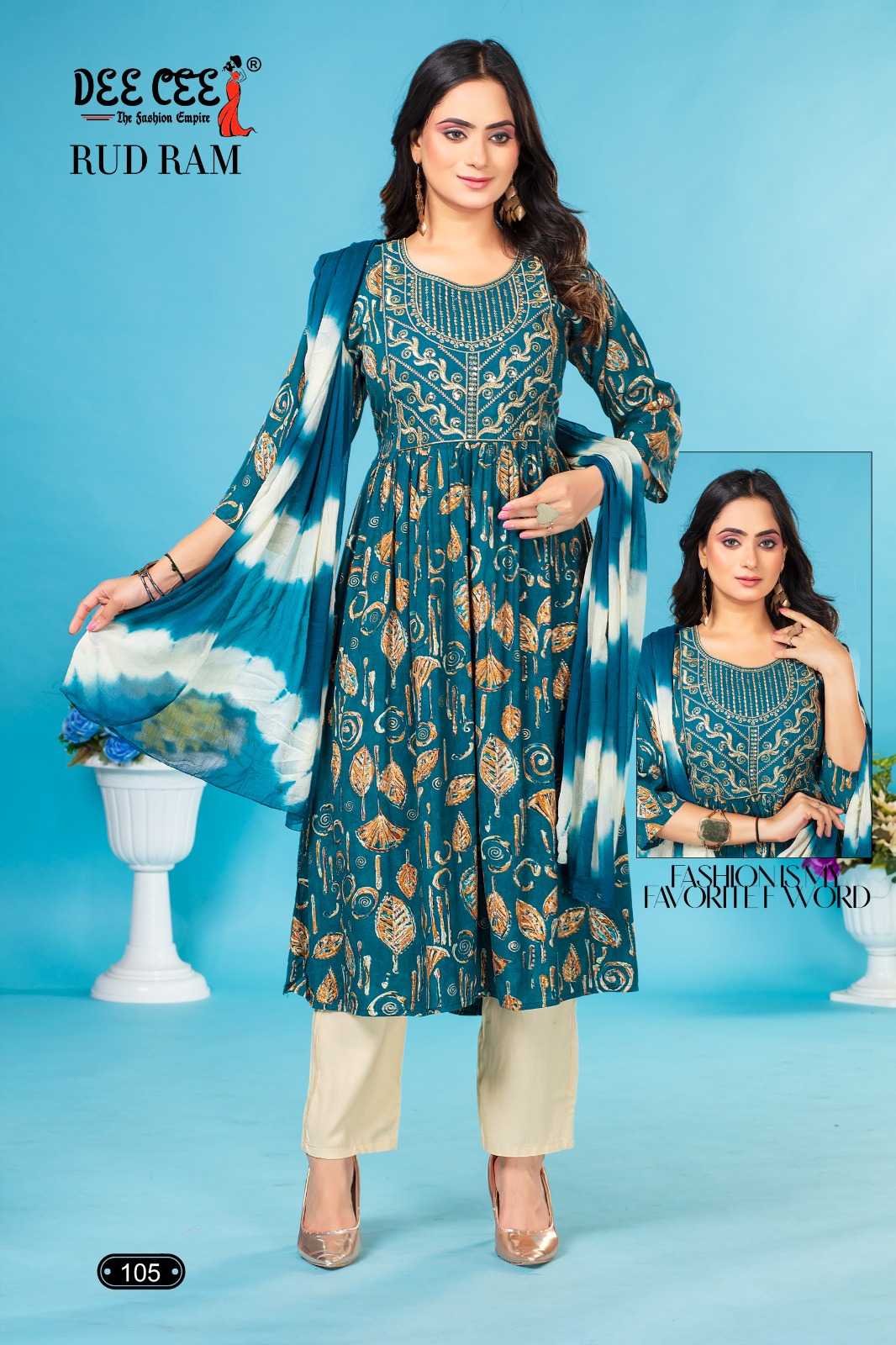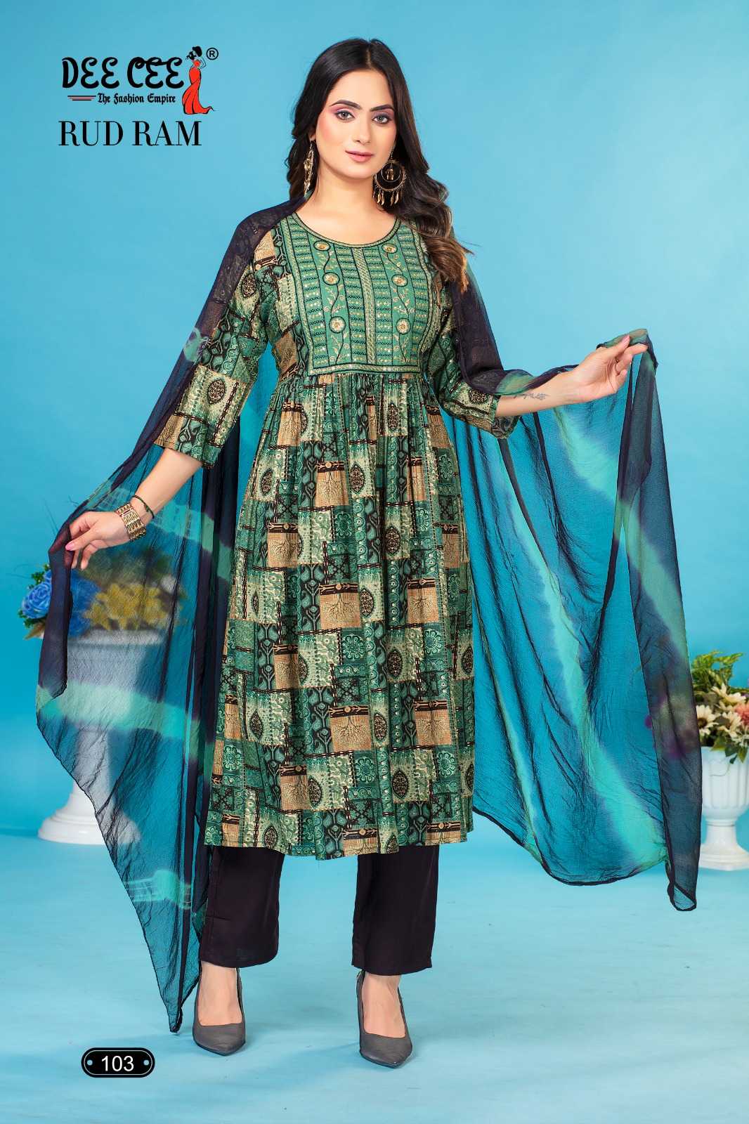 deecee present rud ram fancy rayon foil print fully stitch salwar suit