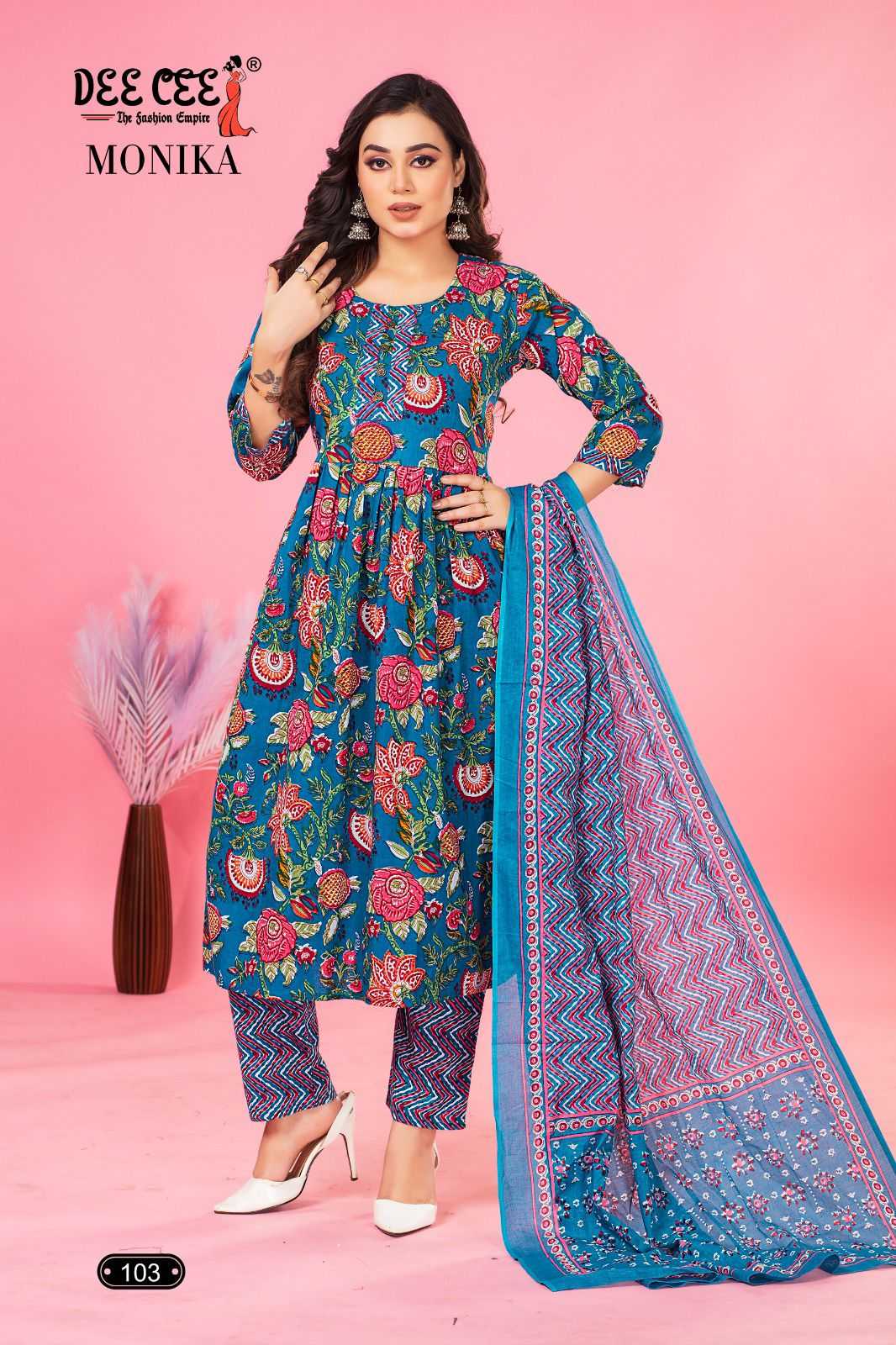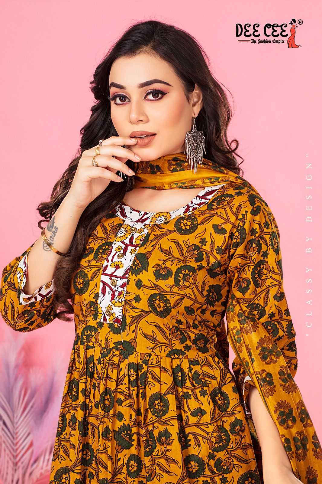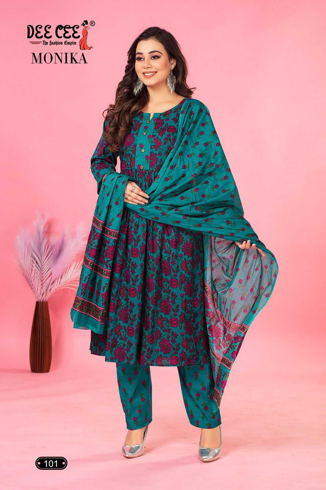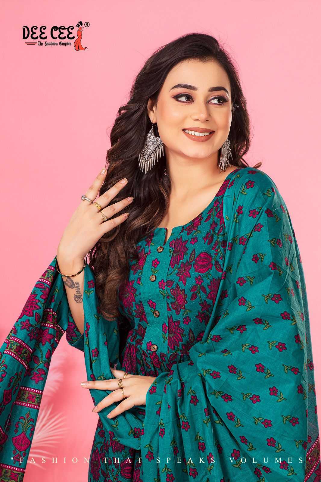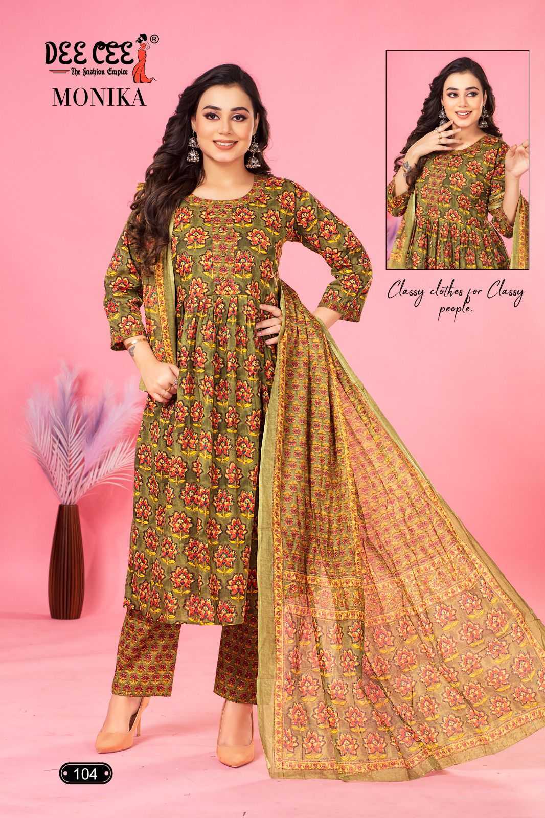 deecee presents monika fancy cotton ghera full stitch kurti pant dupatta