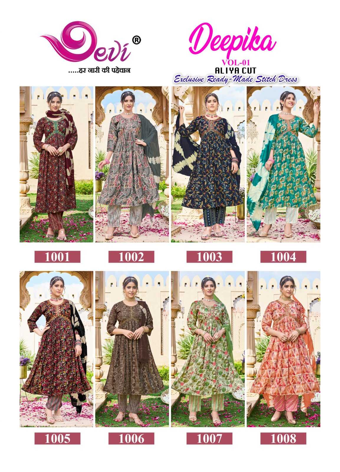 deepika vol 1 by devi classy look rayon capsule aliya cut fully stitch salwar suit