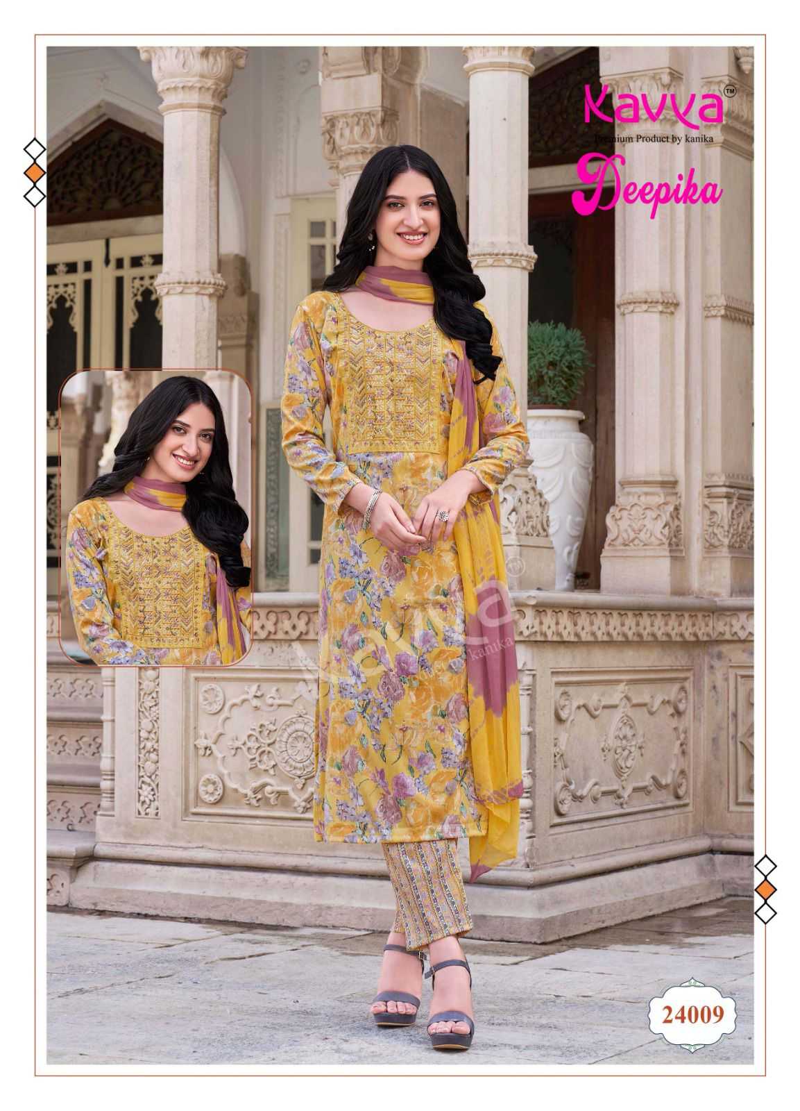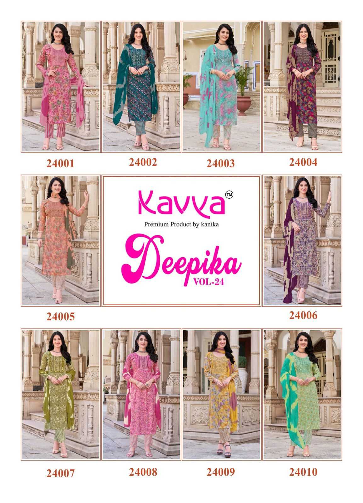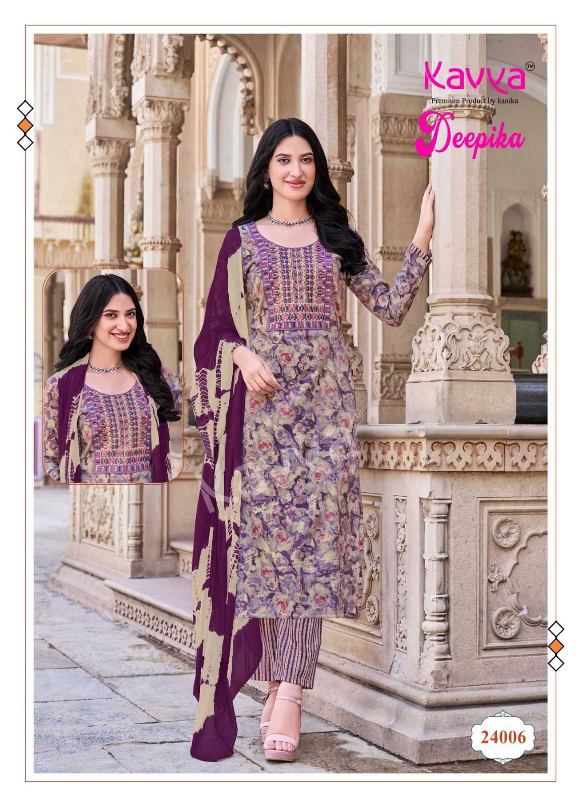 deepika vol 24 by kavya embroidery work 3pcs readymade suits