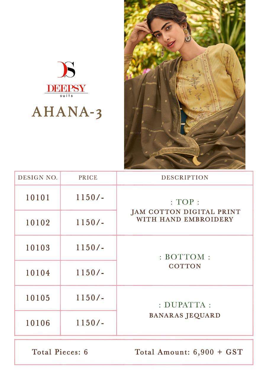 deepsy ahana vol 3 jam cotton ethnic wear fancy salwar kameez