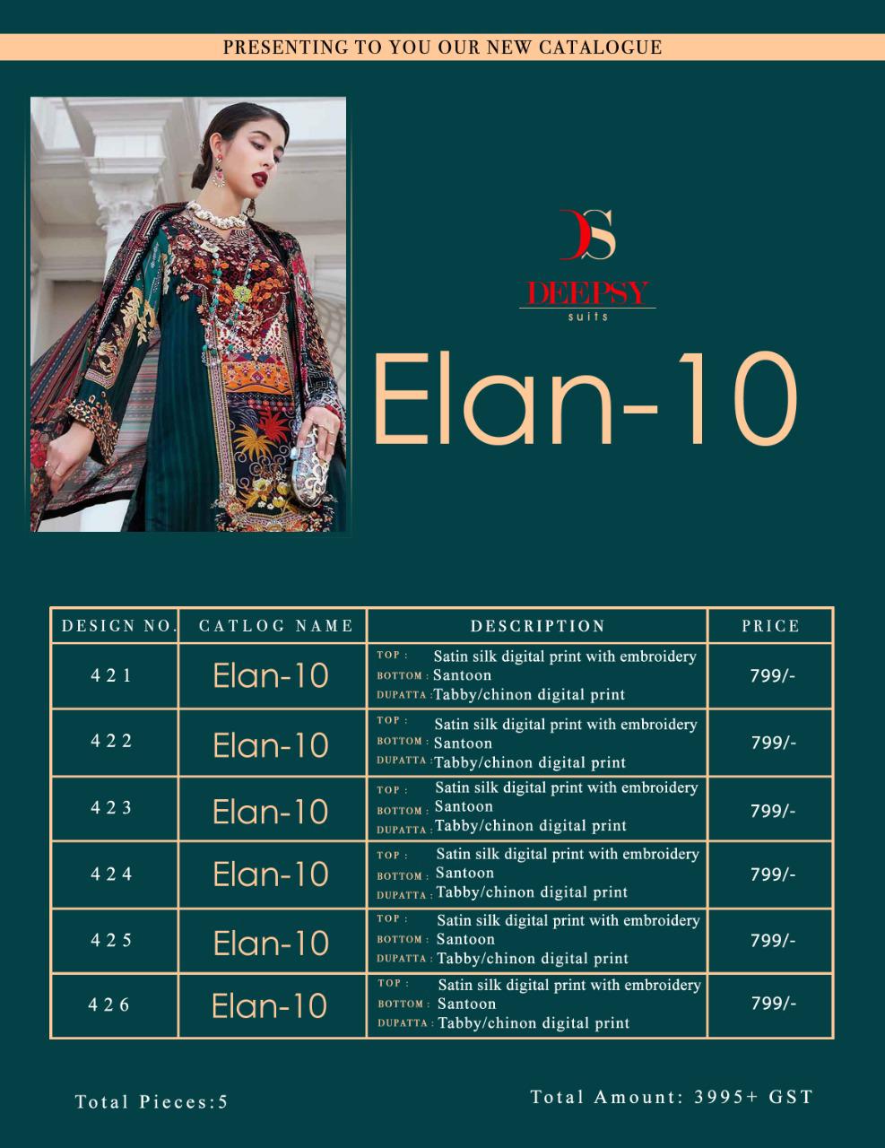 Deepsy ELAN vol 10 Pic 6 Rate 799 FABRIC details in picture |