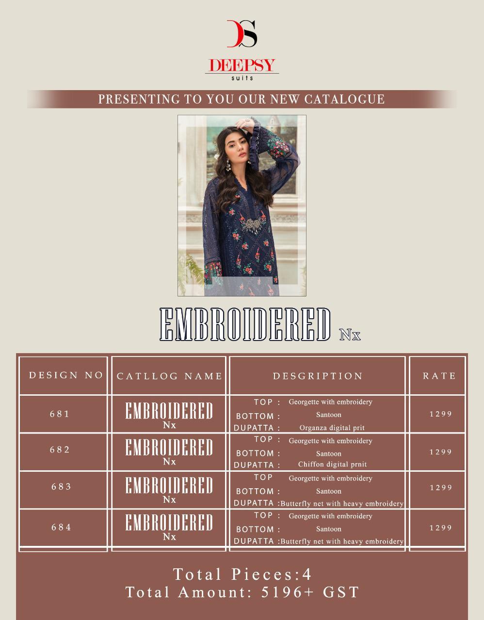 Catlog name - EMBROIDERED NX . Series - 681 to 684. Rate- 1299 per Pcs . GST 5 Percent Extra. Delivery from tomorrow |