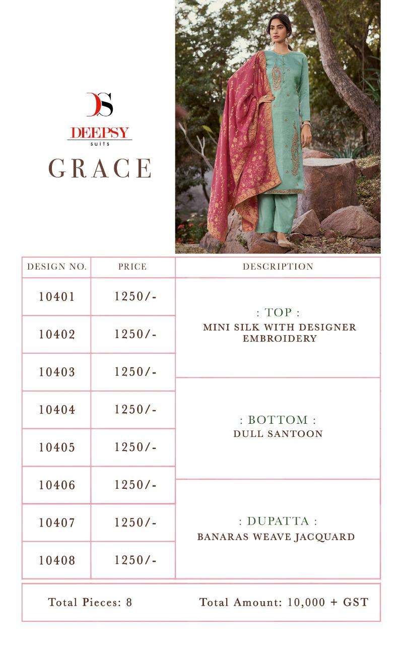 *Grace by DEEPSY SUITS Top - Mini silk with embroidery Bot - Dull santoon Dup - Banaras weave Jequard *Rate - 1250+GST |