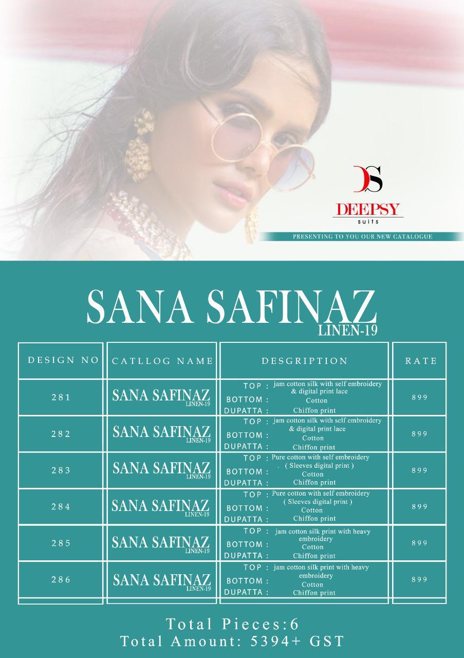 Brand - Deepsey . Catlog name - SNAN SAFINAZ LINEN-19. Set To Set. GST 5 Percent Extra . Delivery 4-5 days |