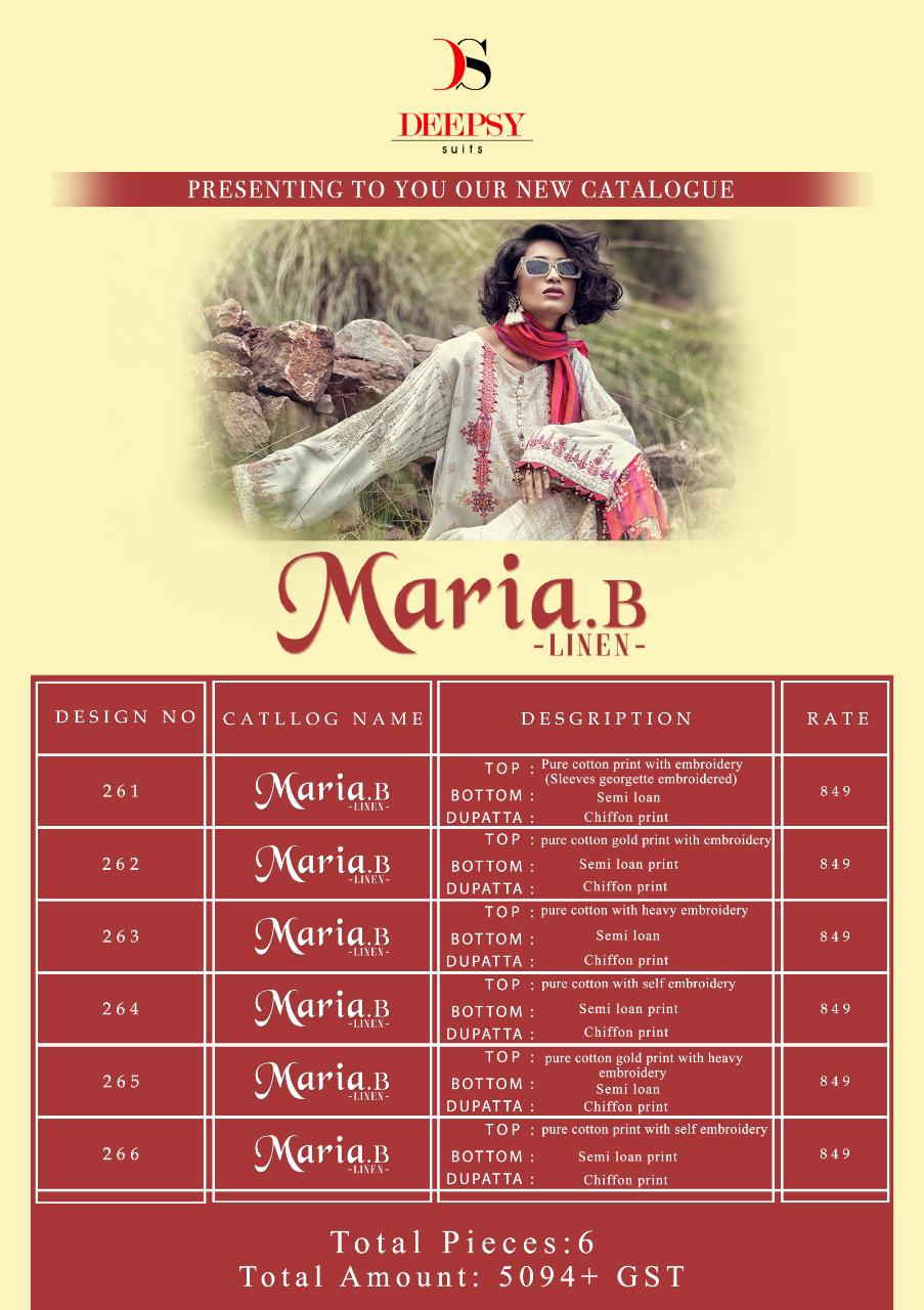 Deepsy Suits Maria B linen 6 pc 849+gst |
