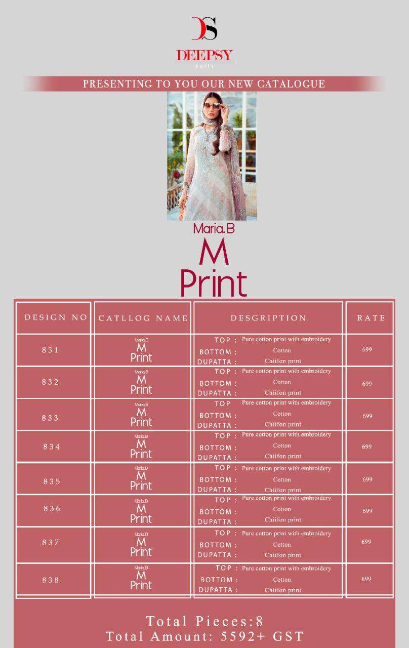 *Mariab Mprint by DEEPSY SUITS Top - Pure Cotton Print Bot - Cotton solid/print Dup - Pure cotton mal-mal *Rate - 699/-(chiffon dupatta) |