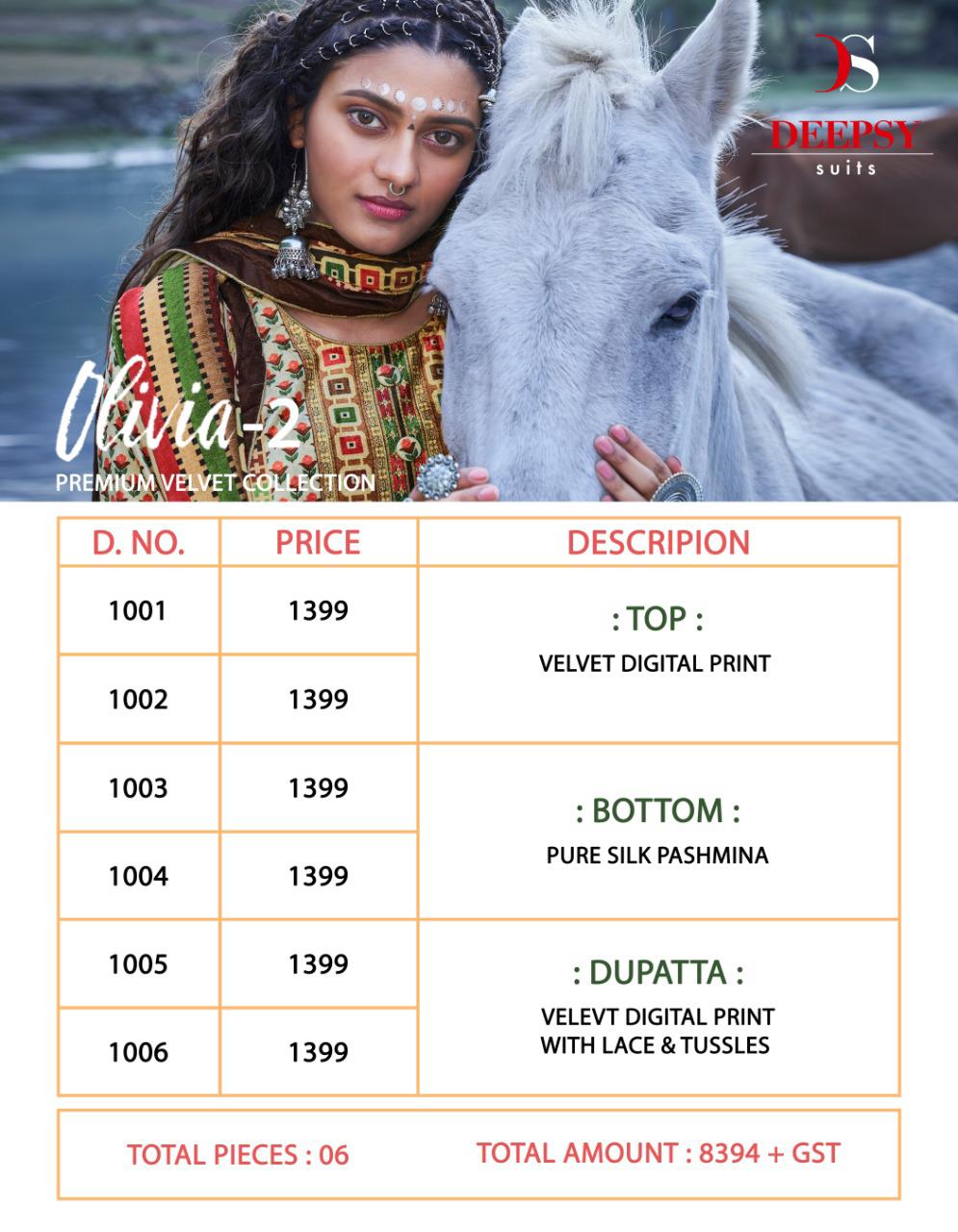 Deepsy Olivia Vol 2 Velvet Digital Printed Winter Suits Wholesaler