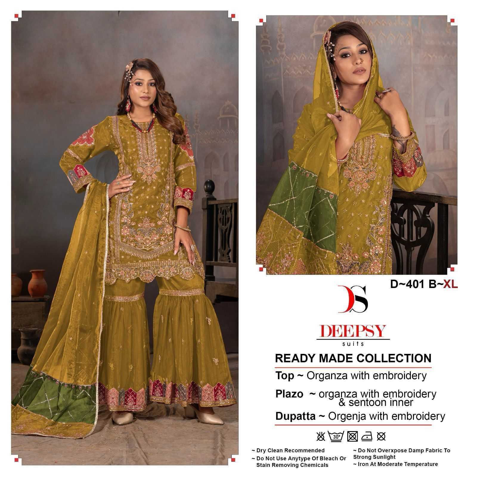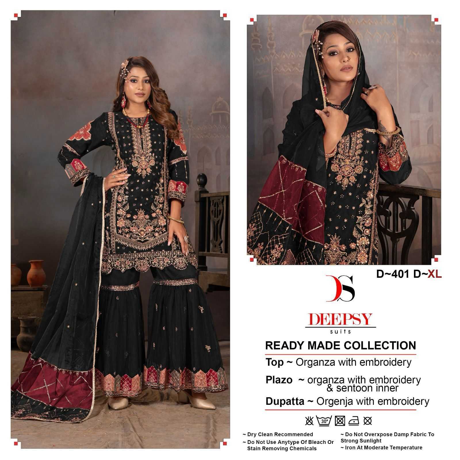 deepsy suits d 401 readymade designer organza suits with plazzo