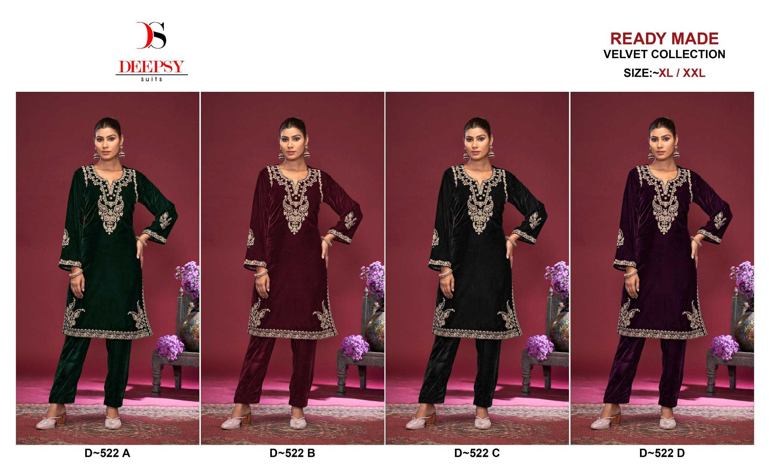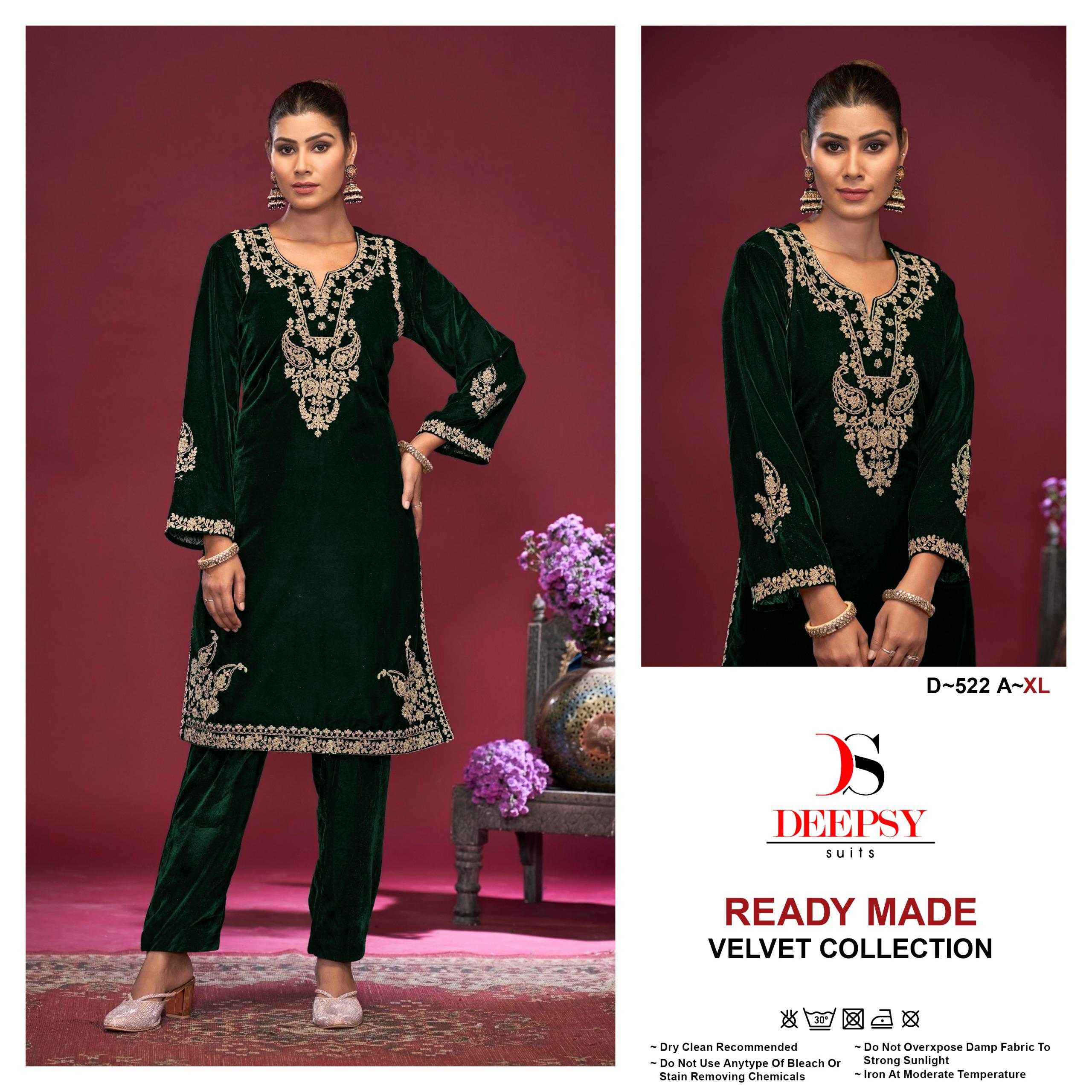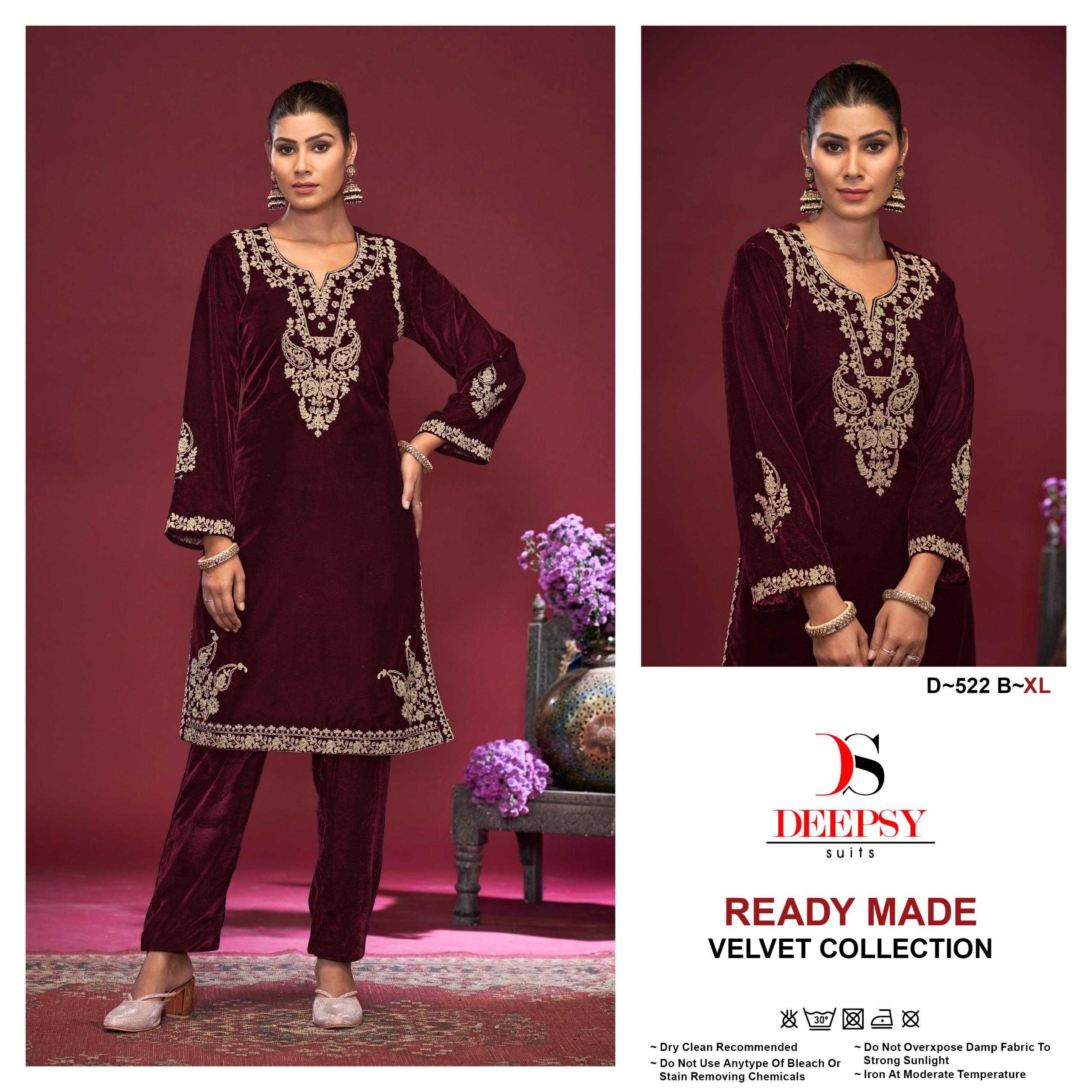 deepsy suits d 522 hevay embroidery velvet winter special readymade kurti with pant