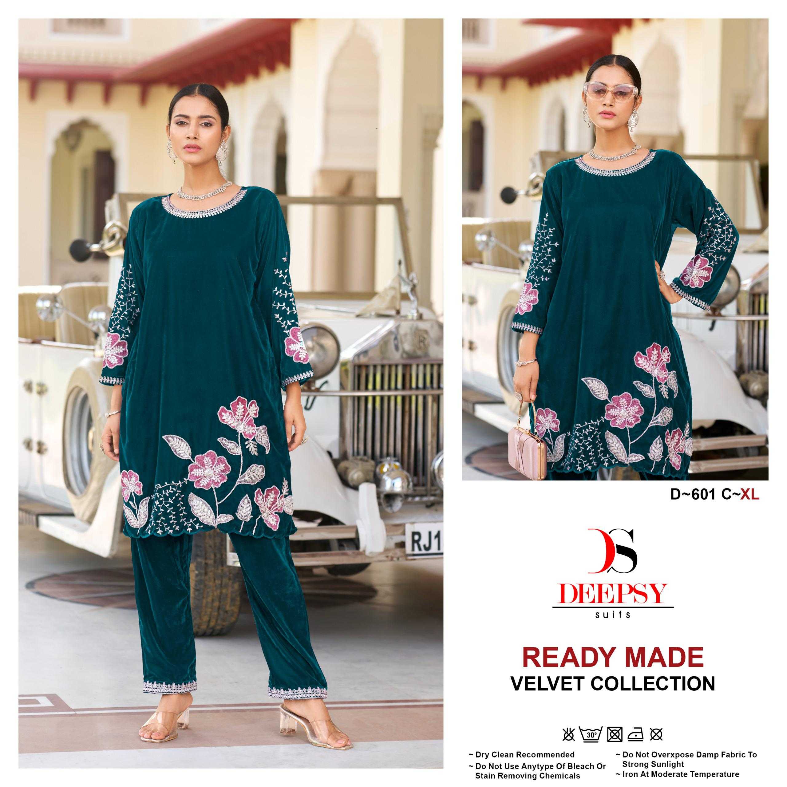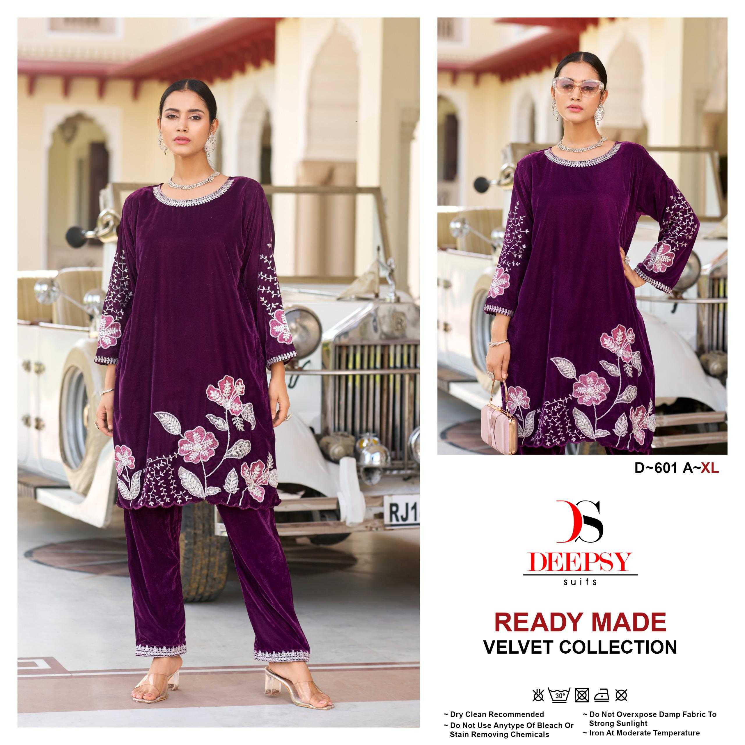 deepsy suits d 601 embroidery velvet readymade kurti with pant