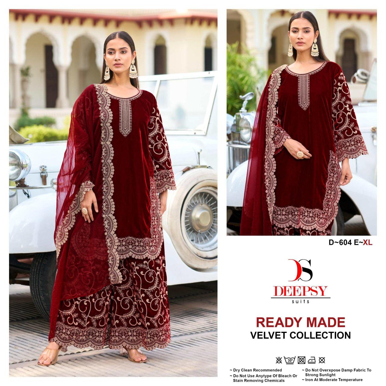 deepsy suits d 604 embroidery work winter velvet readymade suits with plazzo