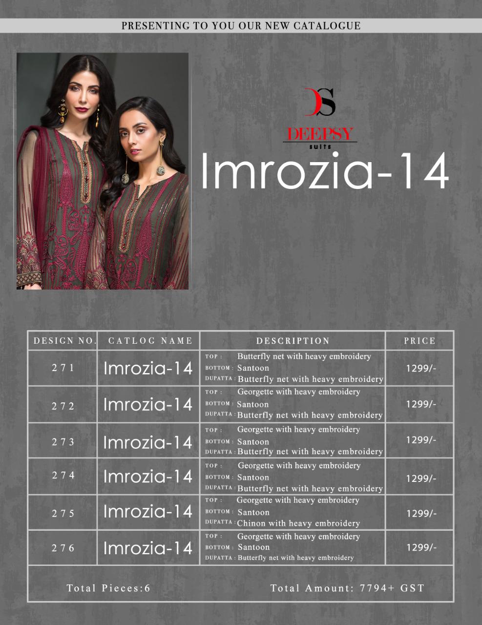 DEEPSY SUITS IMROZIA VOL 14 6 PC 1299+GST |