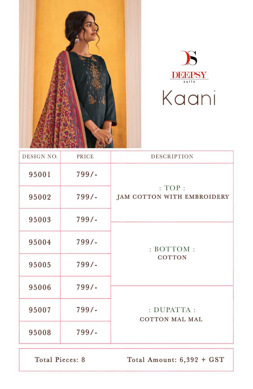Deepsy Suits Kaani Jam Cotton Printed Embroidery Dress Materials