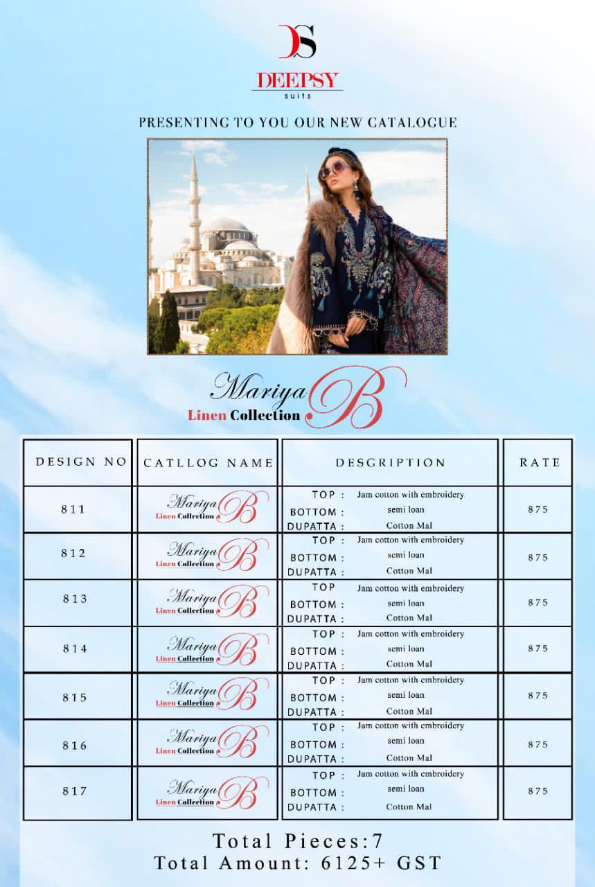 Deepsy Suits Maria B Linen Collection 811-817 Series Jam Cotton With Embroidery Suits