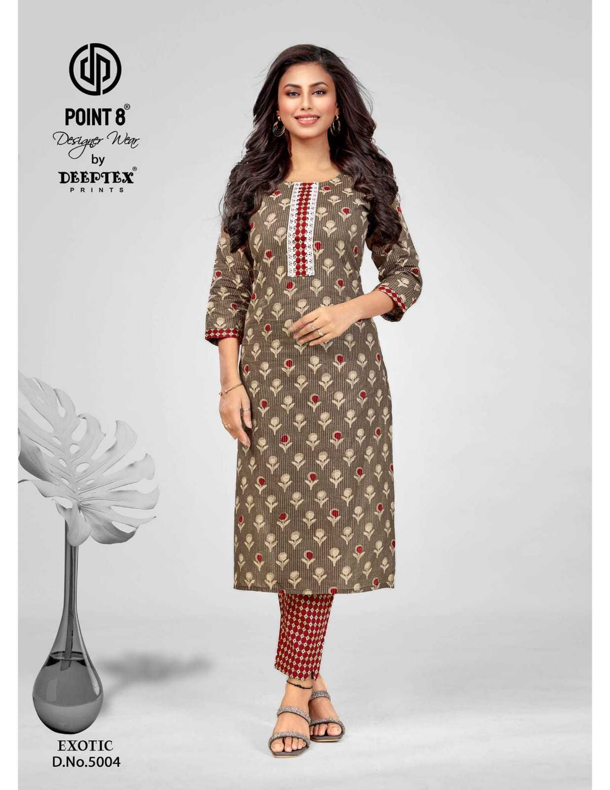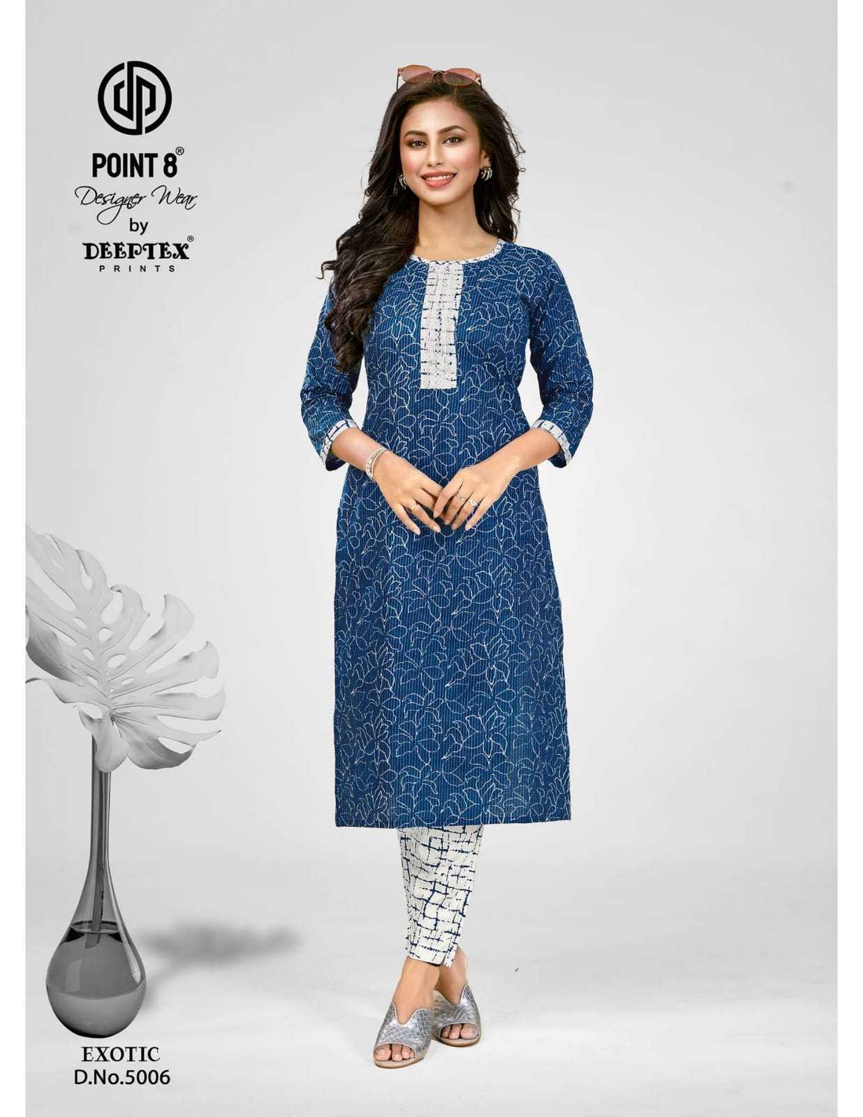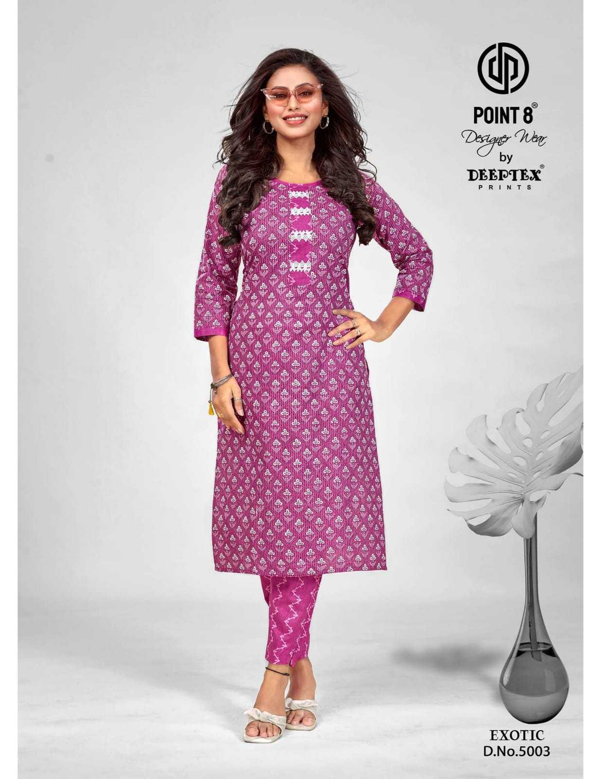 deeptex point 8 exotic vol 5 readymade casual wear cotton kurti pant in plus size