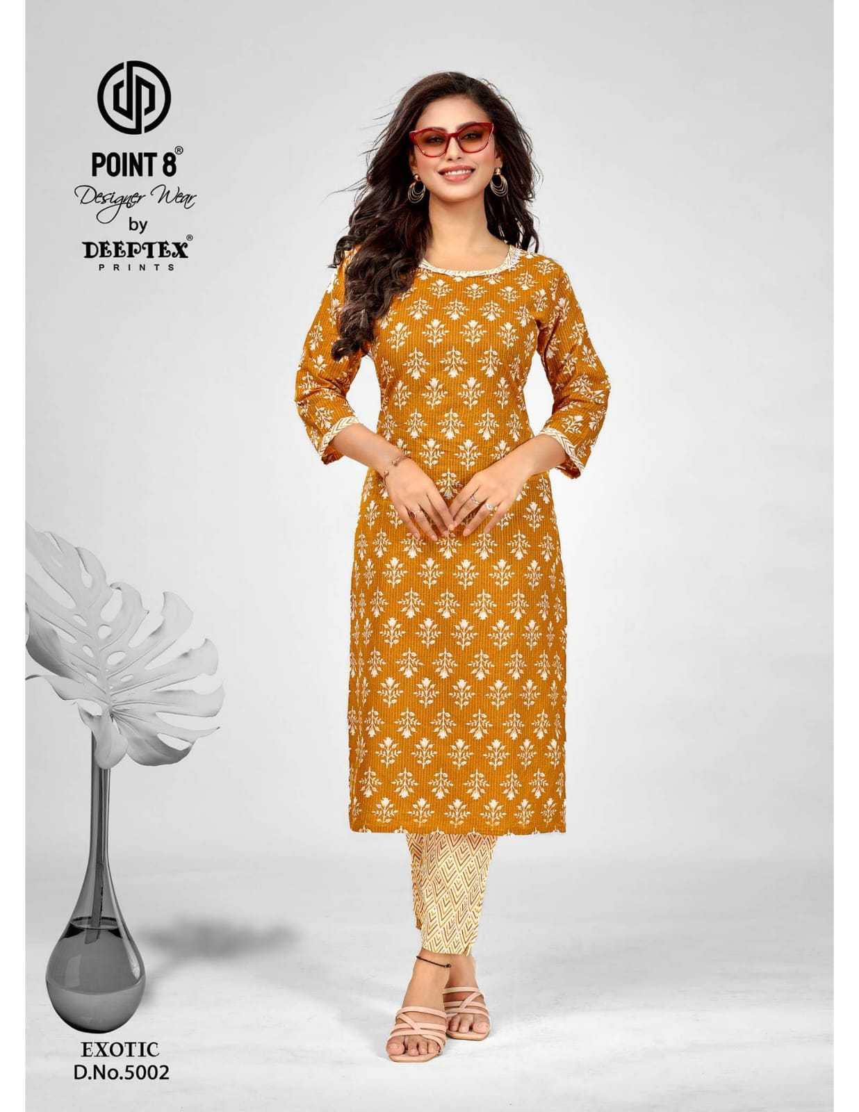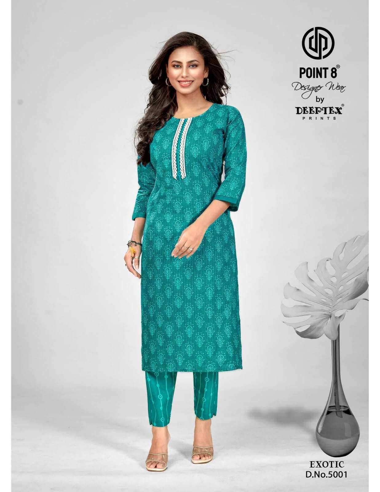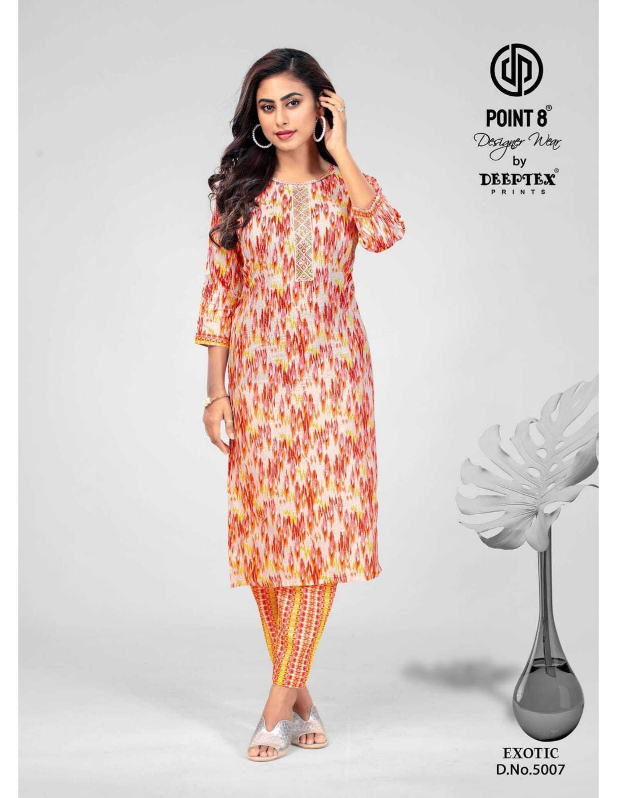 deeptex point 8 exotic vol 5 readymade casual wear cotton kurti pant in plus size