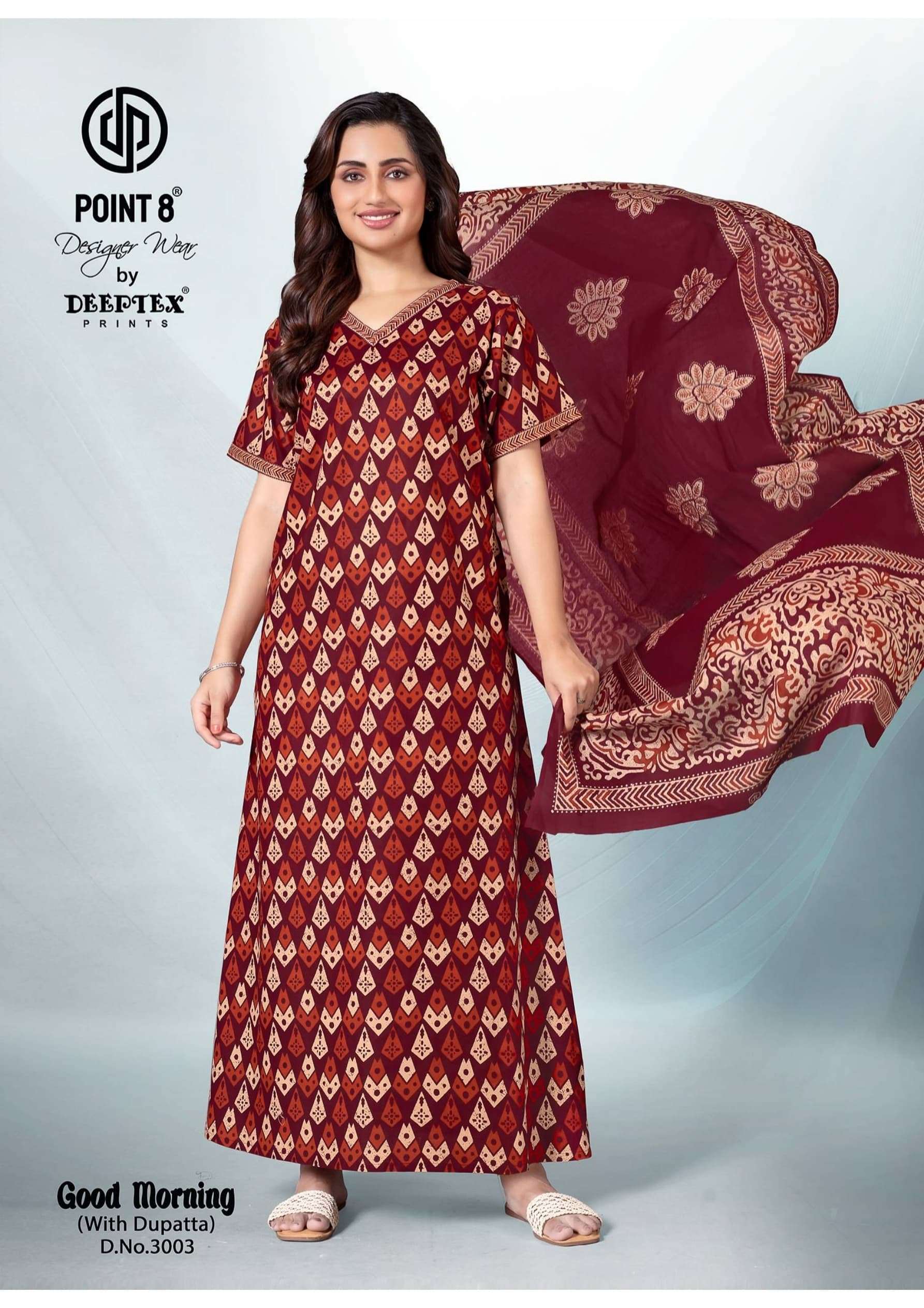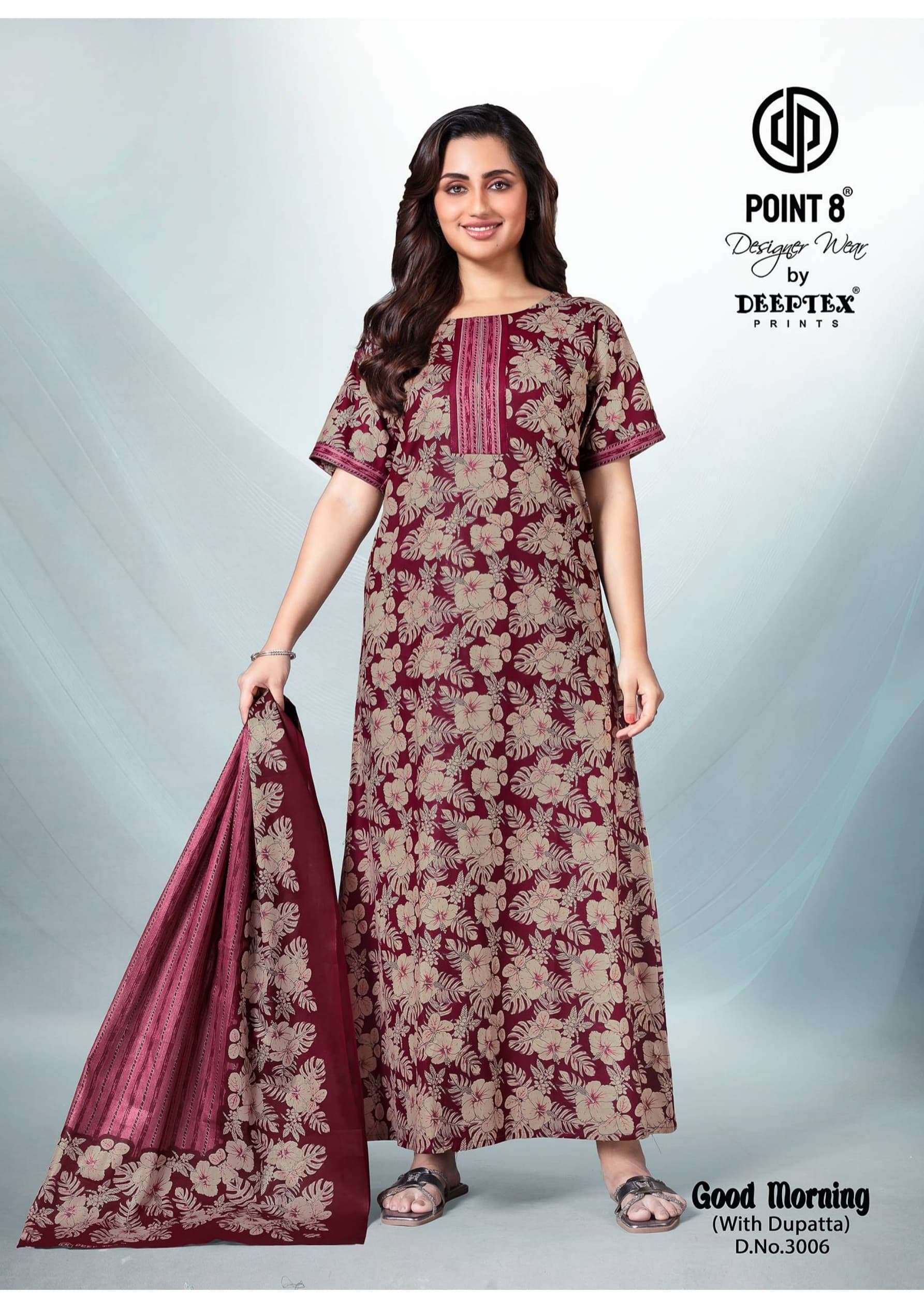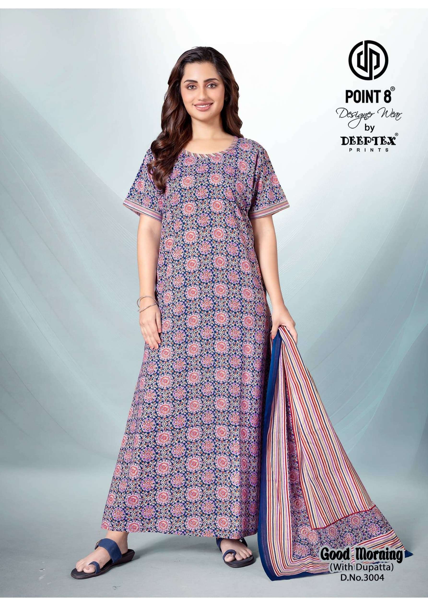 deeptex point 8 good morning vol 3 full stitch cotton daily wear nighty with dupatta