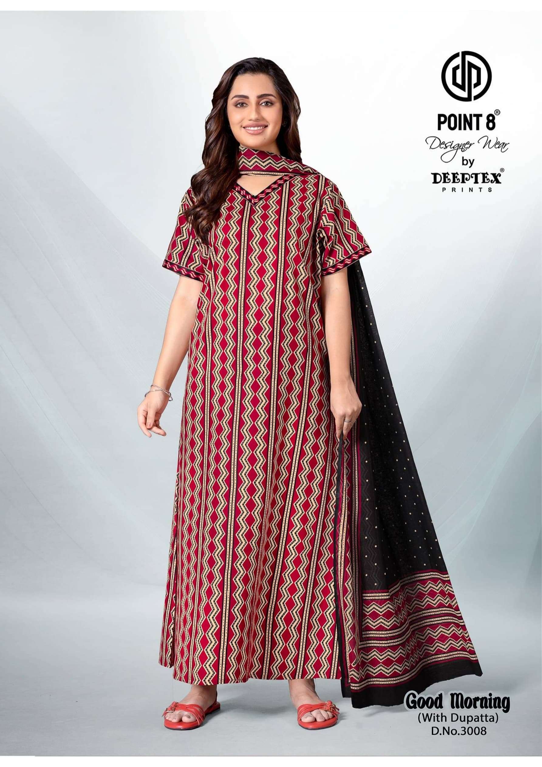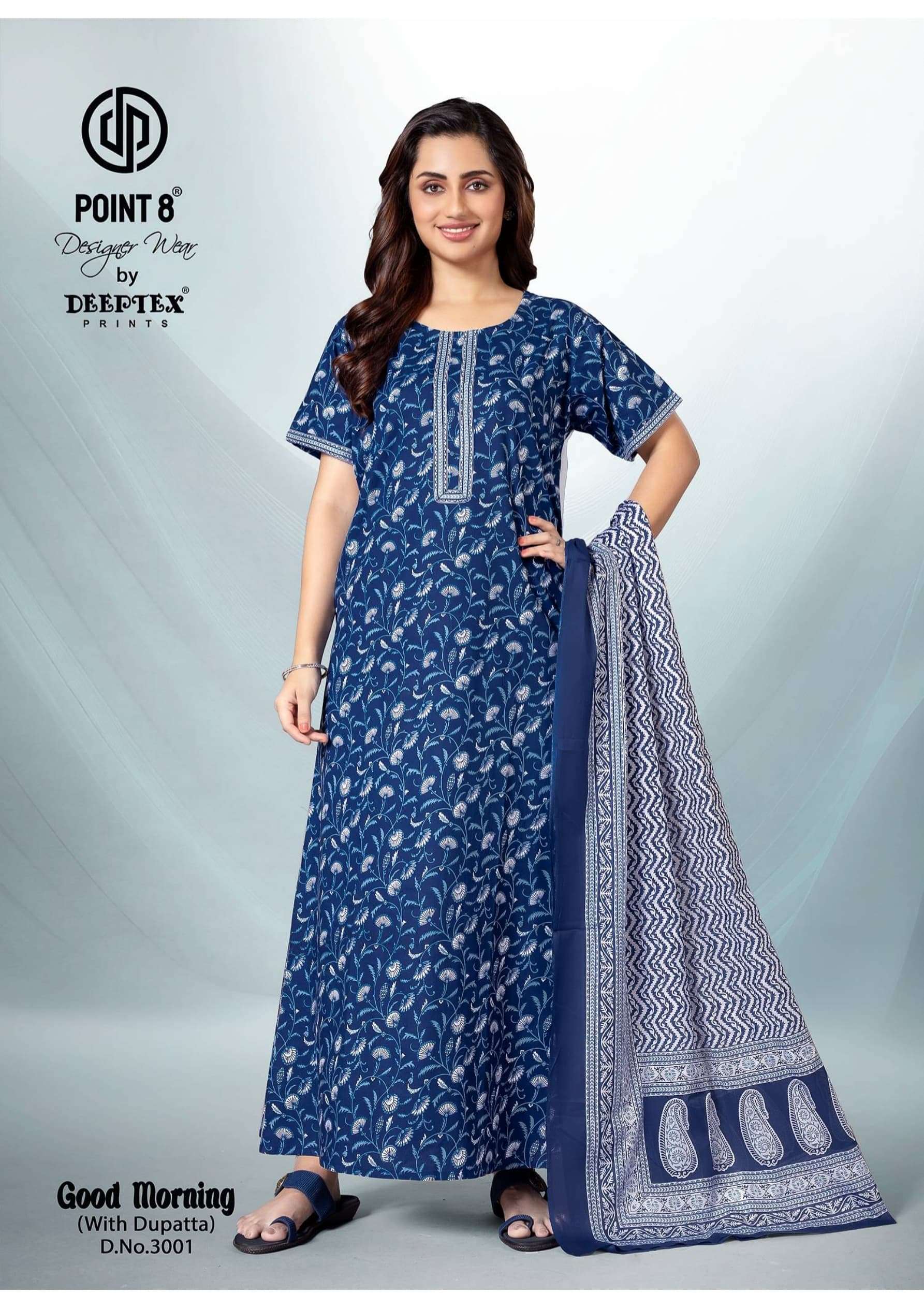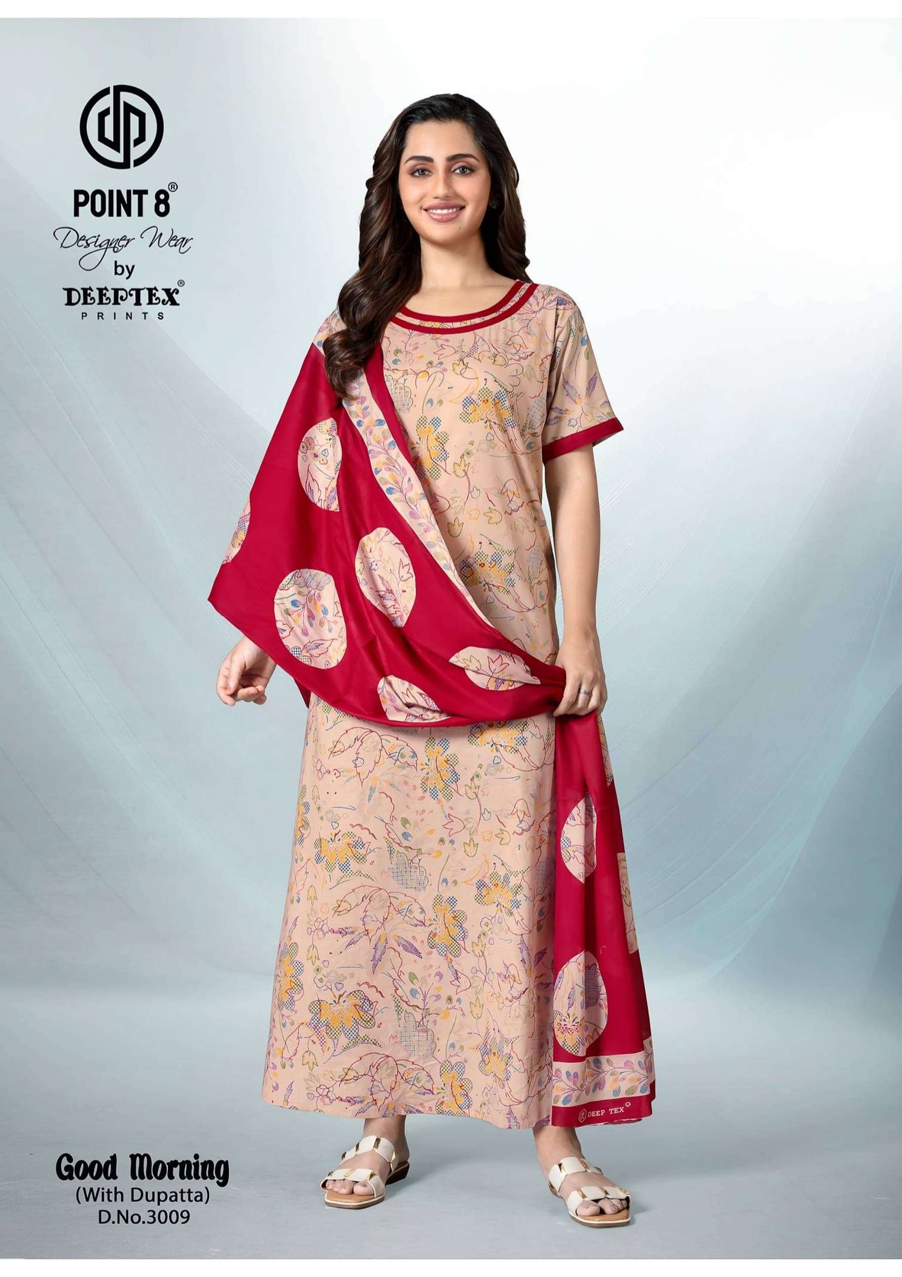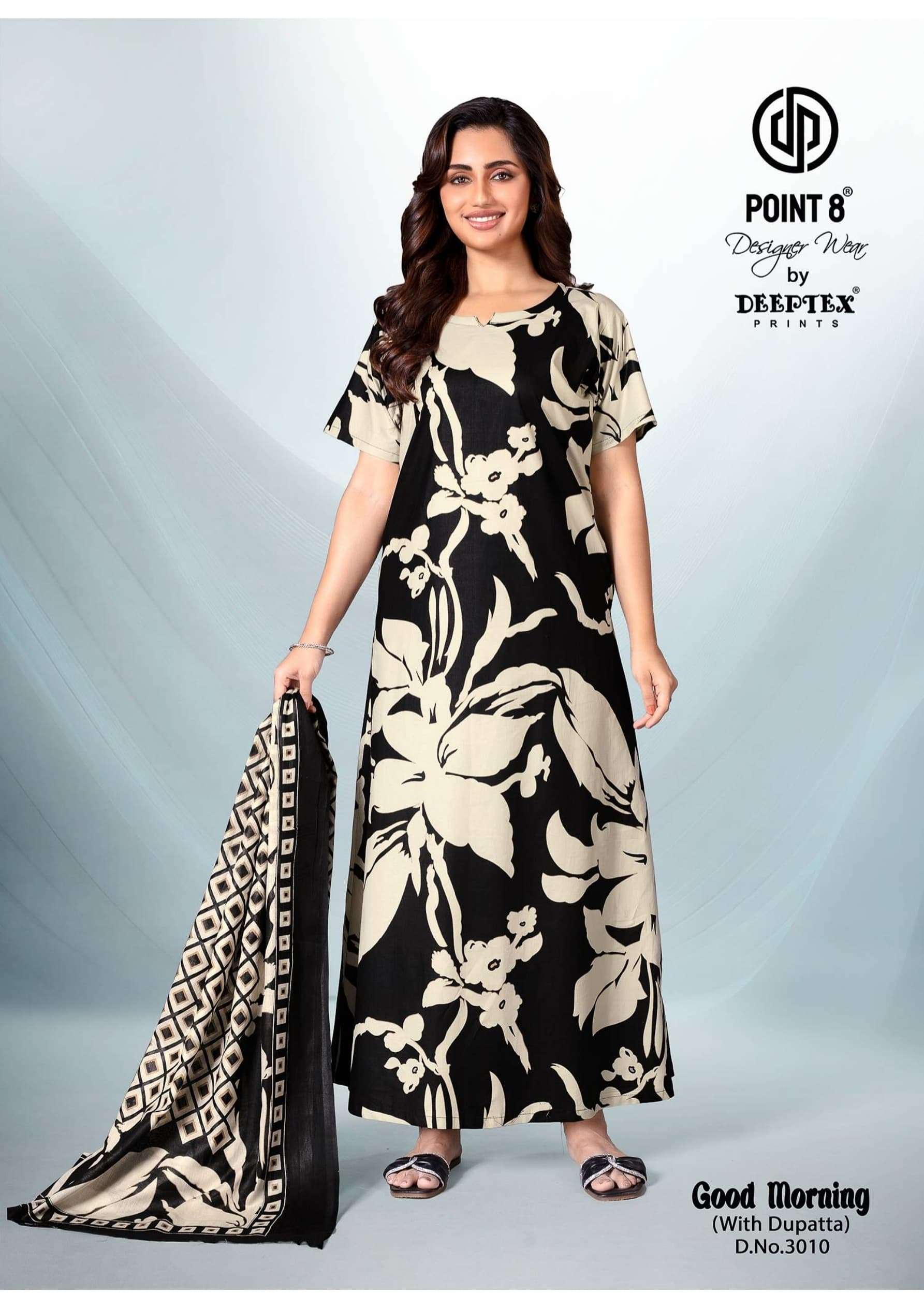 deeptex point 8 good morning vol 3 full stitch cotton daily wear nighty with dupatta