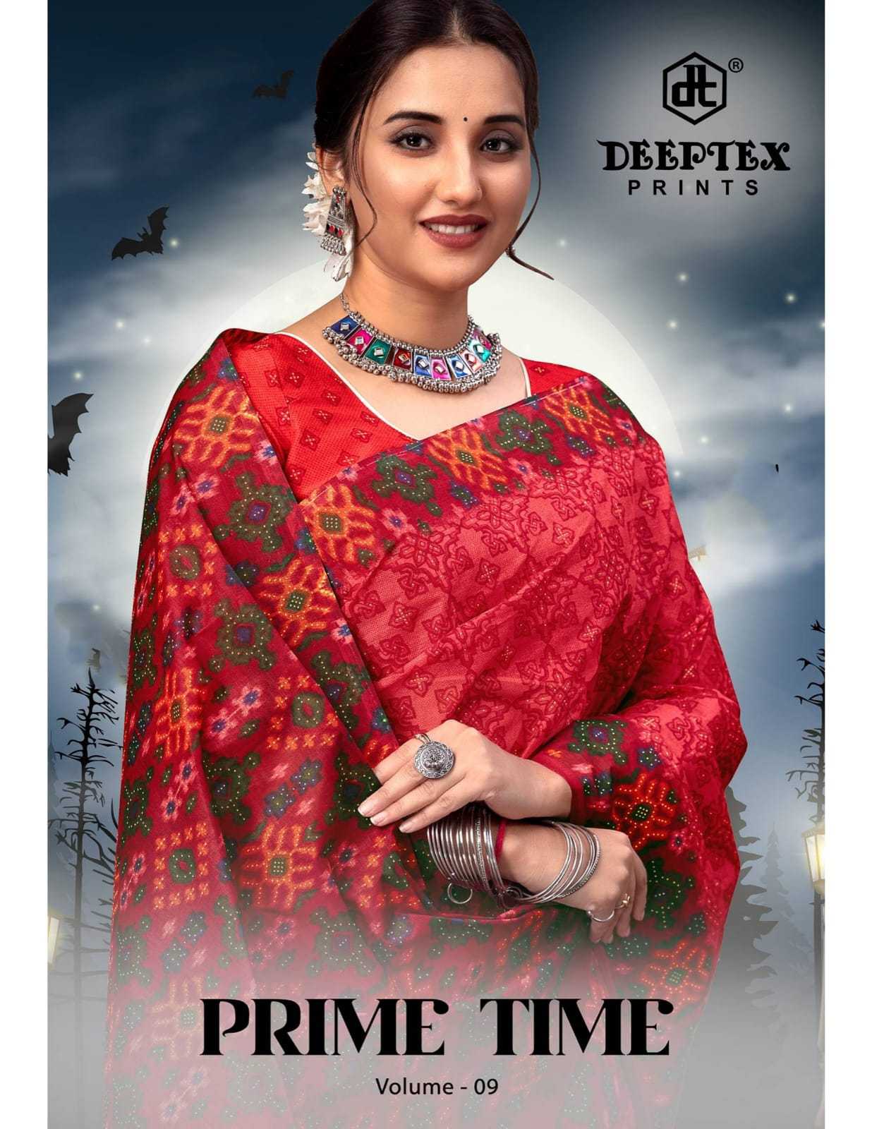 deeptex print prime time vol 9 latest new design cotton saree catalog