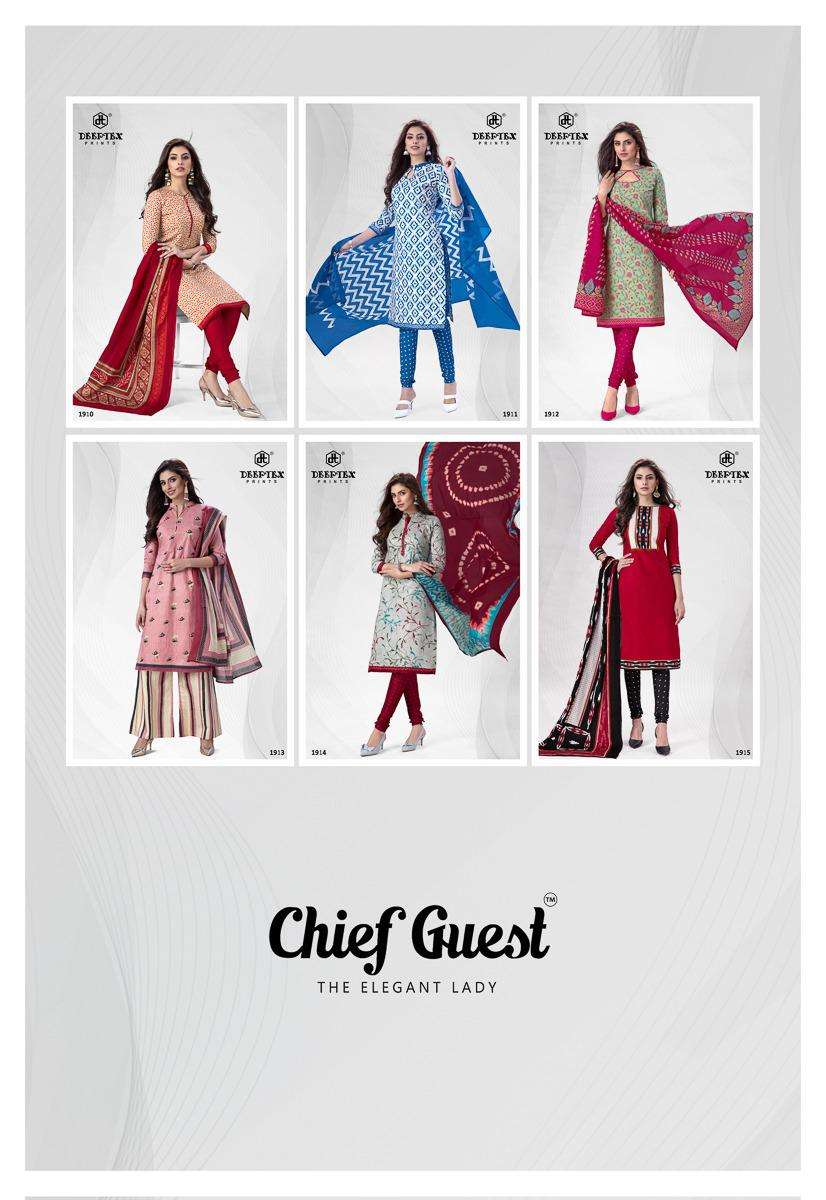 DEEPTEX PRINTS New Launch CHIEF GUEST VOL-19 Pouch pack Cut:-2.50+2.00+2.25 Approx ALL COTTON RATE:-395+GST DELIVERY 3-4 DAYS |
