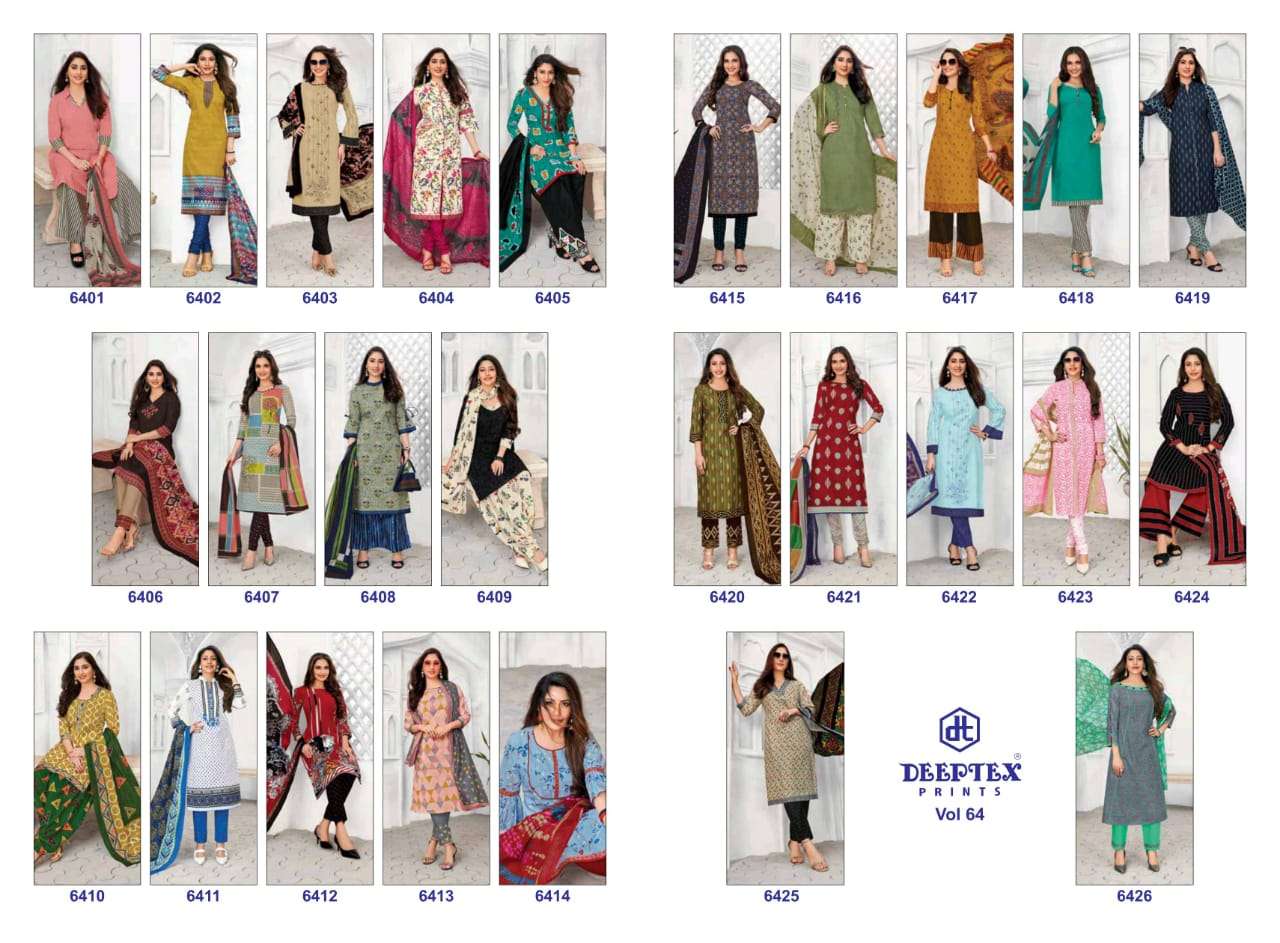 DEEPTEX PRINTS LAUNCHES UNSTITCHED COTTON SUITS MISS INDIA VOL-64 26 BEAUTIFUL DESIGN Rate - 340/-₹